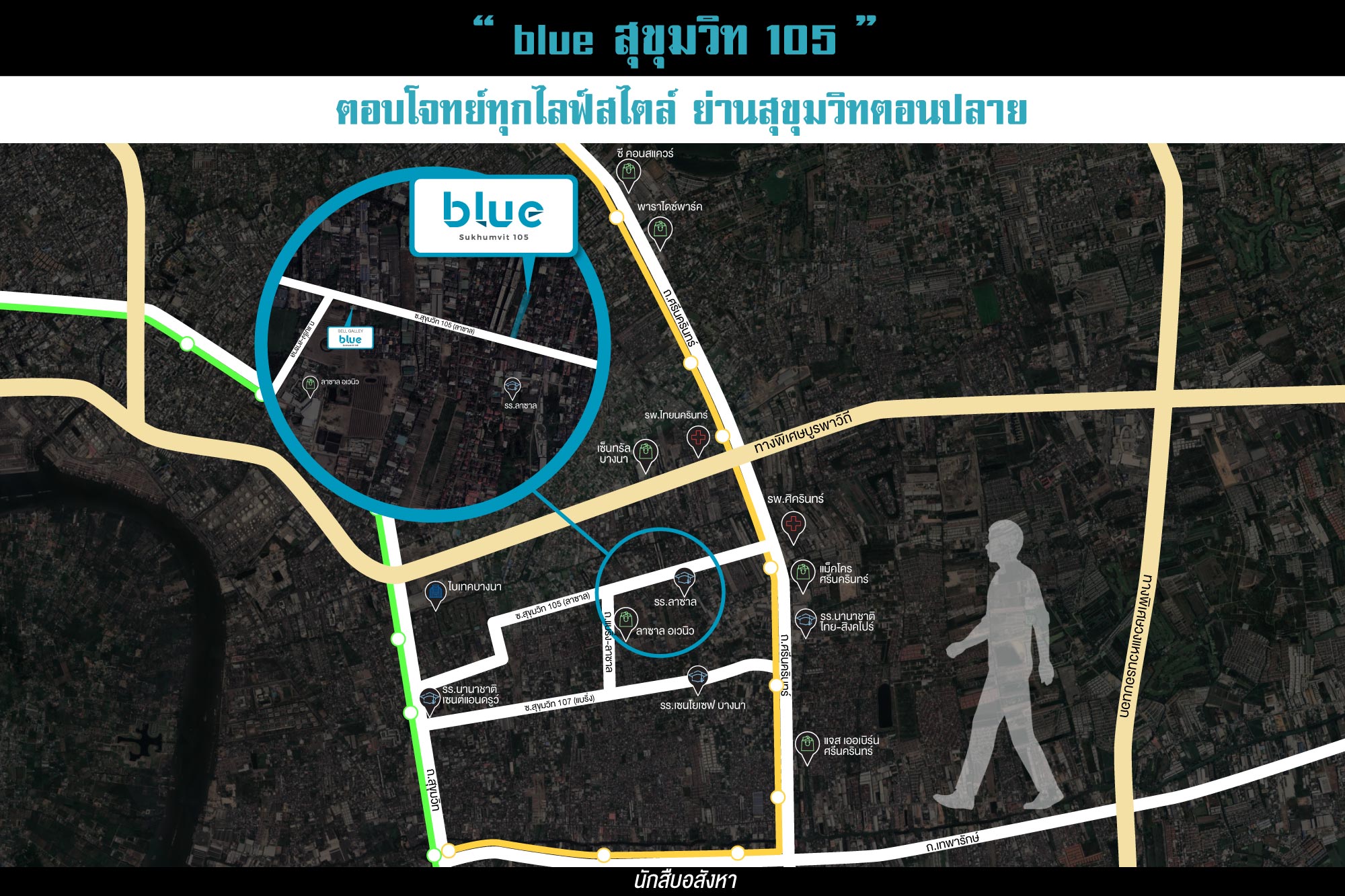 blue สุขุมวิท 105 ตั้งอยู่บนทำเลศักยภาพในย่านลาซาล ตรงข้ามกับ รร.ลาซาลกรุงเทพฯ อยู่ในซอยสุขุมวิท 105 โดยสามารถ เชื่อมต่อถนนสุขุมวิท, ถนนศรีนครินทร์ และ ถนนบางนา-ตราดได้ง่าย ไม่ไกลจากรถไฟฟ้า BTS แบริ่ง และ รถไฟฟ้าสายสีเหลือง สถานีศรีลาซาล ครับ