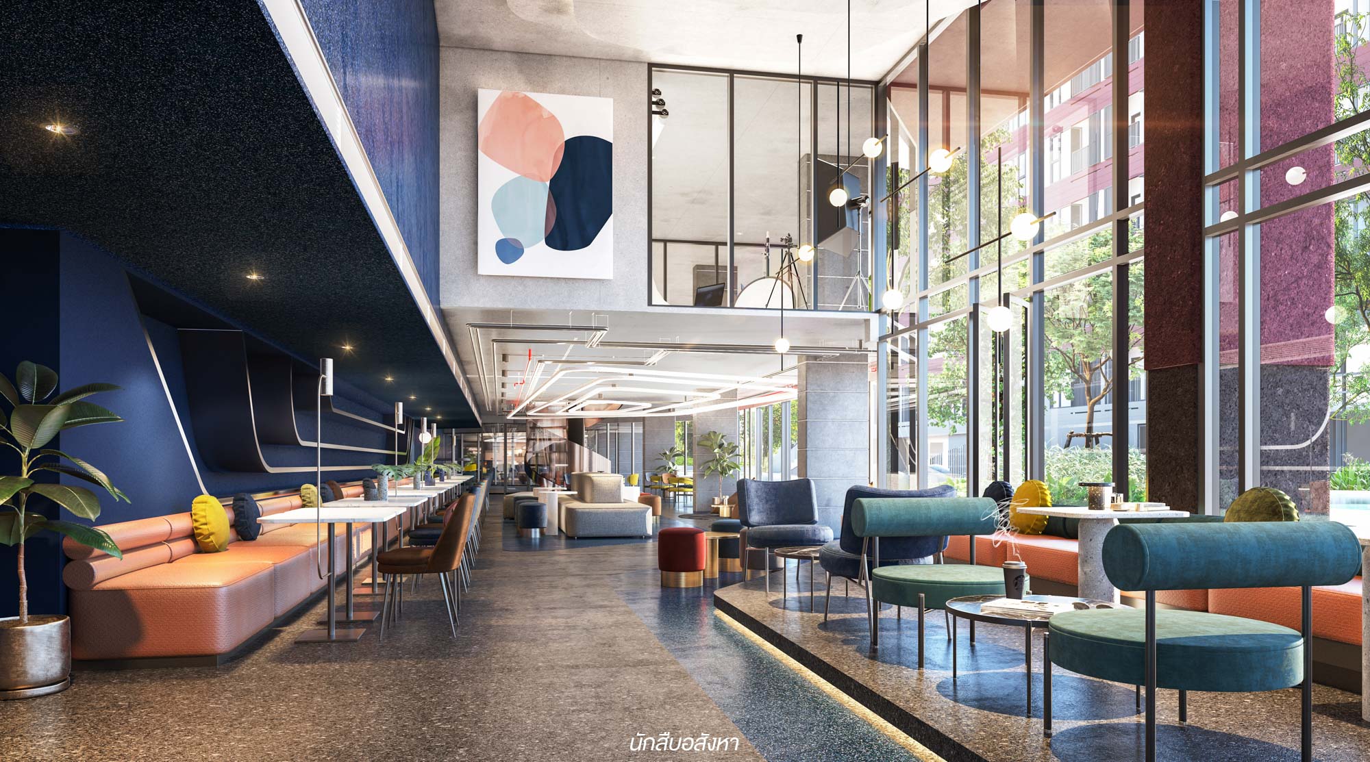 ที่ผ่านมานั้นส่วนกลางของแบรนด์ Kave ถือว่าเป็นอีกจุดเด่นของโครงการเลยก็ว่าได้ครับ เพราะจัดเต็มมาก ซึ่งแม้ว่าโครงการ Kave TU จะเป็นคอนโด Low Rise แต่ว่าส่วนกลางที่โครงการให้มาก็ถือว่าไม่แพ้โครงการพี่ๆ ที่เปิดก่อนหน้าเลยครับ โดยโครงการนี้จะมีการออกแบบอย่างลงตัวด้วยสถาปัตยกรรมแนวคิดใหม่ที่มีการผสมผสานระหว่างศาสตร์การอยู่อาศัย ความ Modern และธรรมชาติด้วยที่มาของลายหิน ทำให้เกิดเส้นสายที่มีชีวิตชีวา เป็นการออกแบบภายภายใต้คอนเซปต์ “KAVE in SPACE” ที่แต่งแต้มสีสันในการใช้ชีวิตแต่ละวันไม่ซ้ำใคร และอย่างที่ทราบกันไปครับว่าโครงการนี้มีทั้งหมด 4 อาคาร (A – D) และทุกอาคารให้ส่วนกลางมาทั้งหมดครับ ซึ่งวันนี้ผมมีภาพบรรยากาศจำลองส่วนกลางของโครงการมาฝาก เราลองไปดูกันครับว่าส่วนกลางของโครงการมีอะไรน่าสนใจบ้าง
