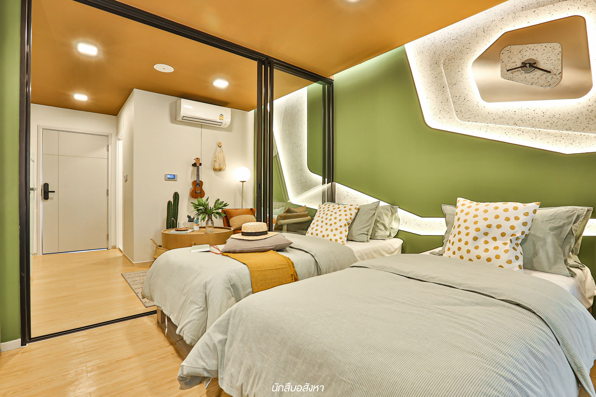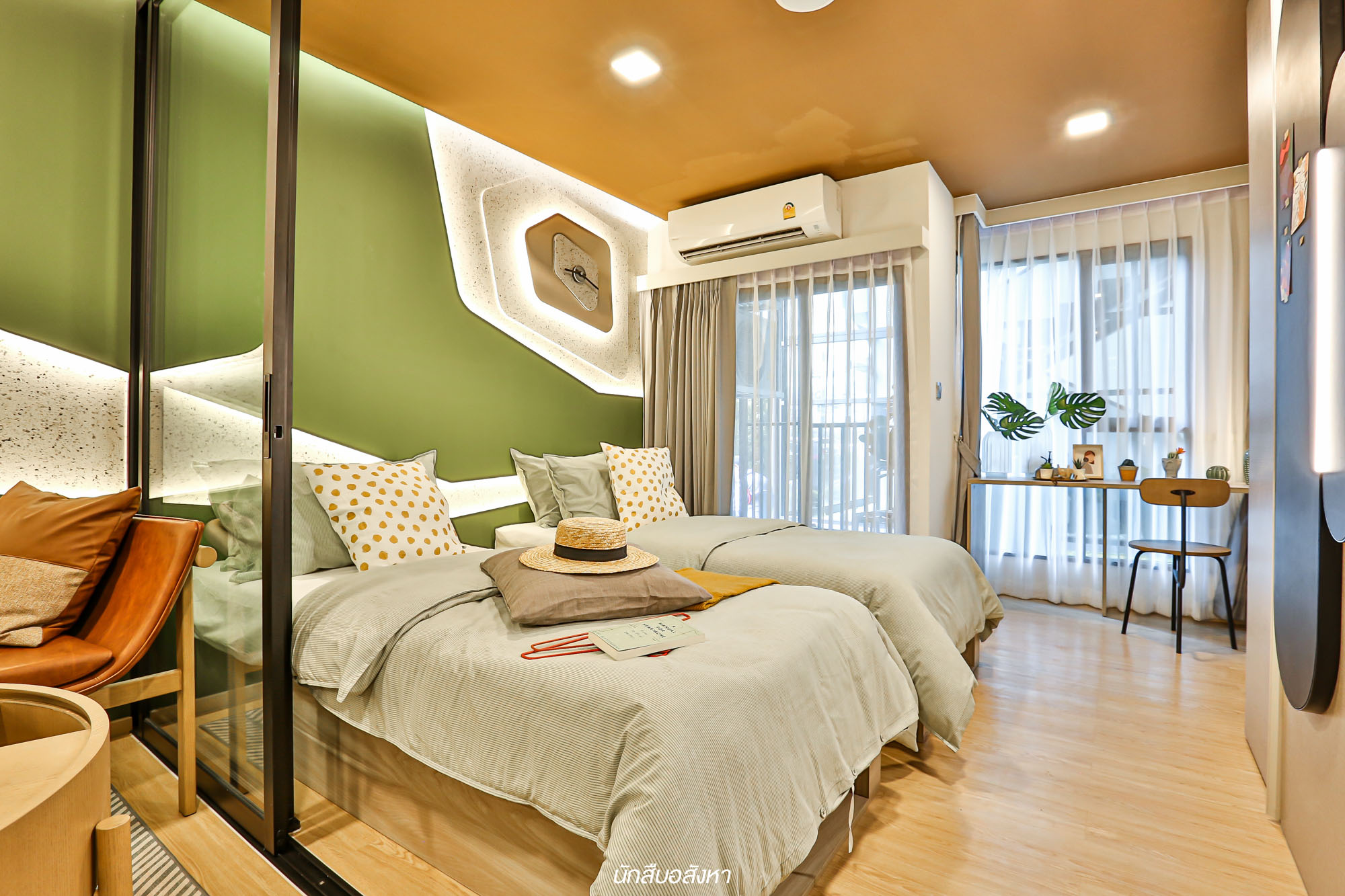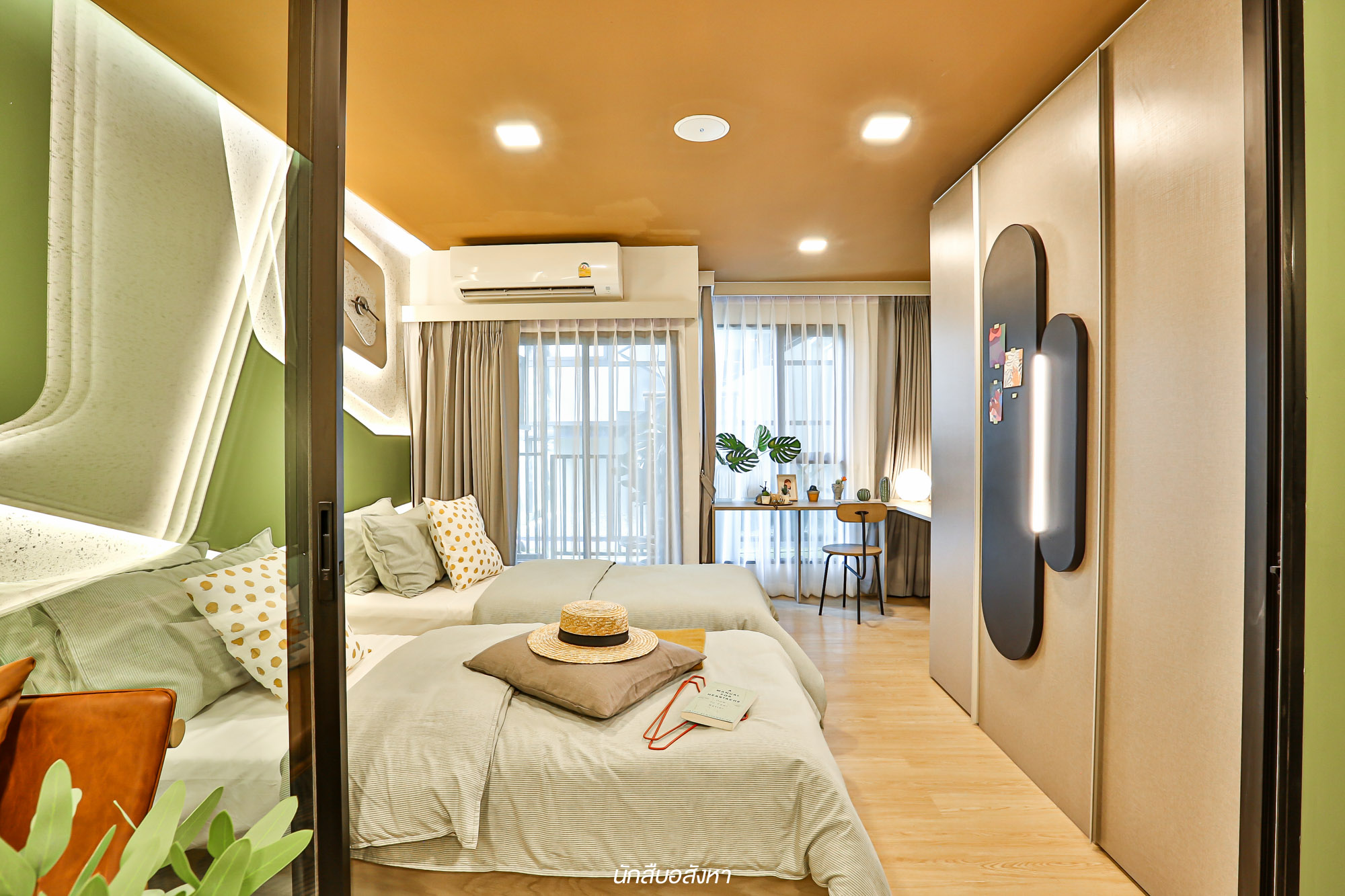 ห้องดีไซน์ใหม่ เตียงคู่ พื้นที่ใช้สอยจัดเต็ม