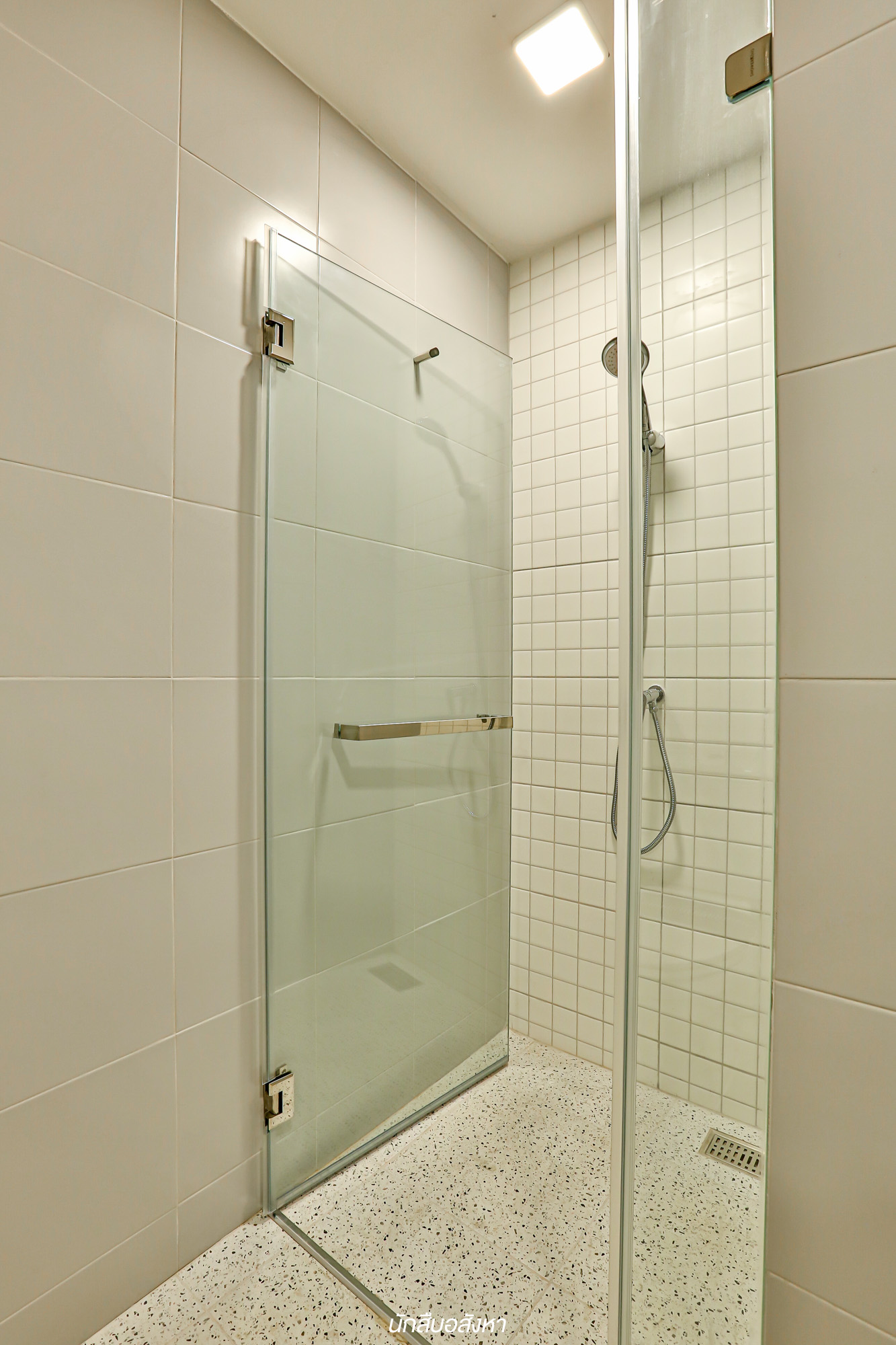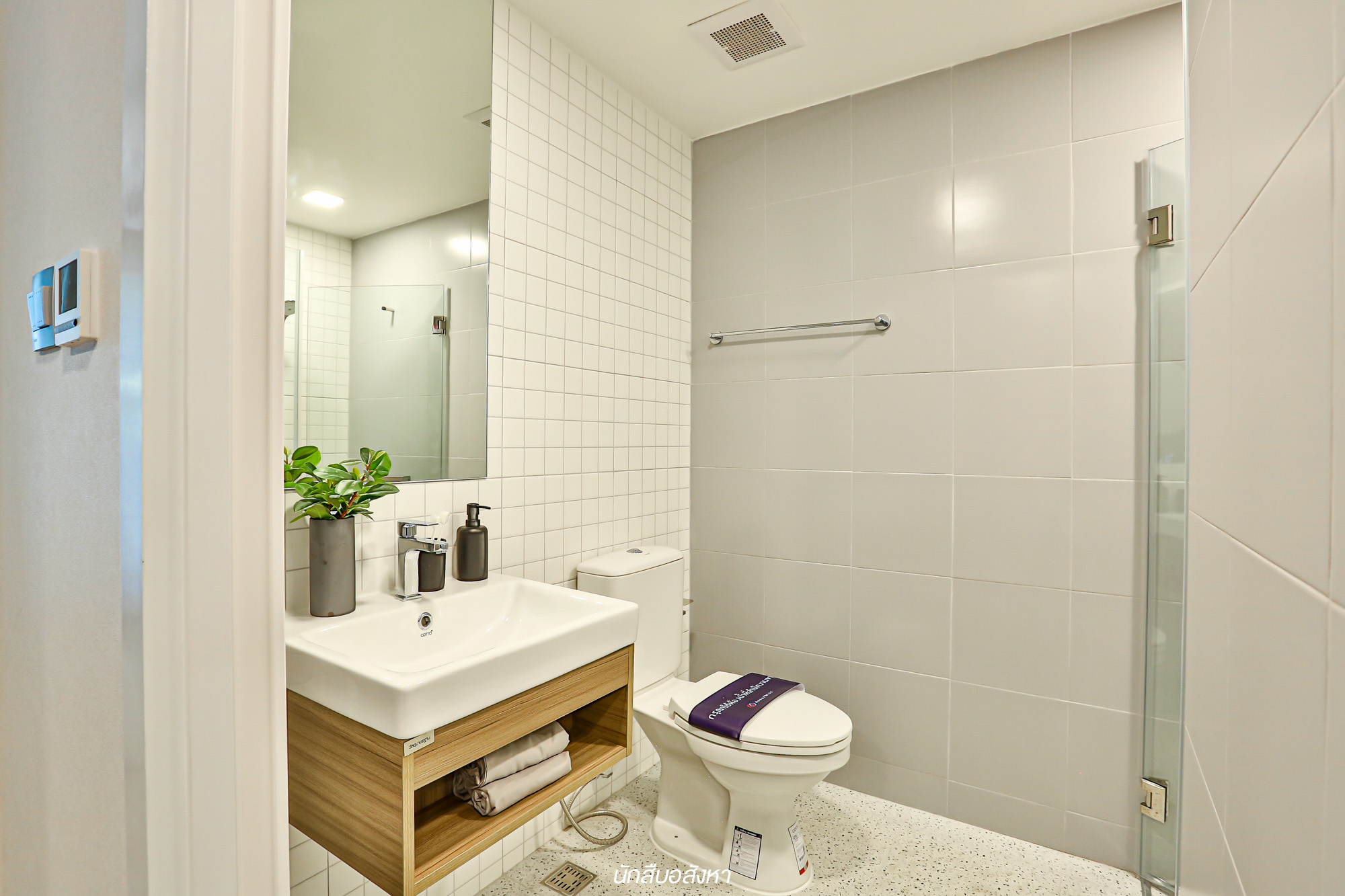 และในส่วนของพื้นที่ห้องน้ำจะอยู่ตรงข้ามกับห้องครัวเลยครับ พื้นที่ภายในมีการแบ่งโซนแห้ง โซนเปียกชัดเจน ส่วนสุขภัณฑ์ก็ใช้เป็นแบรนด์มาตรฐานครับ