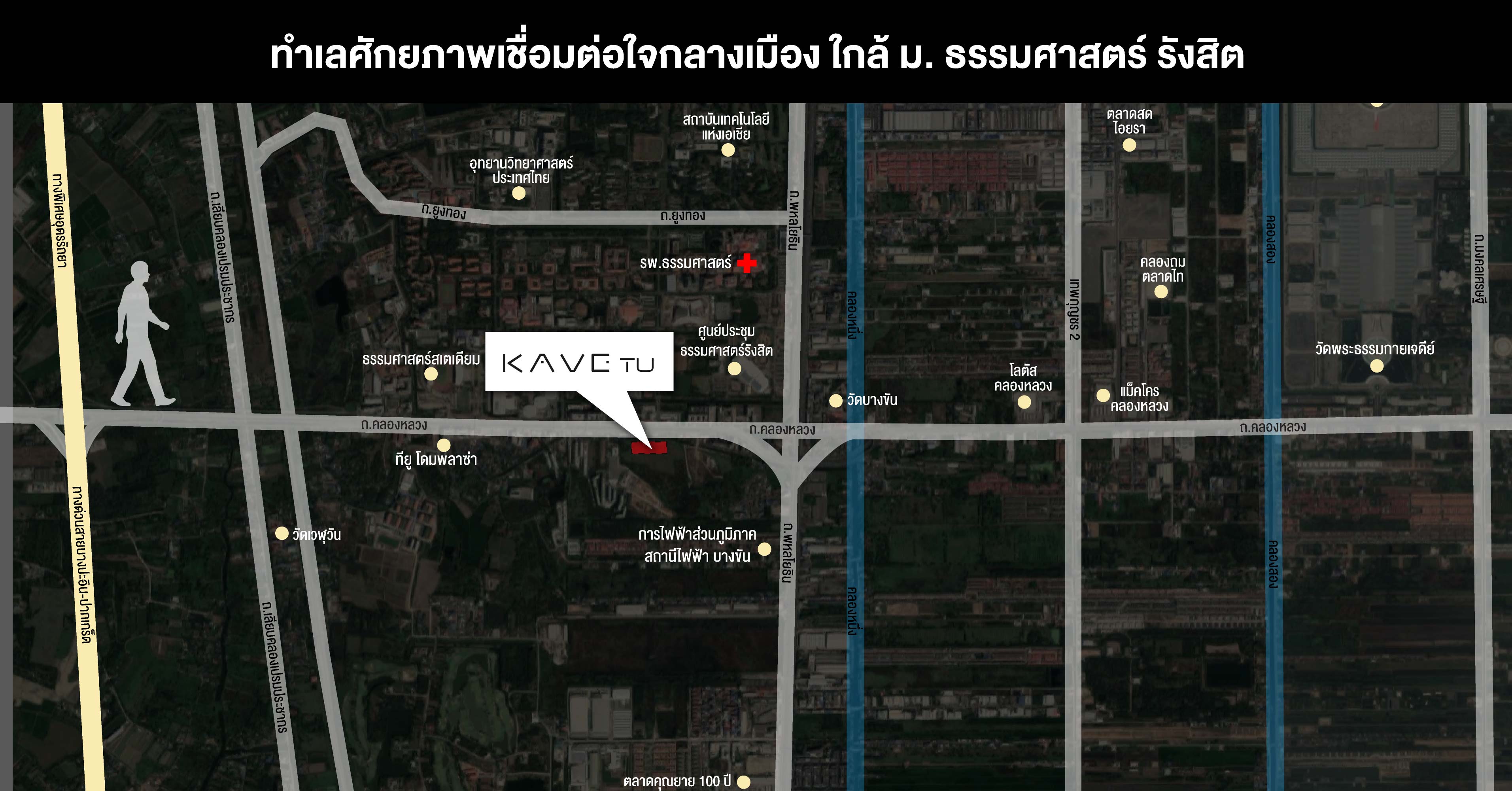 แต่ทำเลที่เด่นที่สุดที่ผมไม่พูดถึงไม่ได้เลยก็คือตัวโครงการ Kave TU ที่อยู่ใกล้กับมหาวิทยาลัยธรรมศาสตร์ ศูนย์รังสิต ซึ่งอย่างที่ผมเกริ่นไปก่อนหน้านี้ว่าตัวโครงการอยู่ห่างจากประตูเชียงราก 2 ของมหาวิทยาลัยเพียงแค่ 50 เมตรเท่านั้น ถือว่าตอบโจทย์กลุ่มนักศึกษาและอาจารย์มหาวิทยาลัยมากครับ เพราะสามารถเดินทางสู่ตัวมหาวิทยาลัยได้แบบไม่ต้องใช้รถก็ได้ครับ