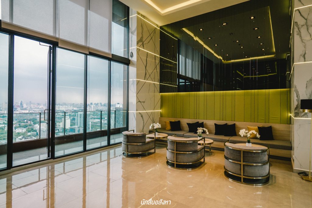 สุดท้ายไฮไลท์ของโครงการนี้ ส่วนกลางอยู่ชั้นบนสุดครับ โดยมี Sky lounge ทั้งหมด 2 โซน ซึ่งจะเห็นวิว 2 วิว คือ City วิวและวิว ARL รามคำแหง Sky Lounge สูงถึง 6 เมตร ดูใหญ่และโปร่งมากเลยครับ ถ้ามาชมวิวตอนกลางคืน ผมว่ามันคงสวยมากๆ ครับ เพราะจะเห็นเส้นถนนที่มีแสงไฟบริเวณทางด่วนและเส้นถนนรามคำแหง-พระราม 9 ด้วยครับ