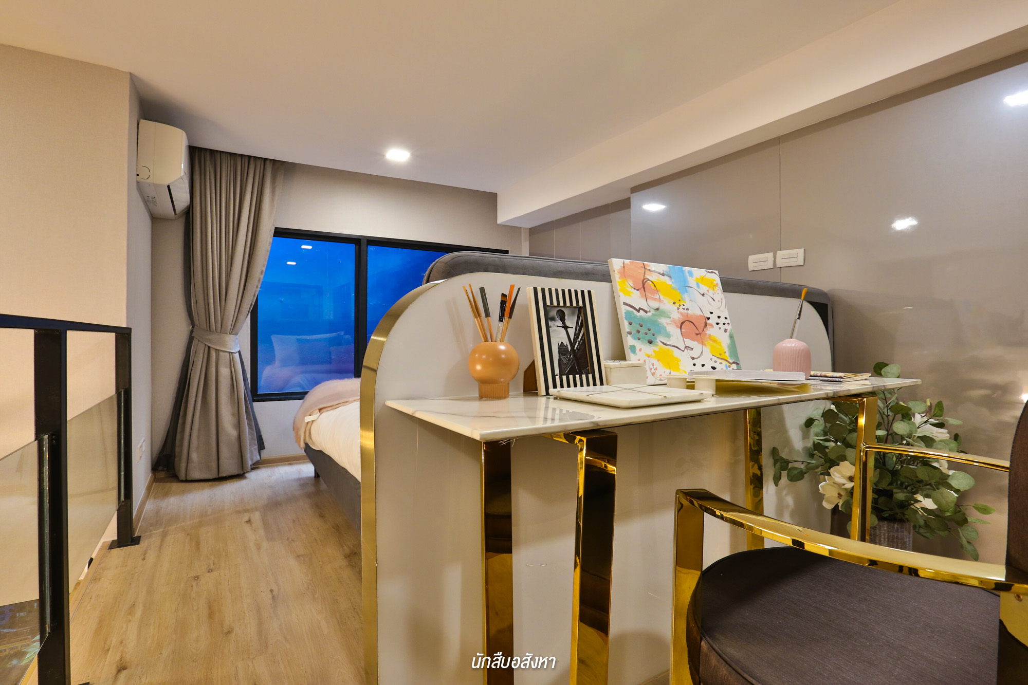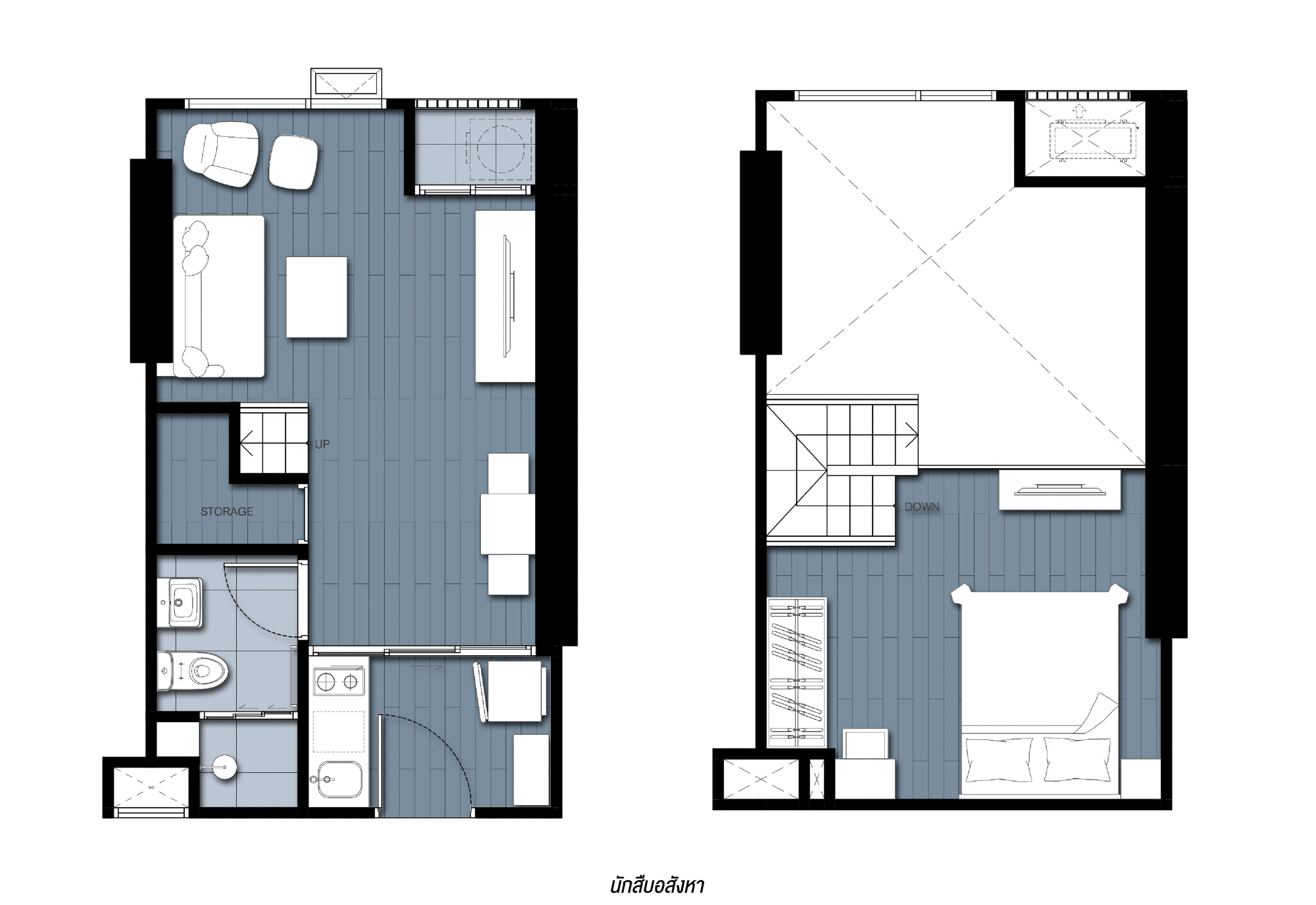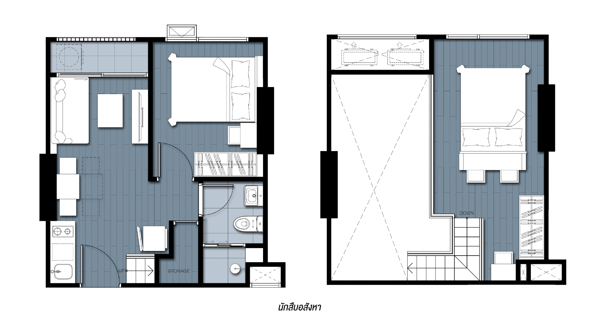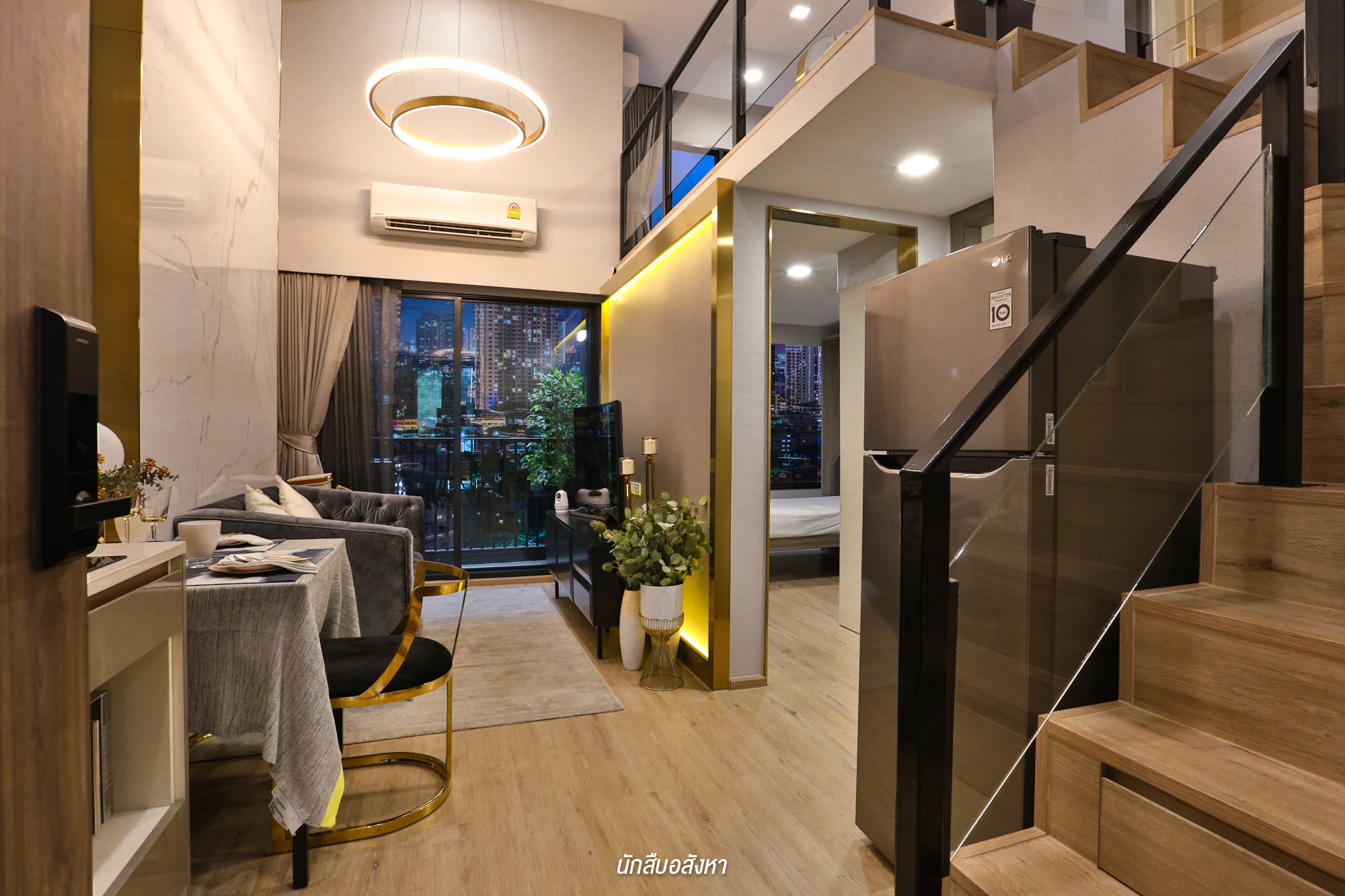 ห้องนี้เหมาะกับคนที่ชอบมีพื้นที่ส่วนตัวหลายมุม เพราะมีห้องนอน 1 ห้อง และห้องอเนกประสงค์ที่สามารถทำเป็นห้องนอนหรือห้องกิจกรรมอื่นๆ ตามไลฟ์สไตล์ของคนพักอาศัยได้ครับ ตอนเข้ามาเราจะเจอครัวและมุม Living Area ที่ติดระเบียงก่อน เพื่อใช้ชมวิวได้ และทางด้านขวามือจะเป็นห้องนอนที่แบ่งกั้นห้องชัดเจนและห้องน้ำ ในส่วนของชั้น 2 จะเป็นห้องนอนเล็ก หรือจะทำเป็นพื้นทีแต่งตัว Walk in Closet หรือเป็นที่นั่งเล่นด้านบนก็ได้ครับ แล้วแต่ไอเดียการแต่ง สำหรับผม มองว่าห้องนี้มีพื้นที่เหมาะสมคนที่ชอบมีมุมส่วนตัวของตัวเองหลายๆ มุมครับ