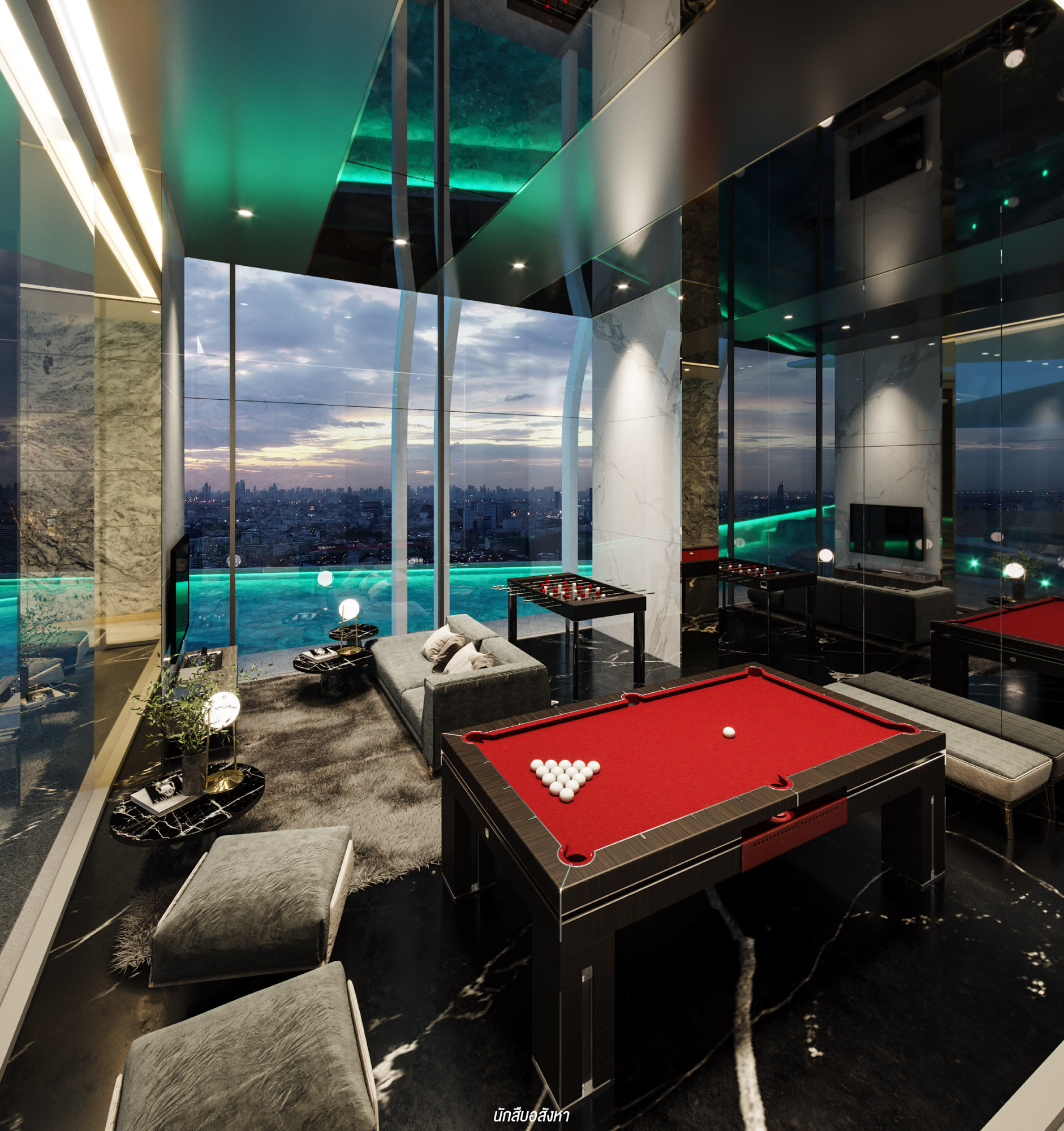 3.ส่วนกลาง : ส่วนกลางของที่นี่ให้มาเยอะ และสเปก Luxury รวมไปถึงตอบโจทย์การใช้งานของชีวิตคนเมือง ไม่ว่าจะเป็นโซน Example Lounge, Co-Working, Game room, Fitness, Co-Kitchen, Swimming Pool ระบบเกลือครับ