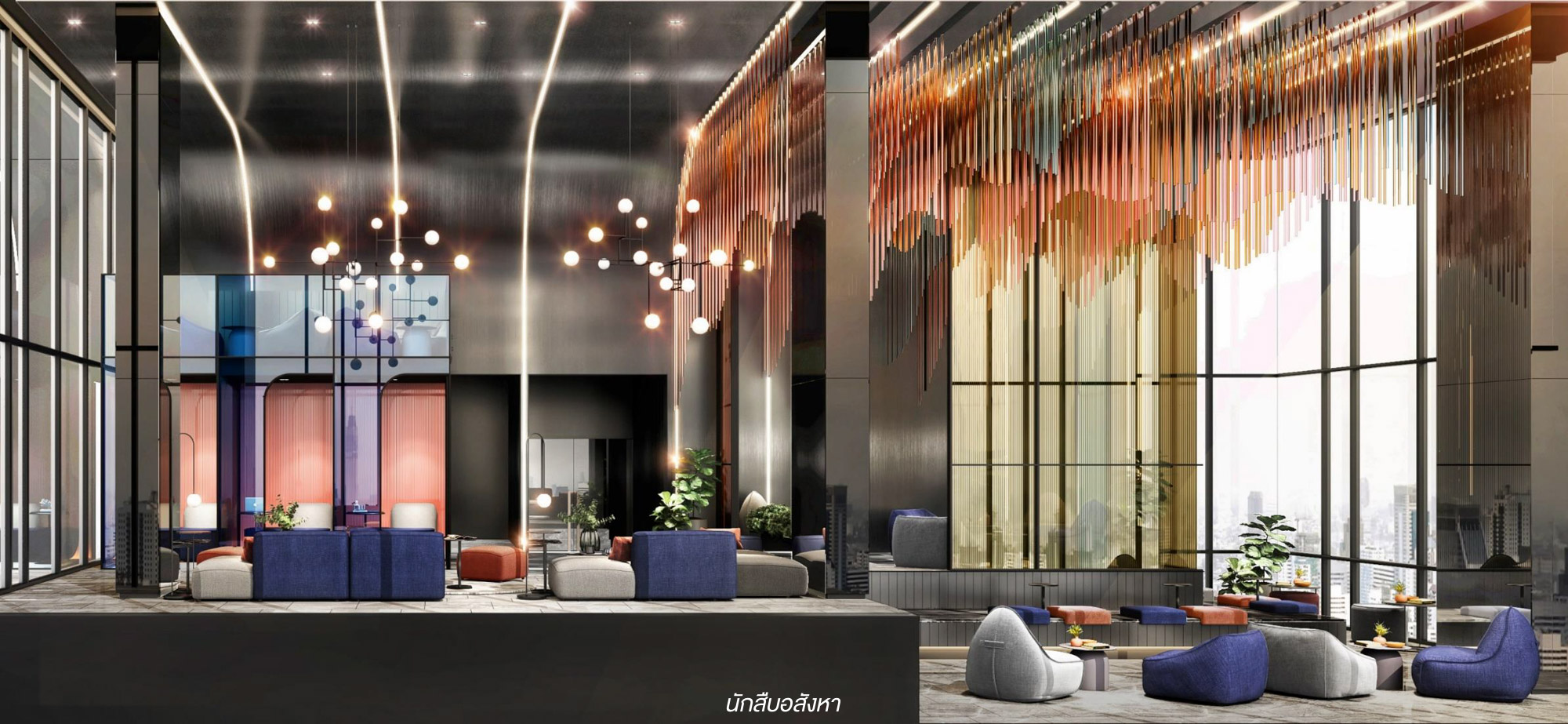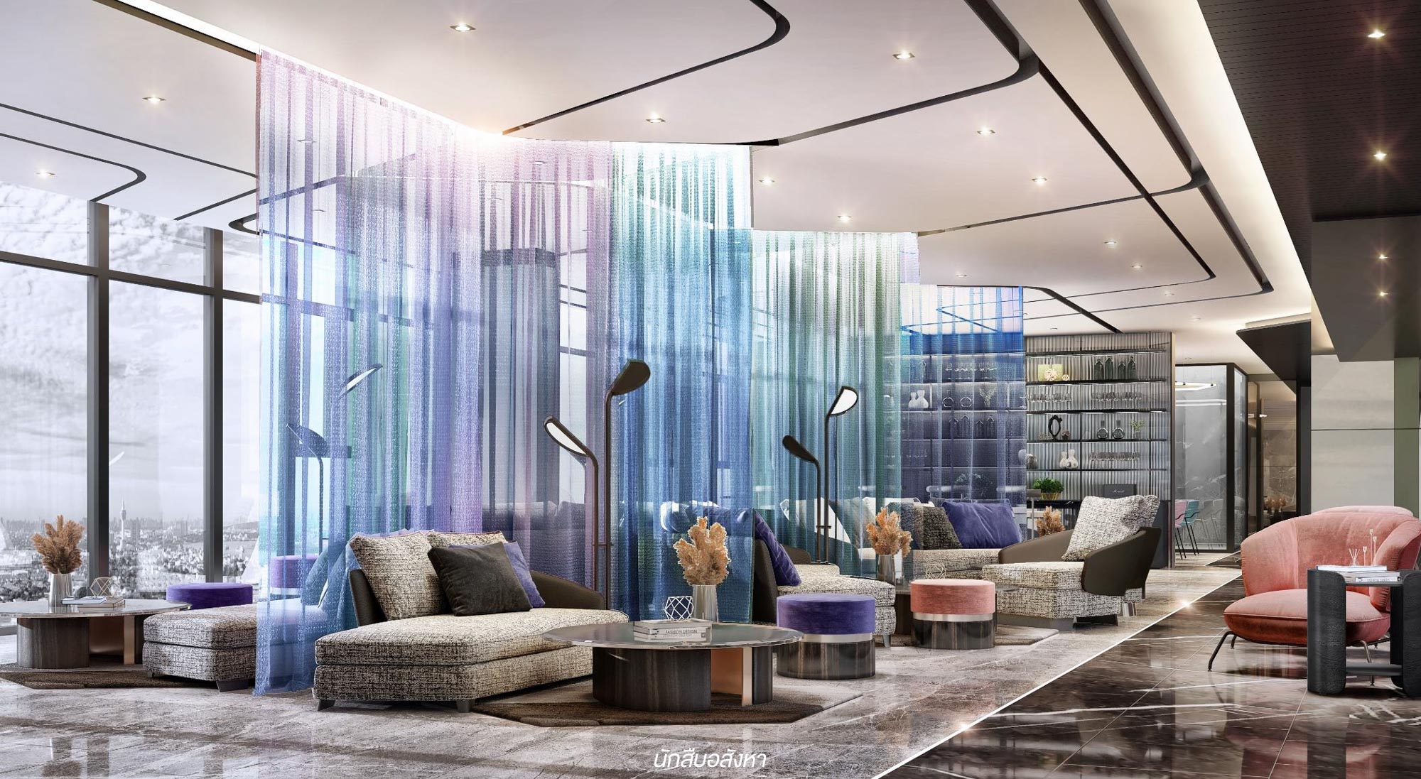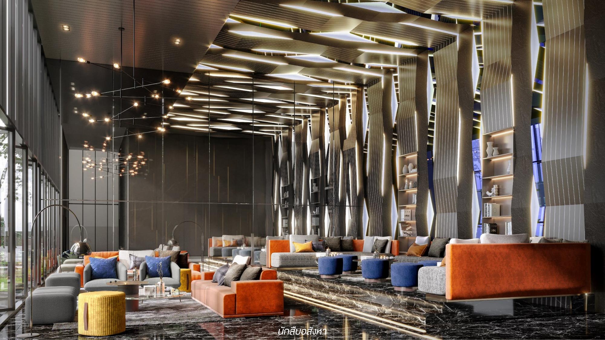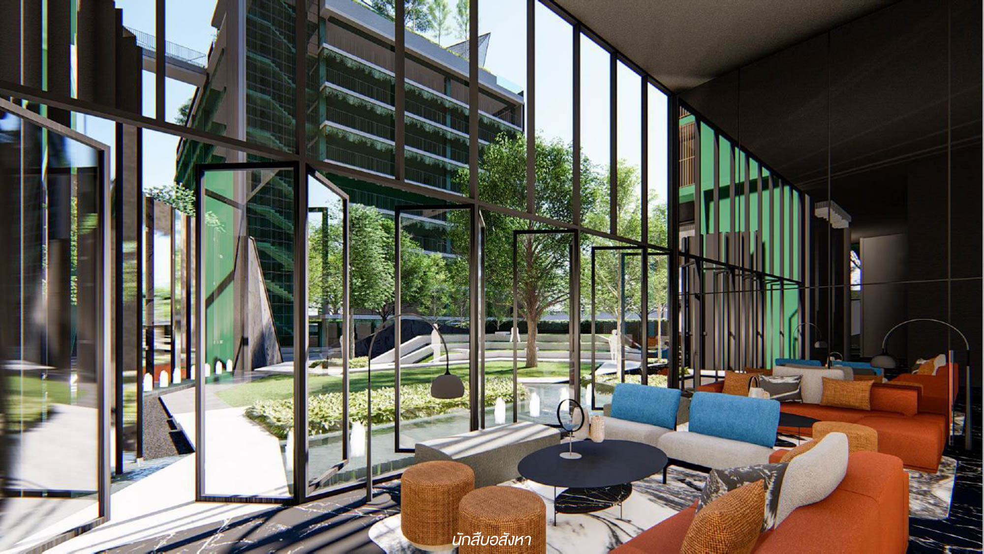 Private Lobby : อีกโซนที่อยู่ถัดจาก Main Lobby ก็คือ Private Lobby ที่ให้ความเป็นส่วนตัวสำหรับลูกบ้านมากยิ่งขึ้น มุมนี้สามารถใช้เป็นมุมพักผ่อน หรือคุยงานได้เลย ด้านข้างจะเชื่อมต่อกับสวนร่มรื่น