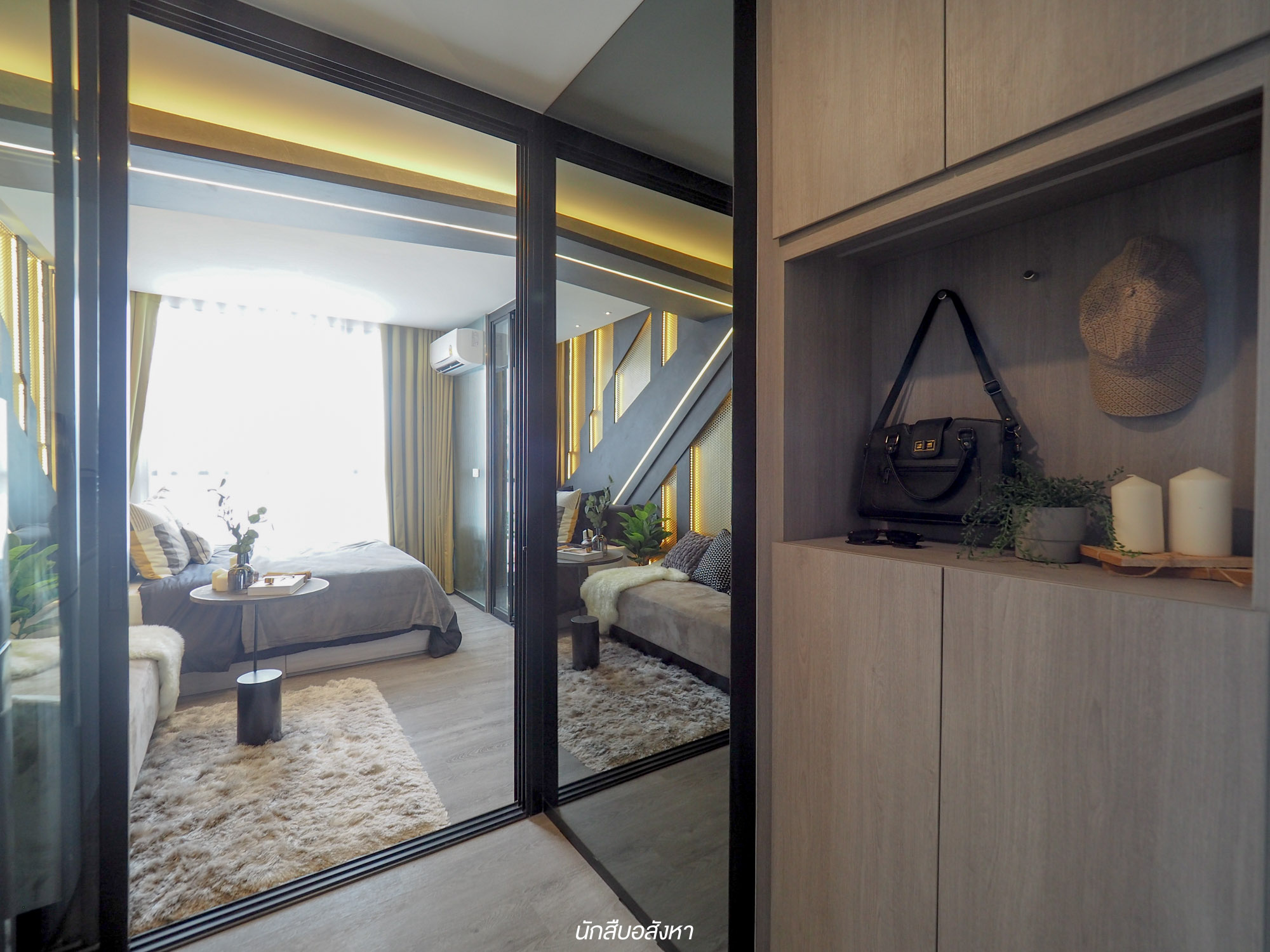 4. รูปแบบห้องและสเปก : รูปแบบห้องเน้นการใช้งานได้จริง ฟังก์ชันต่างๆ สามารถปรับเปลี่ยนได้เพื่อให้ตอบโจทย์คนหลากไลฟ์สไตล์ และยังมีห้อง 1 Bedroom Smart Closet ที่แม้ว่าขนาดพื้นที่จะแค่ 22 ตร.ม. แต่การออกแบบแปลนห้อง ทำให้ห้องนี้กลายเป็นห้องที่อยู่สบาย ไม่คับแคบ และยังเป็นห้อง 1 Bedroom ที่พิเศษด้วยฟังก์ชัน Smart Closet อีกด้วยครับ