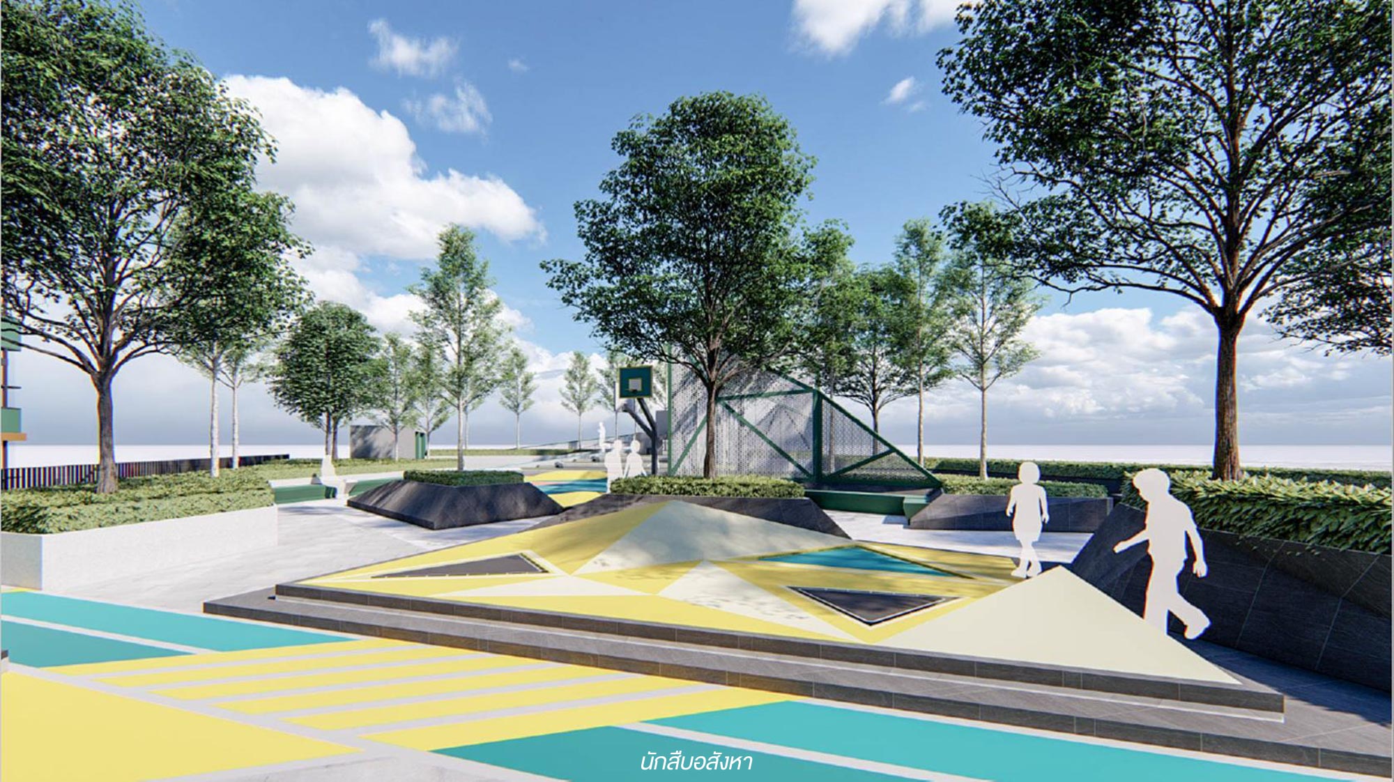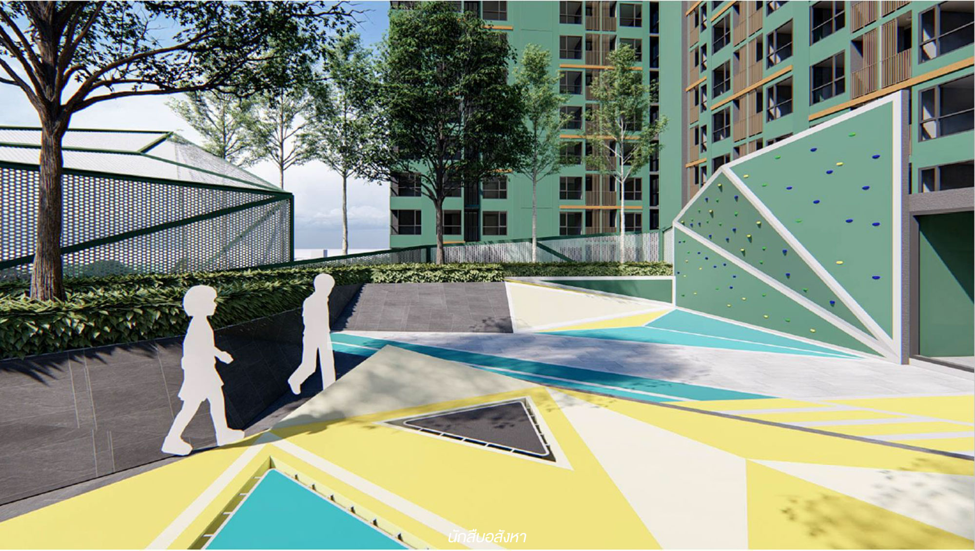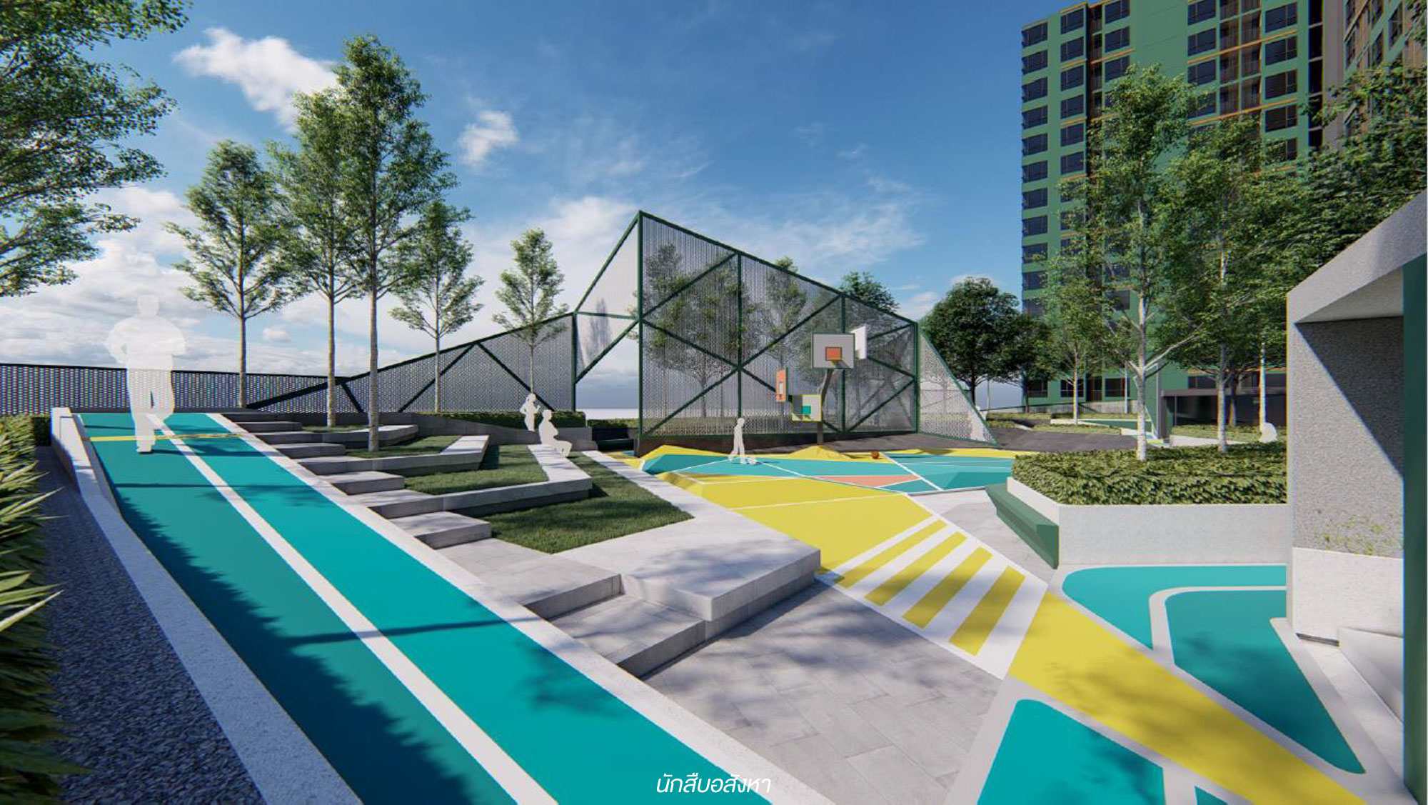 Multi Sport Area + Active Play Space : มุมนี้ค่อนข้างเป็นมุมที่ผมชอบ เป็นอีกมุมที่สามารถให้ลูกบ้านทำกิจกรรม Outdoor ได้หลากหลายกิจกรรม อย่างโซน Multi Sport Area จะมีทั้งสนามบาสและลาน Skateboard ส่วนโซน Active Play Space จะมีทั้งพื้นที่หน้าผาจำลองและ Tampoline เรียกได้ว่าจัดเต็มได้หลายกิจกรรมเลยครับ