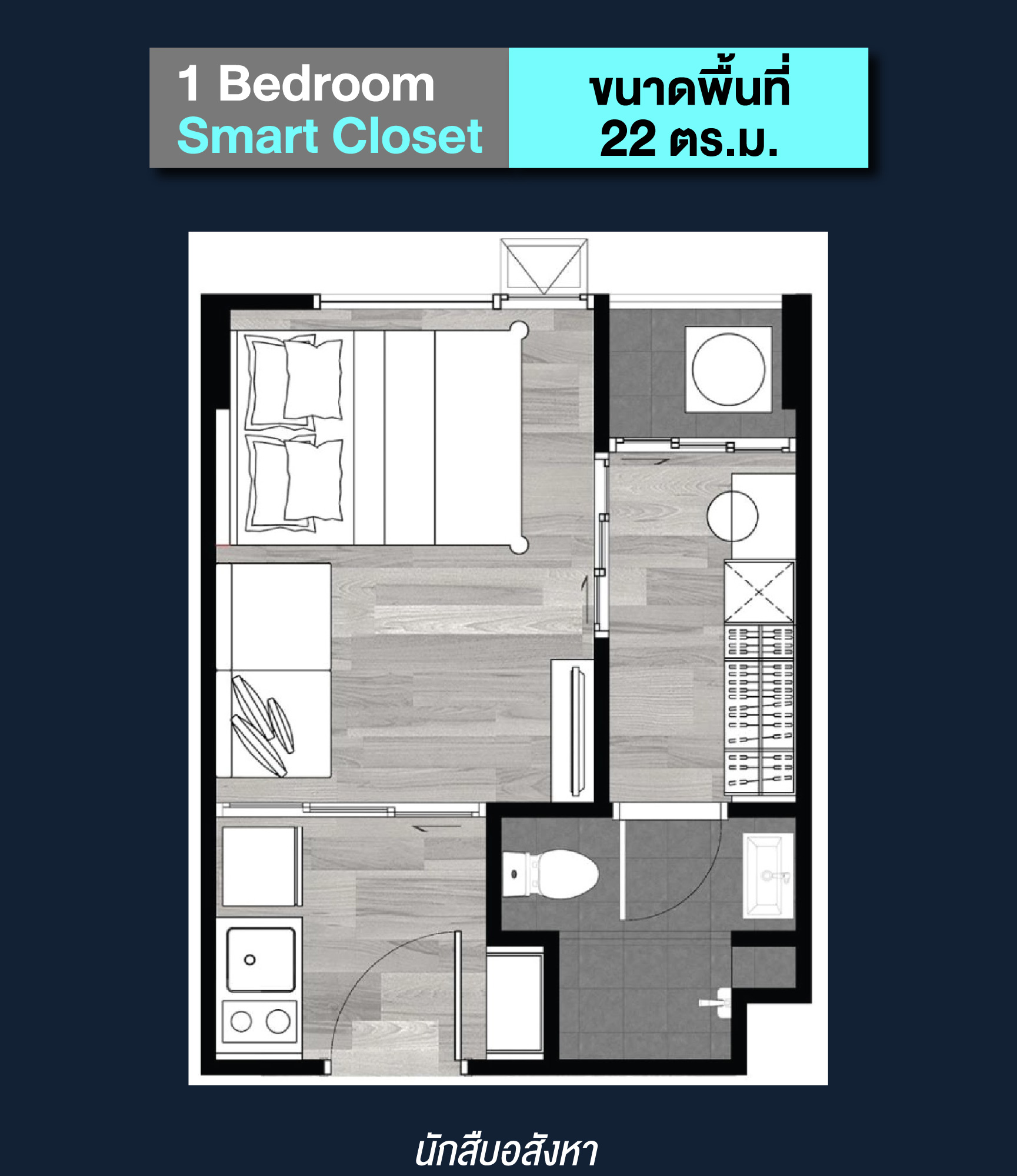 ◼️ 1 Bedroom Smart Closet ขนาดพื้นที่ 22 ตร.ม.