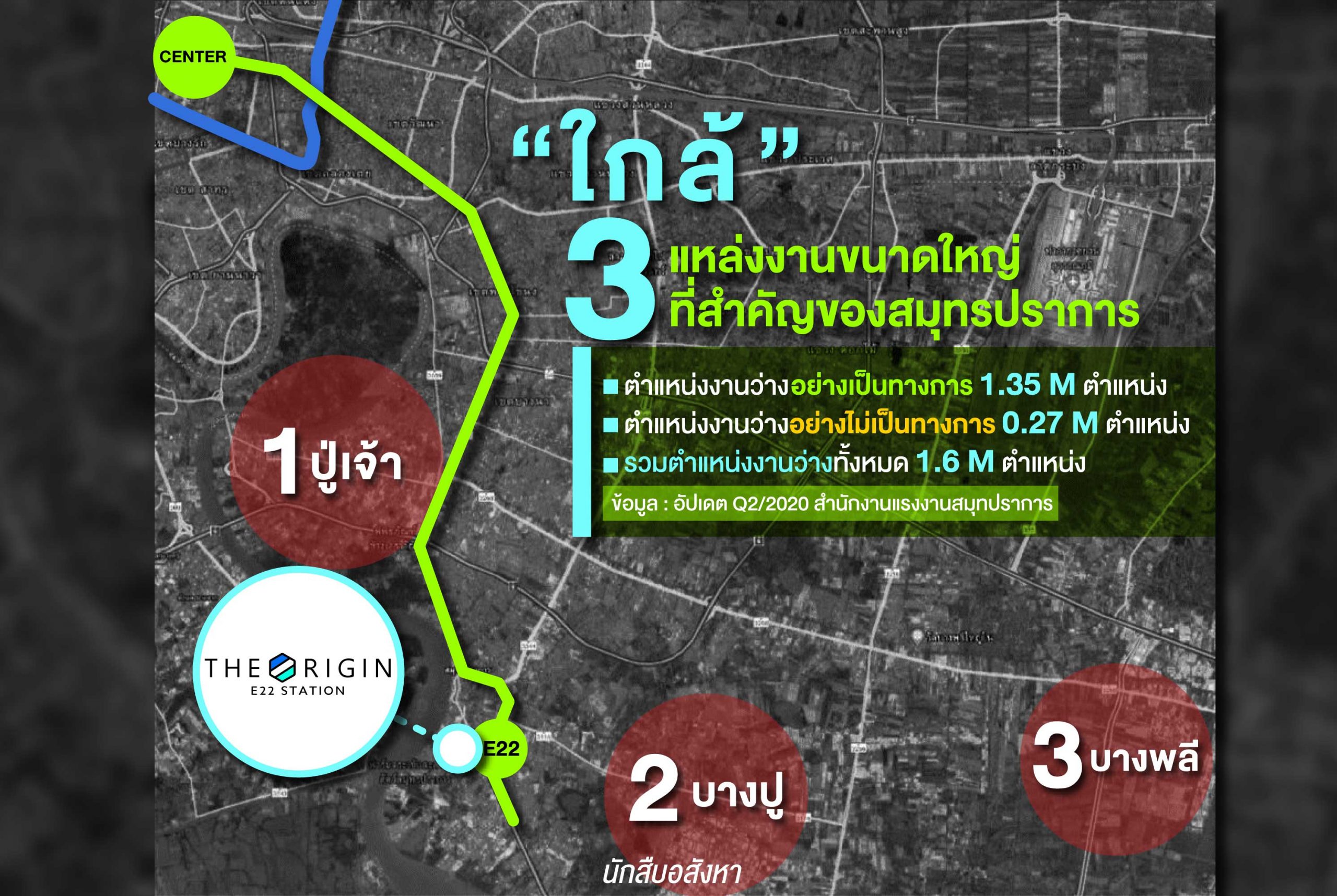 นอกจากการเดินทางที่เอื้อความสะดวกด้วยรถไฟฟ้าแล้ว อีกสิ่งที่ผมว่าทำเลนี้น่าสนใจมากก็คือ การอยู่ใกล้กับแหล่งงานที่สำคัญขนาดใหญ่ถึง 3 แห่ง และพอมีรถไฟฟ้าเข้ามาเชื่อมต่อความสะดวกเรื่องของการเดินทางแล้ว ไม่ว่าจะเป็นคนเมือง หรือคนในท้องที่ ต่างก็มีทางเลือกในงานมากยิ่งขึ้น ไม่ว่าจะเป็นโซนปู่เจ้า, บางปู หรือโซนบางพลี ซึ่งที่อยู่ใกล้กับตัวโครงการก็คือจะเป็นนิคมอุตสาหกรรมบางปูนั่นเองครับ