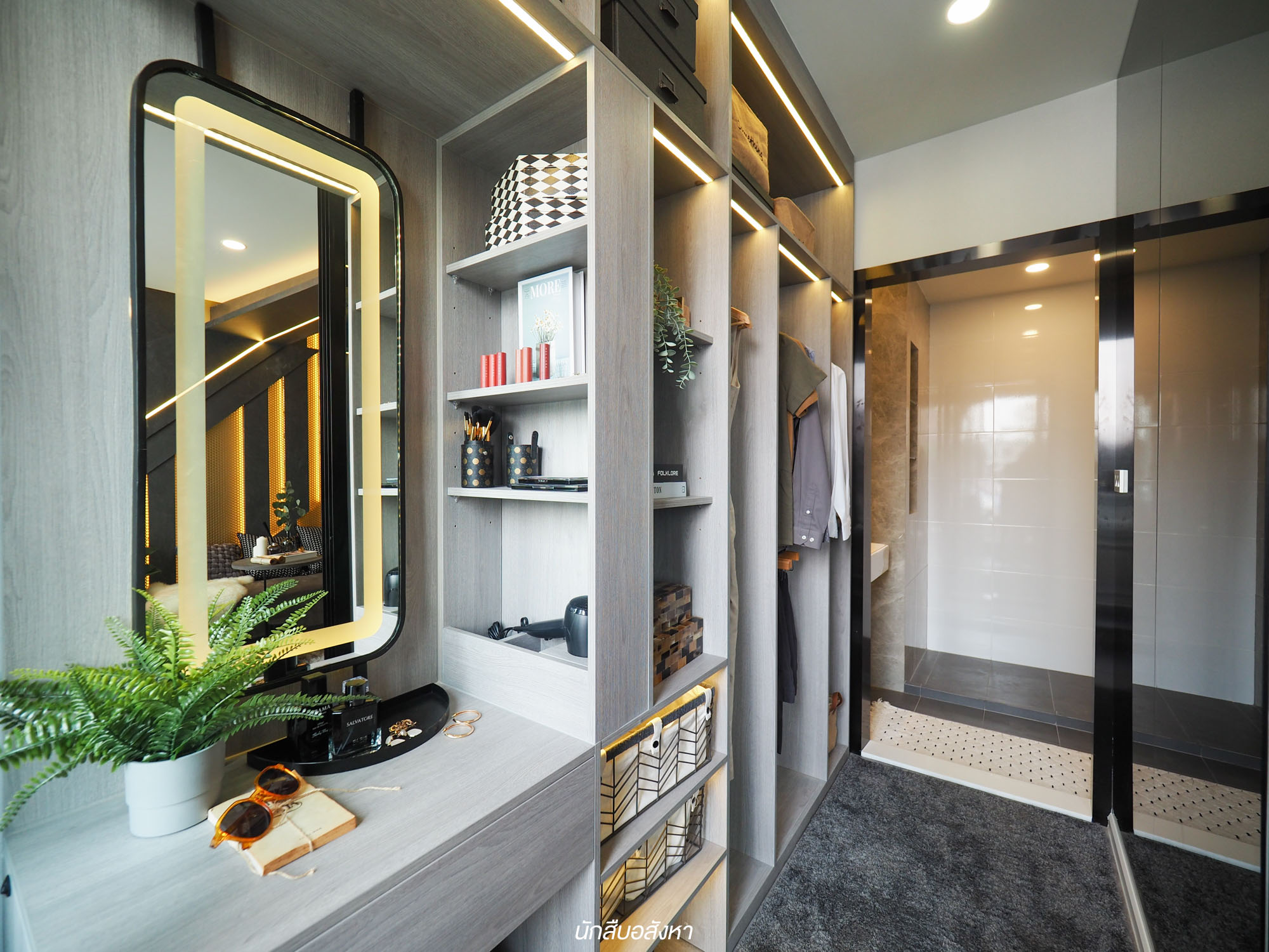 และฟังก์ชันที่น่าสนใจของห้อง Type นี้ก็คือ ทางโครงการมีพื้นที่สำหรับ Smart Closet ที่สามารถจัดวางตู้เสื้อผ้าขนาดใหญ่ได้ จะอยู่ระหว่างห้องนอน ซึ่งจะมี Partition กั้นเป็นสัดส่วน