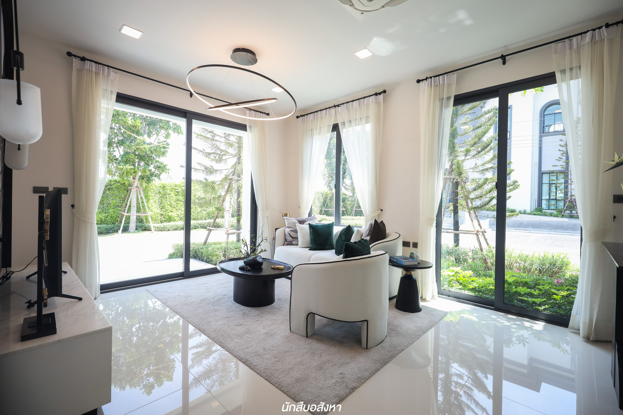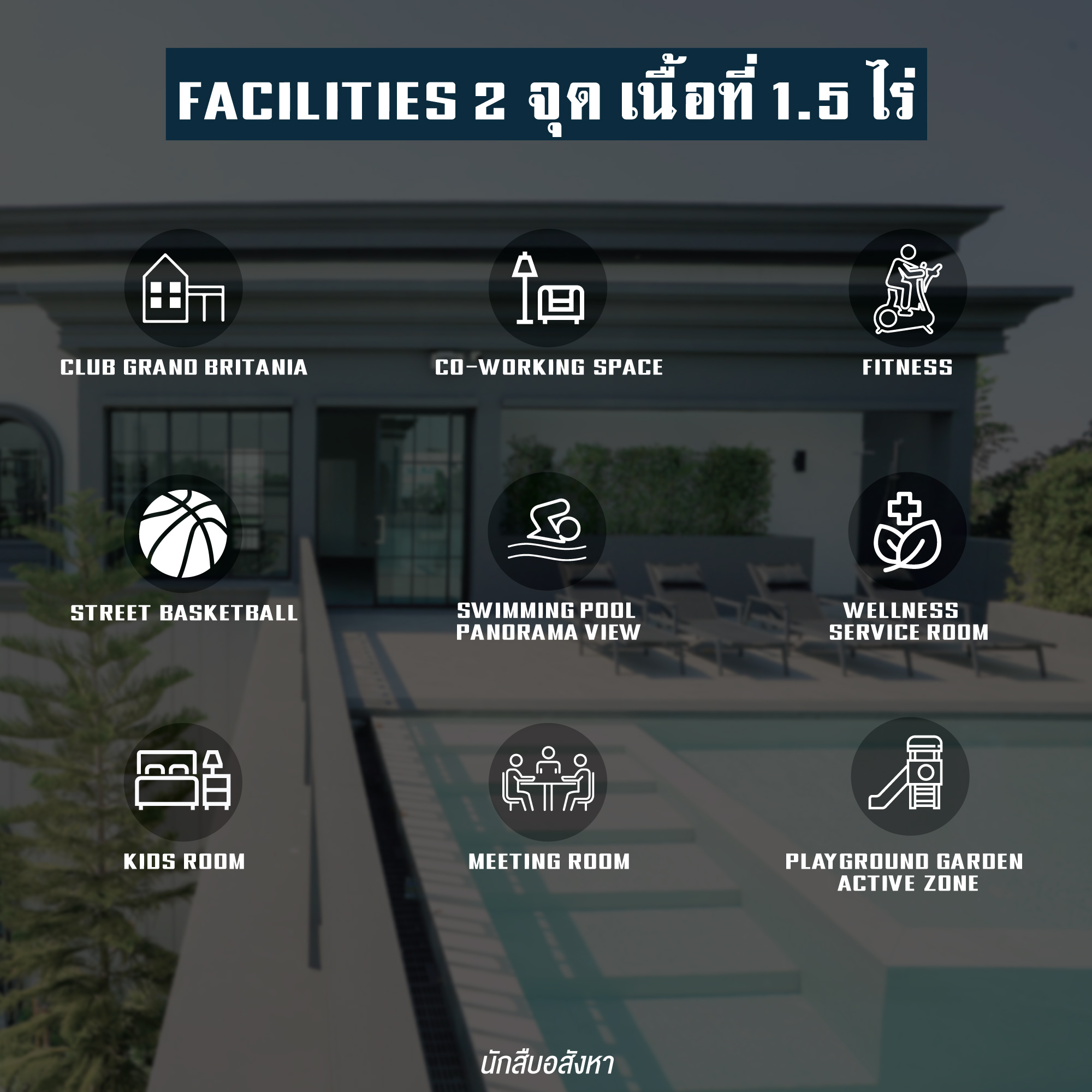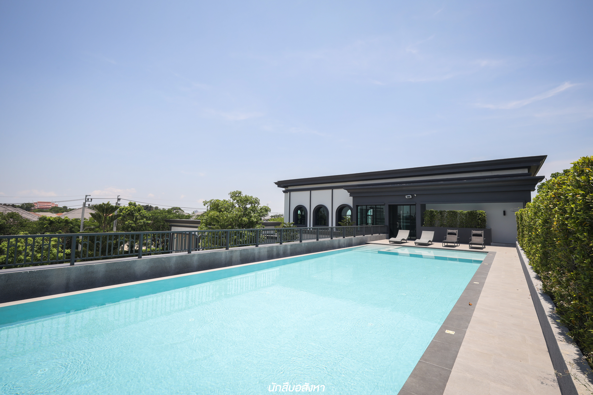 นอกจากตัวบ้าน พื้นที่ส่วนกลางก็ยังถือว่าเป็นที่สุด มีเนื้อที่กว่า 1.5 ไร่ กระจายเป็น 2 จุด ด้วยกันครับ ส่วนแรกคือ คลับเฮาส์อยู่ด้านหน้าเชื่อมกับซุ้มประตู ส่วนที่ 2 คือ พื้นที่สวนและ Facilities ที่เป็น Outdoor ทำให้ที่นี่มีกิจกรรมให้เลือกมากมาย อาทิ