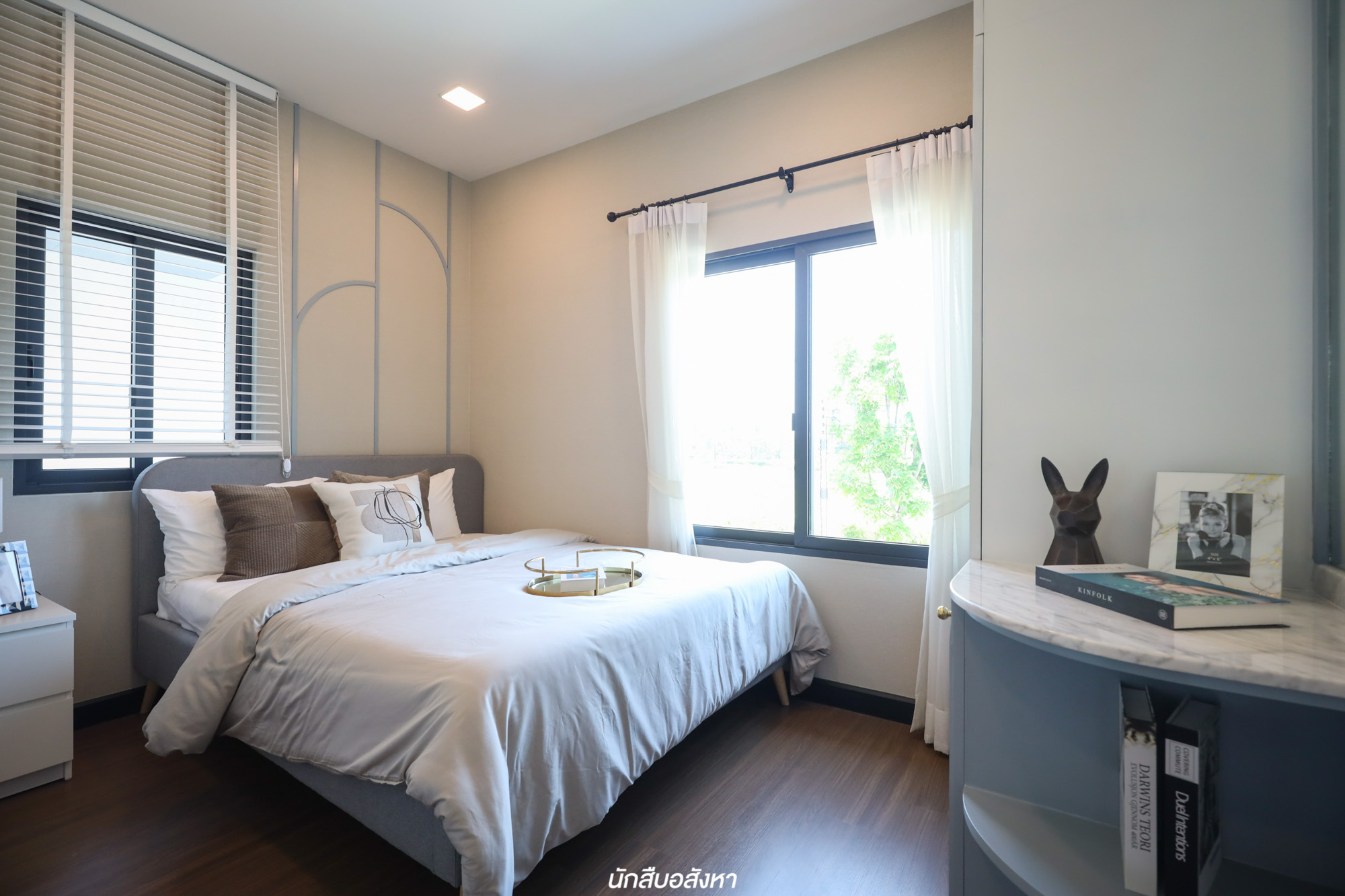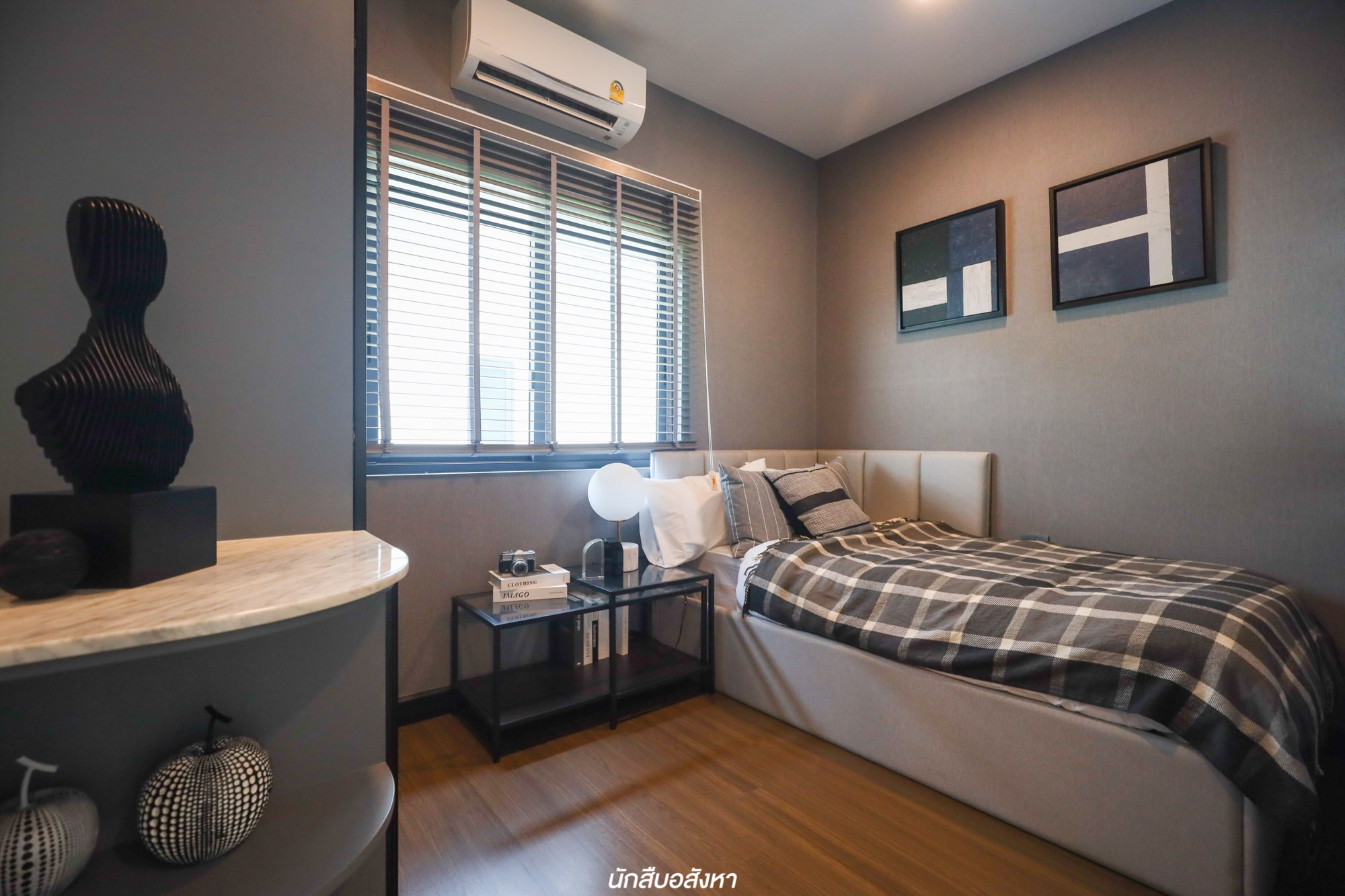 ส่วนอีก 2 ห้องนอนที่เหลือ มีพื้นที่ใช้งานลดหลั่นกันไปครับ Hight Ceiling 2.8 เมตร ช่วยทำให้ห้องดูโปร่งและยังมีพื้นที่ใช้สอยในส่วนความสูงอีกมาก เราจึงทำเป็นมุมเก็บของได้เพิ่มมากขึ้นด้วย