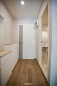ขยับเข้ามาข้างในกันบ้าง จะเป็นส่วนที่พักอาศัยแล้ว สำหรับขนาดห้องจะมีให้เลือกเพียง 2 แบบ คือ ห้องสตูดิโอ ขนาด 30 ตร.ม. และห้อง 1 Bedroom 34 ตร.ม.