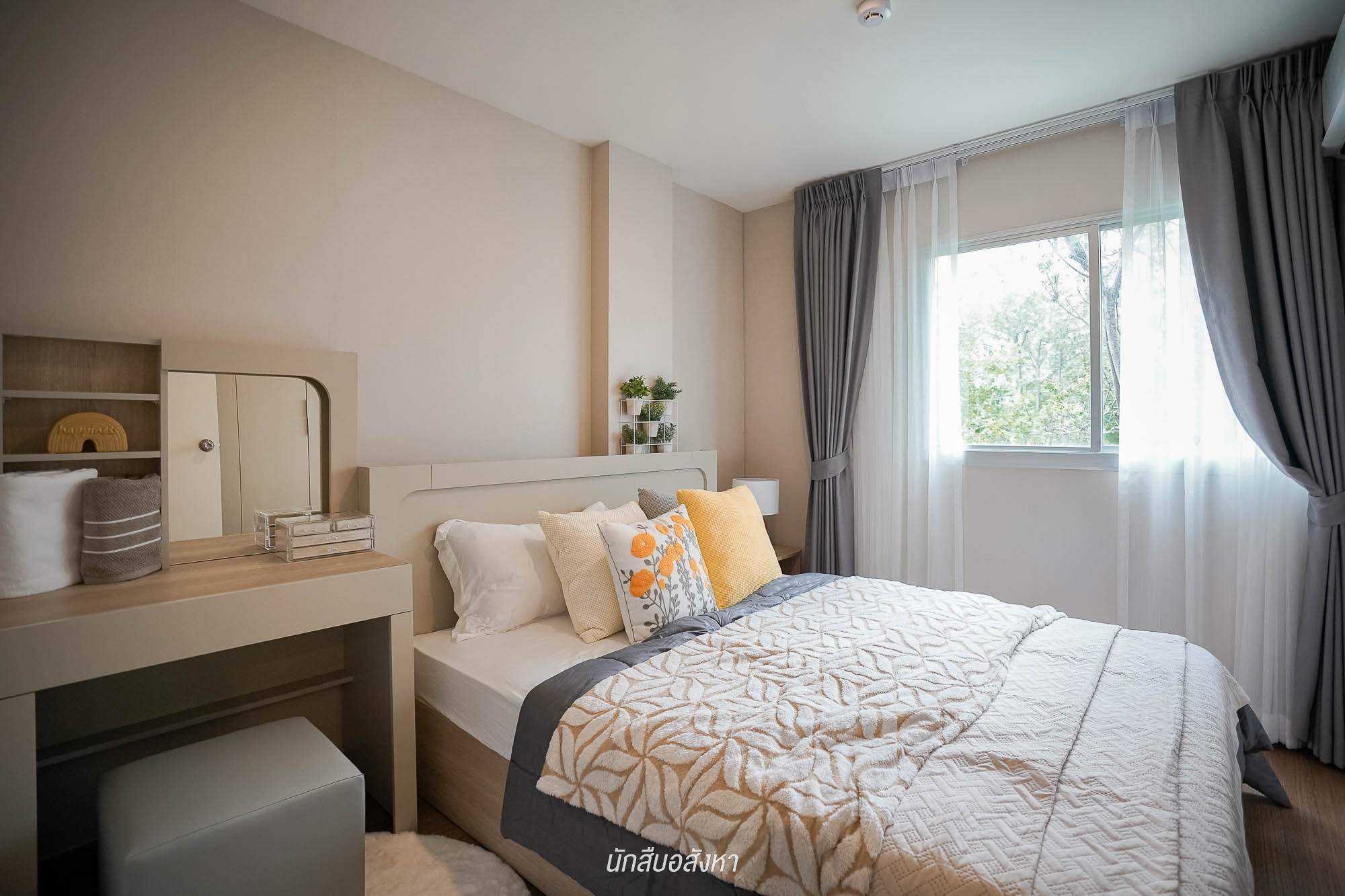 สำหรับใครที่ต้องการความเป็นสัดส่วน มีการแบ่งโซนอย่างชัดเจน แนะนำไทป์นี้ครับ ฟังก์ชัน 1 ห้องนอน 1 ห้องน้ำ และ 1 ห้องครัวปิด แยกโซนพื้นที่นั่งเล่นกับห้องนอนออกจากกัน ทั้งยังได้พื้นที่ใช้สอยมากขึ้น ซึ่งห้องนี้ก็มาพร้อมเฟอร์นิเจอร์แบบพร้อมอยู่เช่นกันครับ