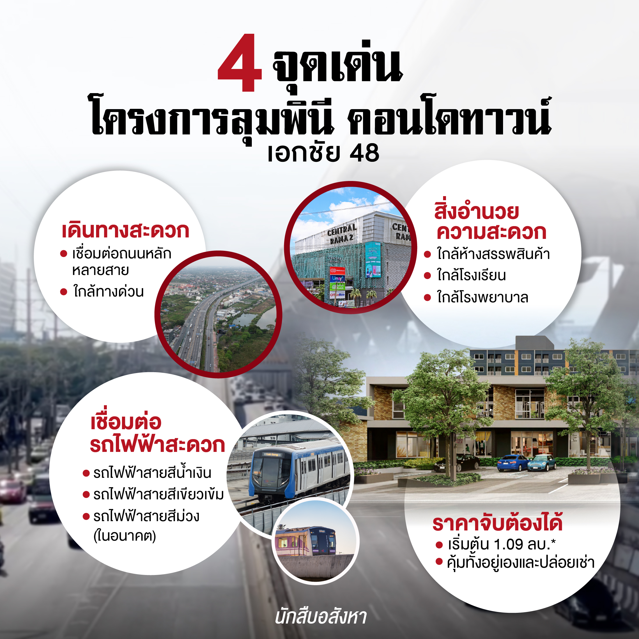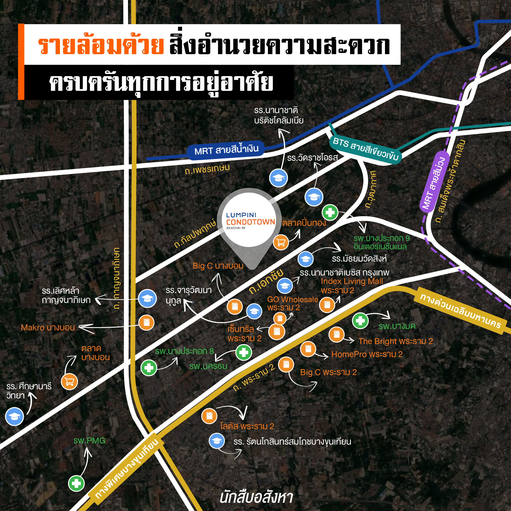 โครงการ ลุมพินี คอนโดทาวน์ เอกชัย 48 ถือเป็นโครงการซิตี้คอนโดที่ตั้งใจพัฒนาเพื่อเจาะกลุ่มผู้อยู่อาศัยในระดับ First Jobber และคนที่ทำงานอยู่ในพื้นที่ ไม่ว่าจะเป็นพนักงานห้าง หรือร้านค้า คุณครูหรือนักเรียน รวมไปถึงบุคลาการทางการแพทย์ เนื่องจากโซนนี้เป็นโซนชุมชนที่รายล้อมไปด้วยสิ่งอำนวยความสะดวกต่าง ๆ ครบครันในด้านเส้นทางคมนาคม และระบบขนส่งสาธารณะ ทั้งยังมี Demand ของความต้องการอยู่อาศัยตลอด กับราคาเริ่มล้านต้น ๆ เหมาะทั้งอยู่อาศัยเองและลงทุนปล่อยเช่า โดยผมขอสรุปง่าย ๆ ดังนี้