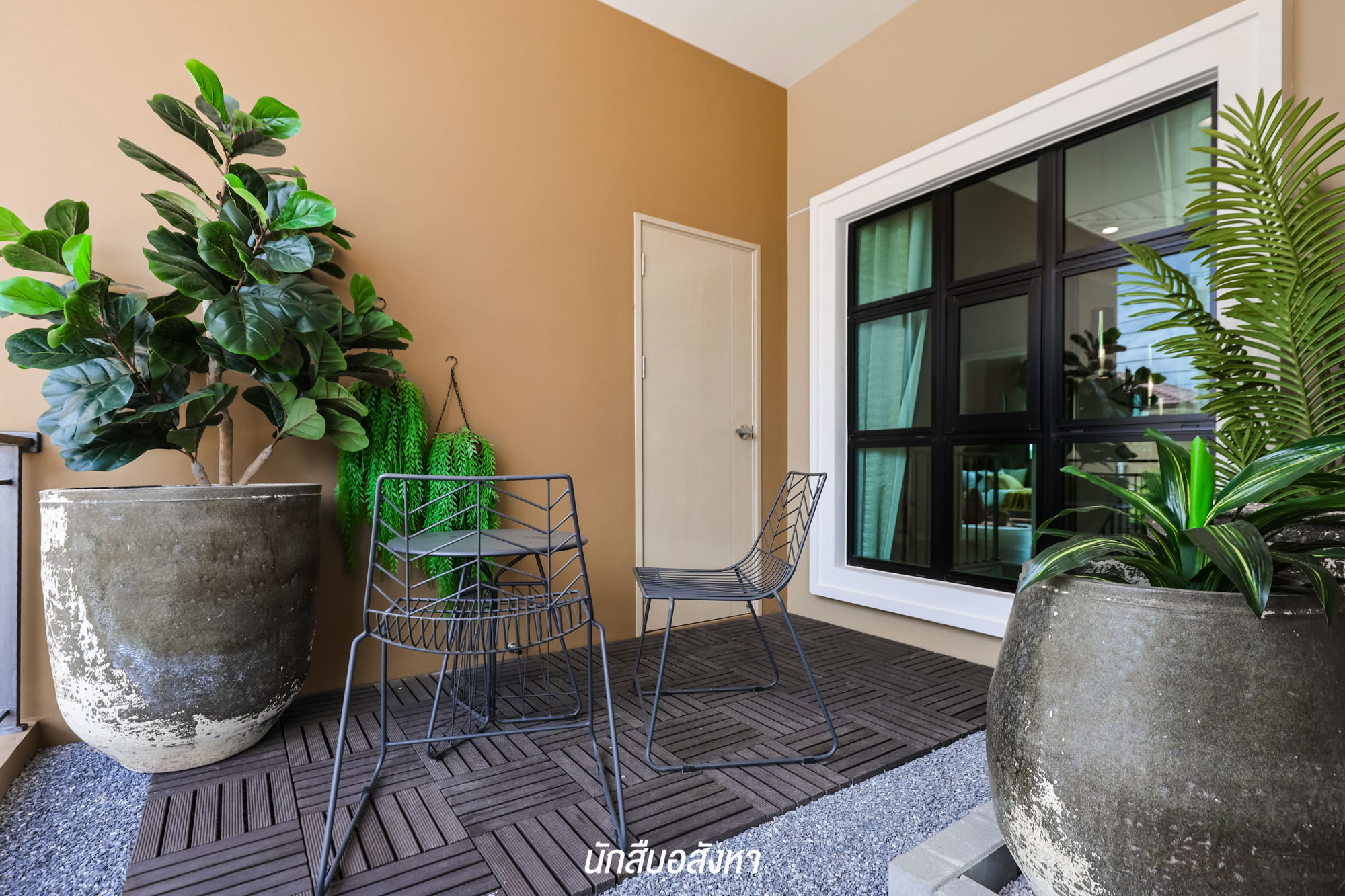 สำหรับทางเข้าบ้านหลักจะอยู่บริเวณด้านหน้าติดกับสวน ซึ่งจะเป็นประตูกระจกบานเปิด 2 ด้าน ส่วนประตูเล็กที่เข้าจากพื้นที่จอดรถจะมีการติดตั้ง Digital Door Lock มาให้เป็นมาตรฐานด้วย ทำให้มีความสะดวกและปลอดภัยในการใช้งานมากขึ้น นอกจากนี้ยังมีการติดตั้ง Magnetic & Shock Sensor ที่วงกบประตูหน้าต่างของบ้านทุกจุด ทุกหลัง ซึ่งจะเชื่อมต่อกันกับระบบ Home Automation สามารถดูได้จากสมาร์ทโฟน สะดวกมากครับ