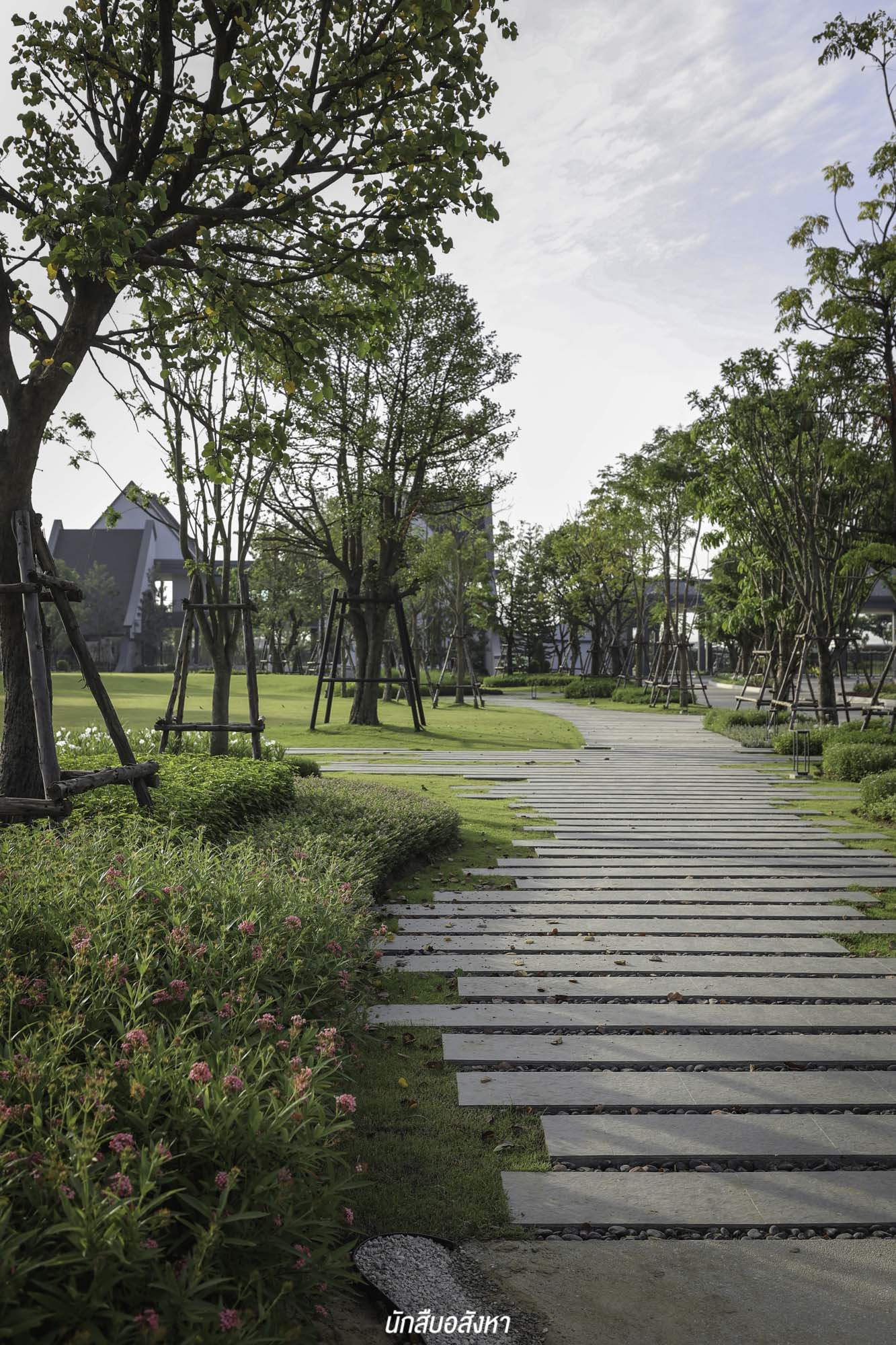 โครงการ สราญสิริ ศรีวารี 2 เป็นโครงการบ้านเดี่ยว สไตล์ Urban Farmhouse จากแสนสิริ มีพื้นที่ทั้งโครงการ 83-2–39 ไร่ จำนวนบ้าน 363 ยูนิต ท่ามกลางความร่มรื่นของพื้นที่สีเขียวขนาดใหญ่ ที่ได้รับแรงบันดาลใจมาจากการออกเดินทางไปยังสถานที่ท่องเที่ยวธรรมชาติในยุโรปแบบ Road Trip Journey ทำให้ความรู้สึกแรกที่เข้ามาภายในโครงการ สัมผัสได้ถึงบรรยากาศของบ้าน Farmhouse มีกลิ่นอายคันทรี่แบบยุโรปชานเมืองเล็กๆ ที่ดูอบอุ่น น่ารัก ยอมรับเลยว่าที่นี่เก็บดีเทลออกมาได้ค่อนข้างดี ไม่ว่าจะเป็น สไตล์การตกแต่งสวน หรือ ตัวสถาปัตยกรรม Facade มีการย่อมุม มีขอบบัว และลูกฟักประตูหน้าต่าง รวมถึงเส้นสายจากทิวภูเขามาเบลนเข้ากับงานดีไซน์ของคลับเฮาส์และประตูทางเข้าหลักของโครงการ ทำให้เกิดแอฟเฟคขนาดใหญ่เหมือนอยู่ท่ามกลางภูเขาจริง ๆ ฟีลเขาใหญ่