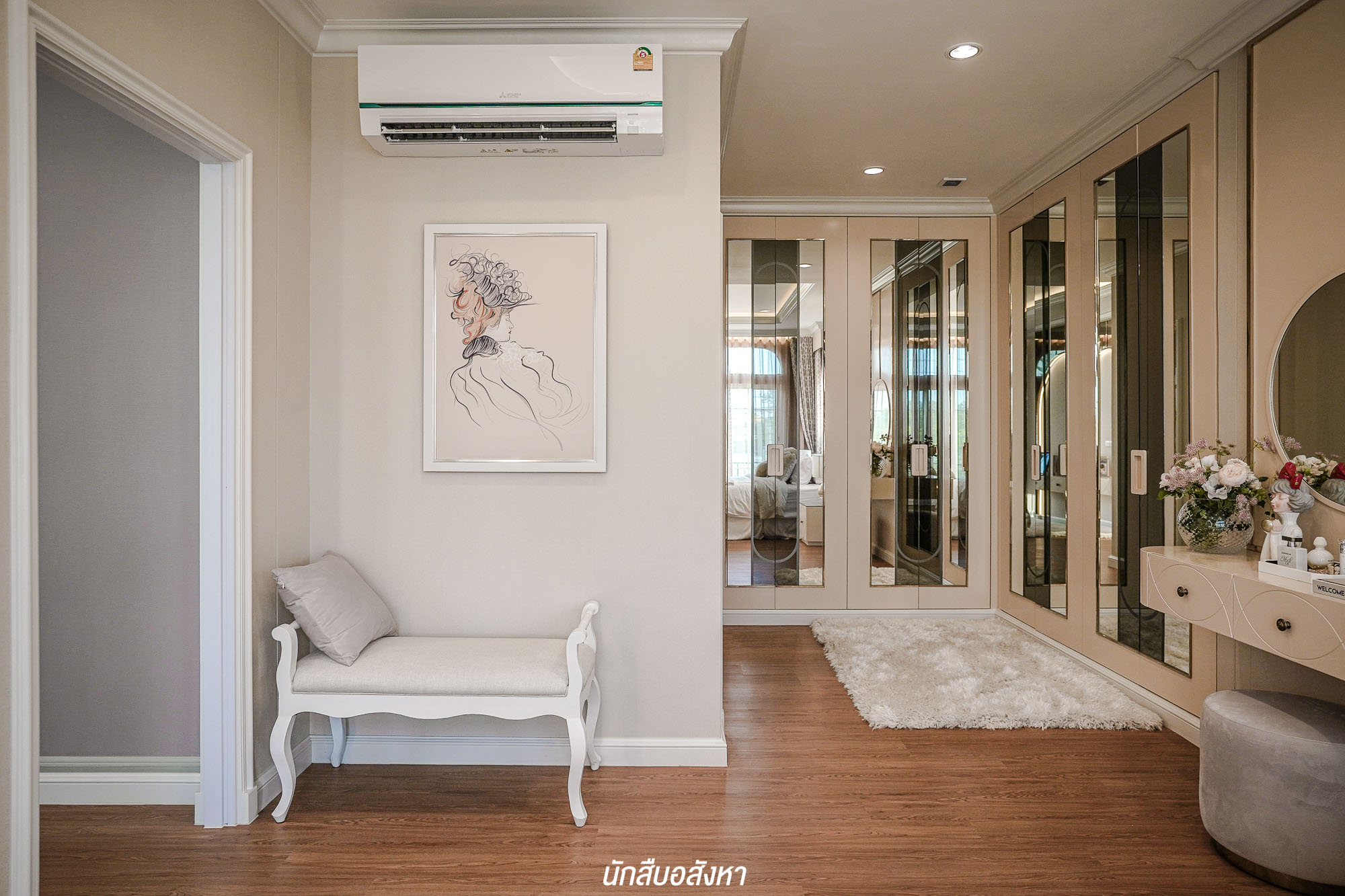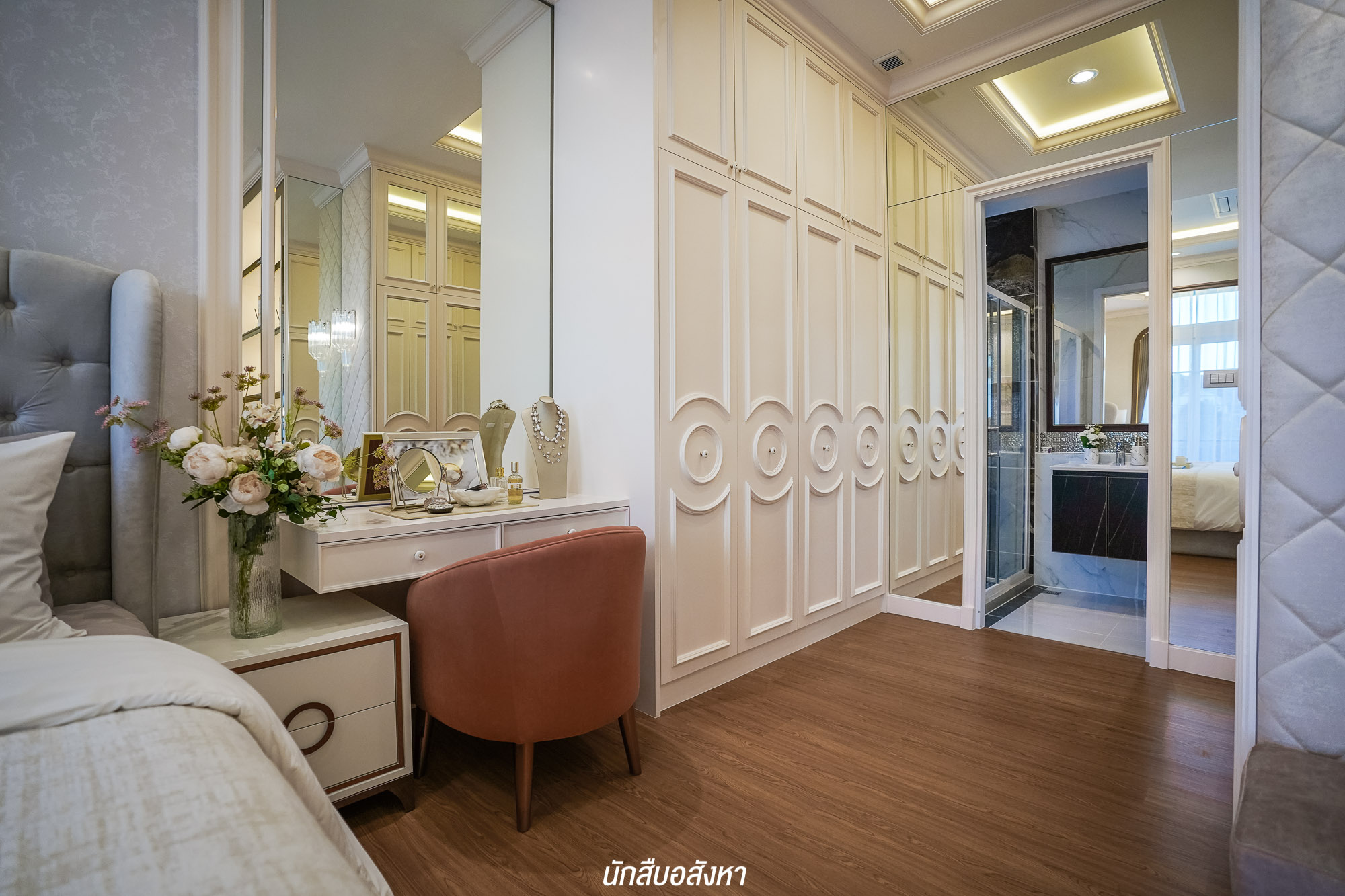 ต่อไปจะเป็นห้อง Master Bedroom ซึ่งบ้านหลังนี้จะได้เป็น Double Master Bedroom ขนาดใหญ่ที่มาพร้อม Walk In Closet ถึง 2 ห้อง โดยห้องแรกจะอยู่ฝั่งด้านซ้ายมือ ติดกันกับ Family Area ห้องนี้ได้พื้นที่ใช้สอยค่อนข้างกว้าง วางเตียงขนาด 6 ฟุตได้สบาย ๆ โดยที่ยังเหลือพื้นที่ติดตั้งทีวี จะมีระเบียงที่ขนาดไม่กว้างมากพอที่จะทำเป็นมุมจิบกาแฟยามเช้า แต่ออกมารับลมได้ครับ