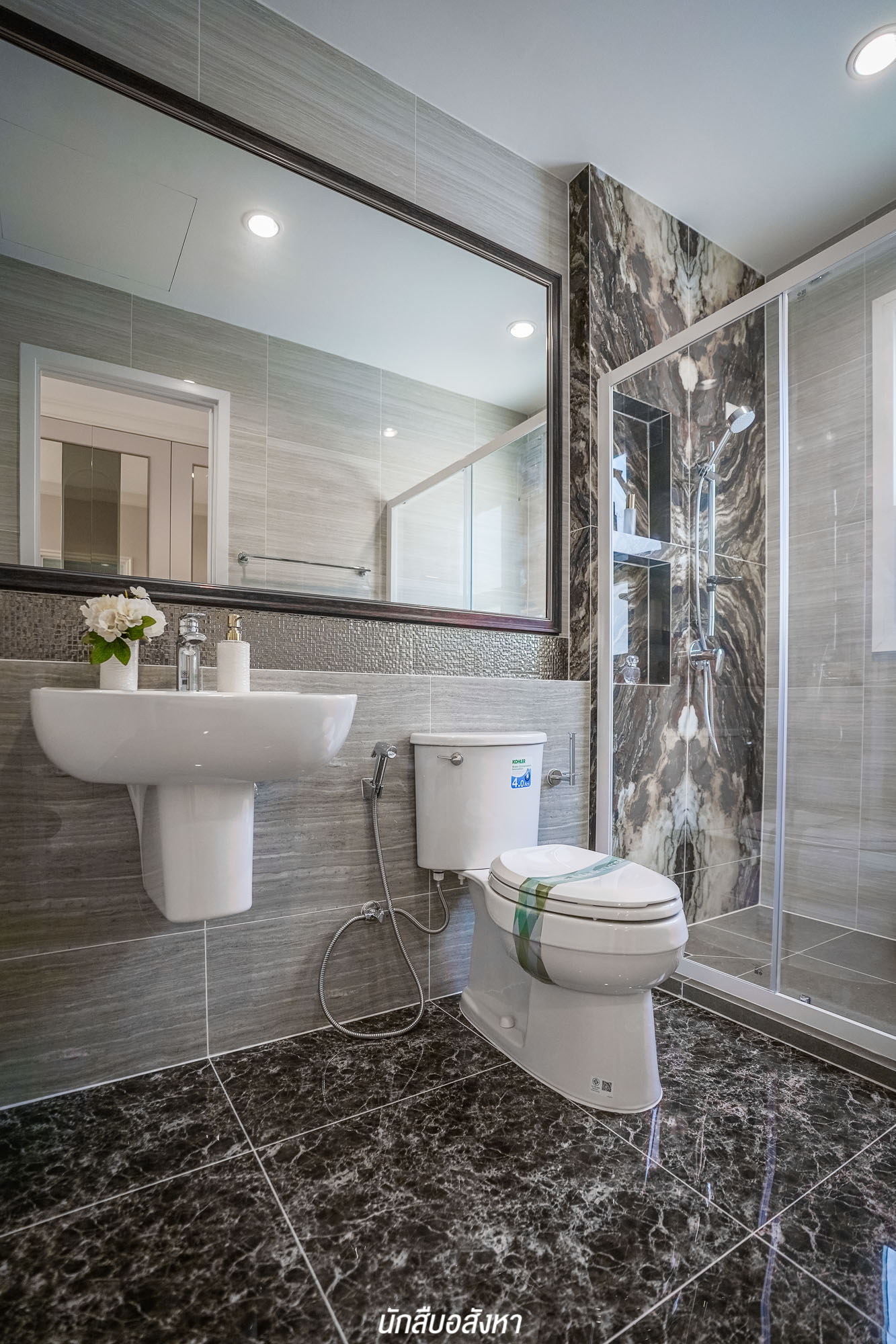 ถัดไปจะเป็นห้องนอนที่ 2 ห้องนี้จะมีขนาดเล็กกว่าห้อง Master เล็กน้อย แต่ก็ใหญ่พอให้สามารถวางเตียงขนาด 6 ฟุตได้สบาย ๆ และยังมีพื้นที่เหลือด้านข้าง สามารถวางเป็นโต๊ะข้างเตียง หรือโต๊ะทำงานได้ และมีห้องน้ำในตัวเช่นเดียวกัน