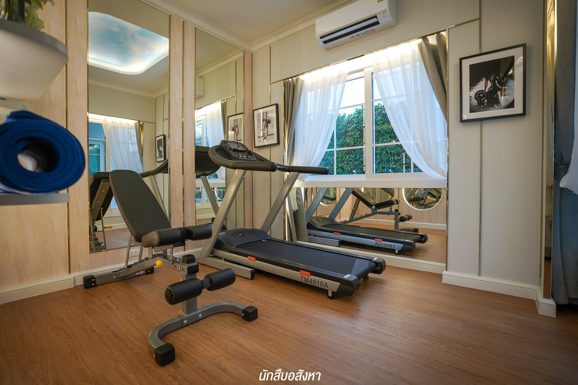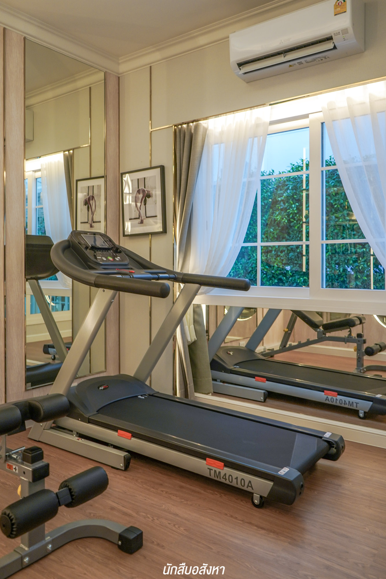 ห้องอเนกประสงค์ชั้นล่าง ห้องนี้จะอยู่ด้านข้างของสระว่ายน้ำ สำหรับบ้านตัวอย่างถูกจัดให้เป็นห้องสำหรับออกกำลังกาย ซึ่งถ้าจะทำตาม สามารถวางเครื่องออกกำลังกายได้ประมาณ 2 ตัว โดยที่ยังเหลือพื้นที่สำหรับทำเป็นม้านั่งราบให้ยกเวทได้อีกประมาณ 1 ตัว ซึ่งถ้าไม่ได้เป็นสายออกกำลังกายก็สามารถปรับเปลี่ยนให้กลายเป็นห้องนอนเพิ่มอีกหนึ่งห้อง หรือจะเป็นห้องทำงานด้านล่างก็ได้เช่นกันครับ