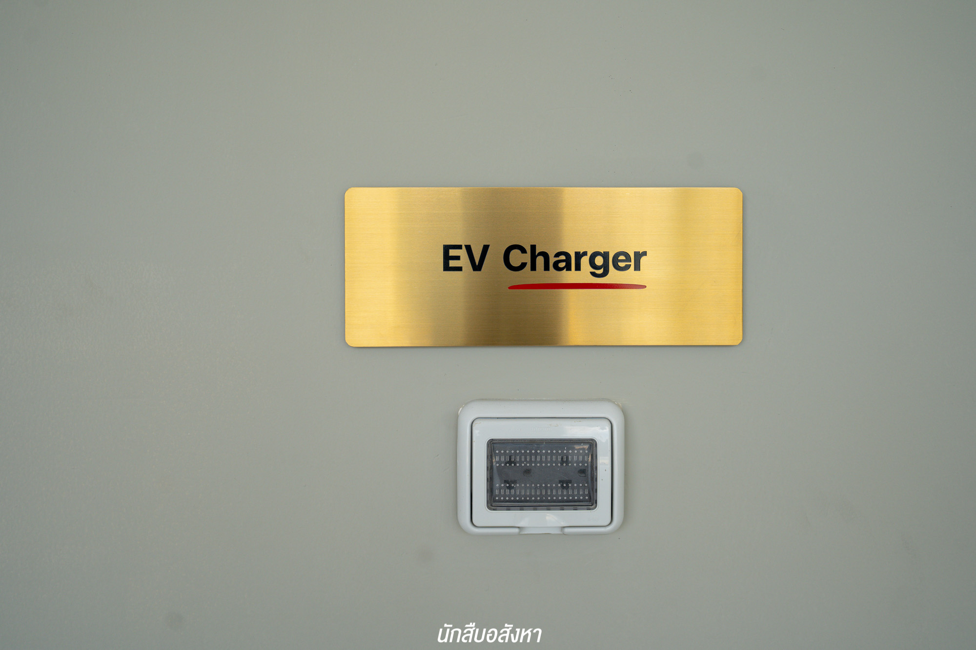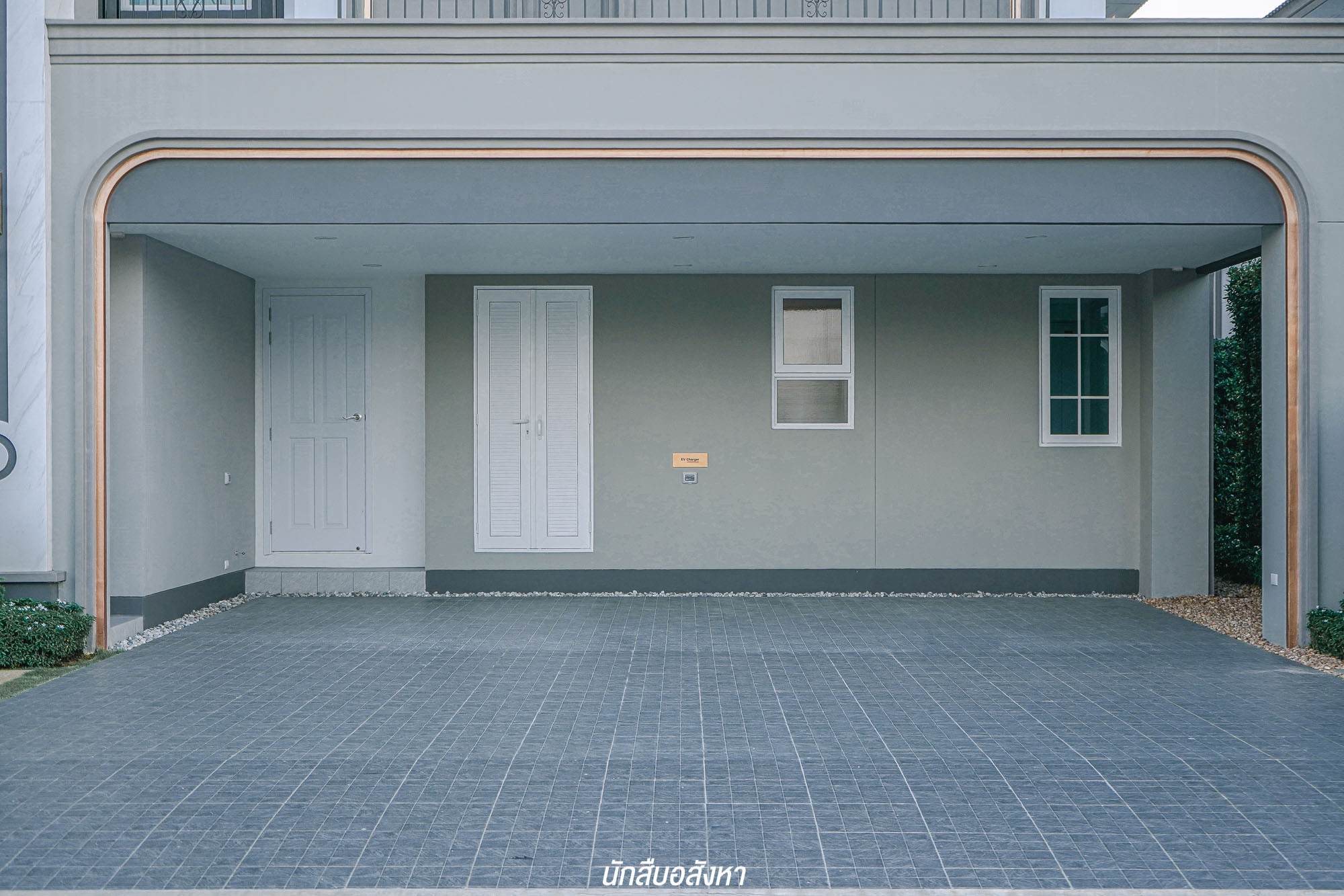 เมื่อเข้ามาบริเวณหน้าบ้าน พื้นที่ตรงนี้สามารถจอดรถได้ 3 คัน โดยจะเป็นที่จอดในร่ม อยู่ใต้ชายคาบ้านทั้ง 3 คัน ซึ่งทางโครงการได้ทำการต่อ Junction Box ไว้สำหรับ EV Charger ให้ด้วย เพื่ออนาคตใครสนใจใช้รถยนต์พลังงานไฟฟ้าครับ