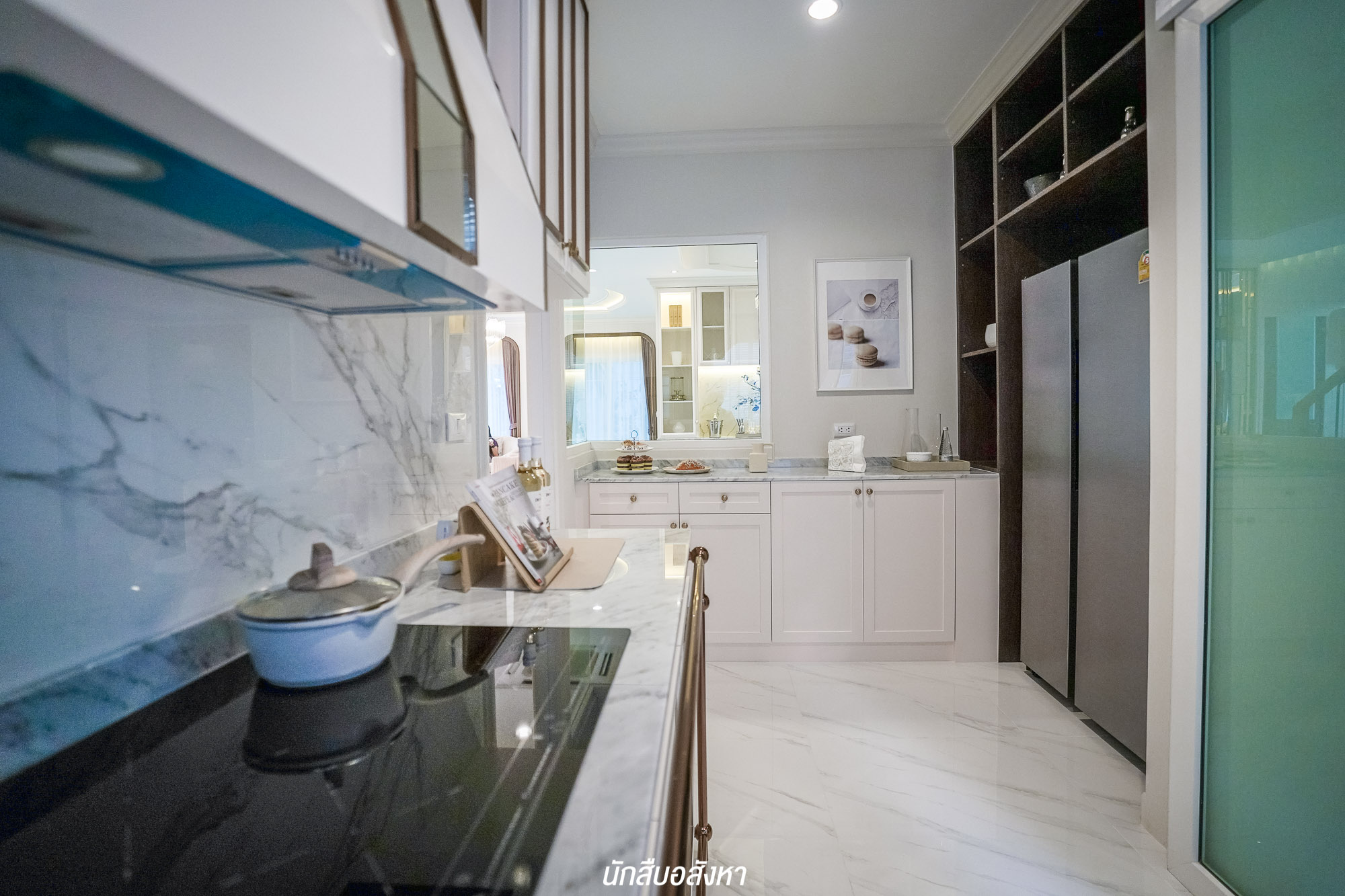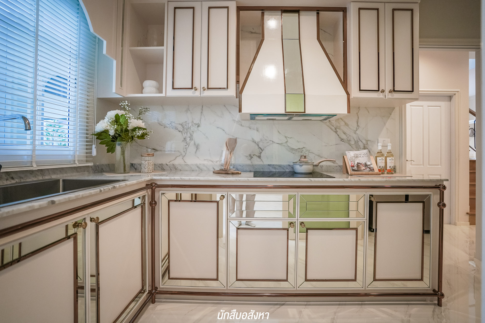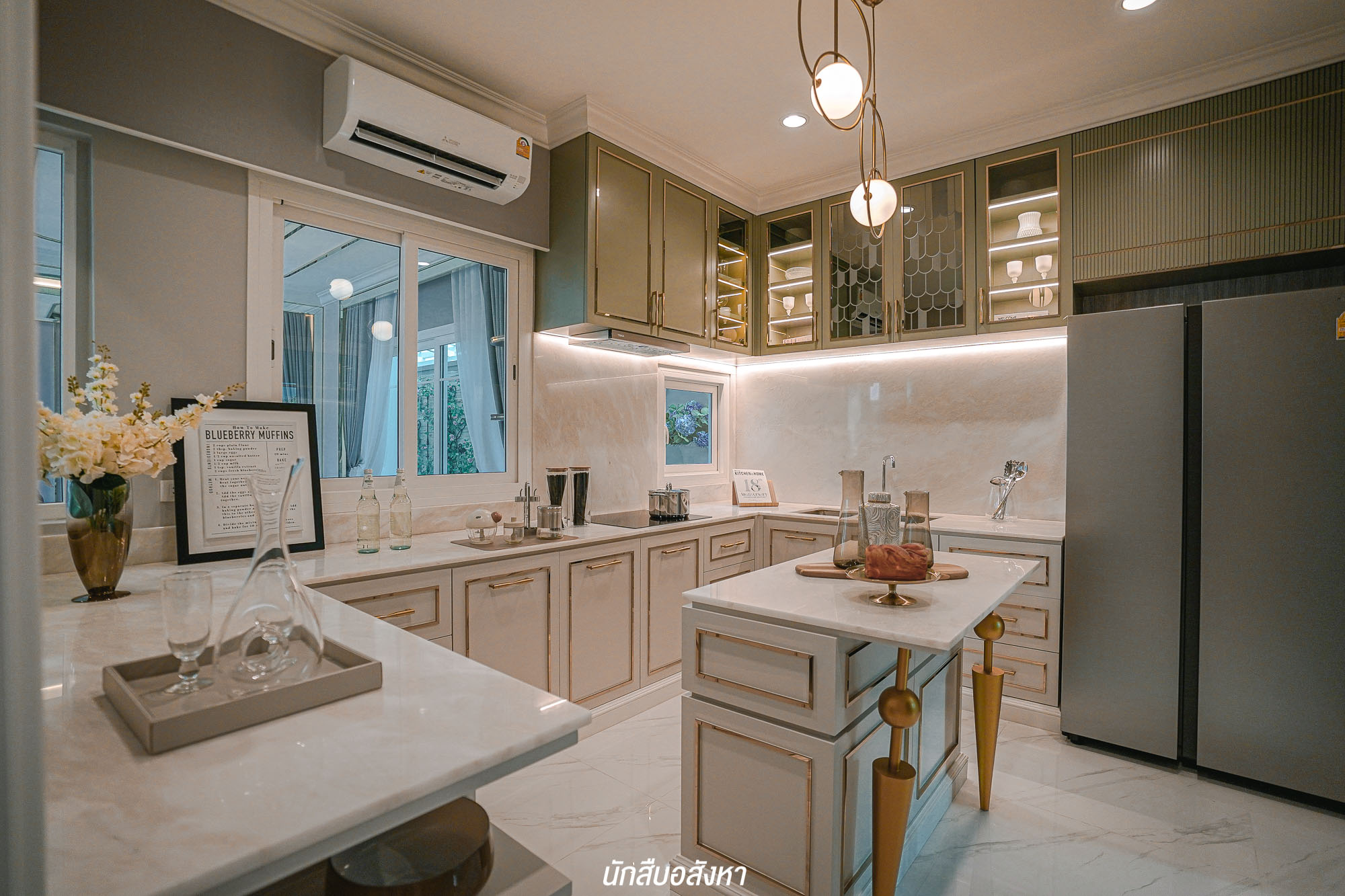 ห้องครัว จะเป็นรูปแบบครัวปิด ขนาดใหญ่ ให้พื้นที่มาค่อนข้างกว้าง ซึ่งห้องครัวก็จะได้เป็นครัวปิด See Thru Kitchen สามารถทำเคาน์เตอร์ครัวเป็นรูปตัว U