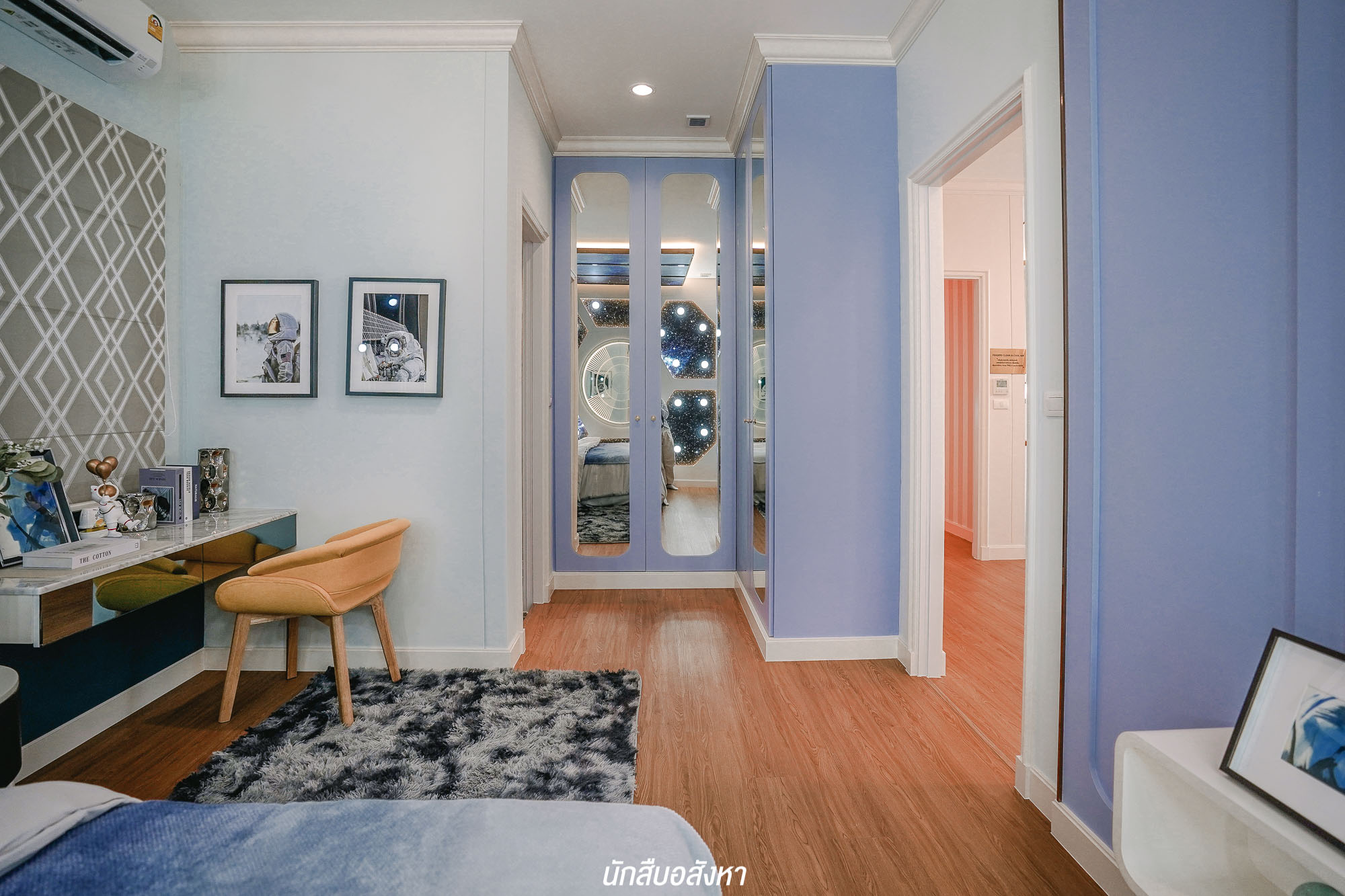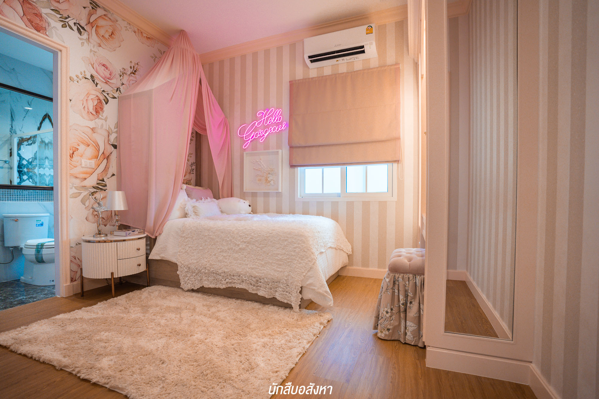 ส่วนห้องสุดท้ายของบ้านหลังนี้ จะเป็นห้องนอนที่ 3 ซึ่งขนาดของห้องนี้ ไม่ได้ต่างจากห้องนอนที่ 2 สักเท่าไหร่ สามารถวางเตียง 3.5 – 5 ฟุตได้พอดี และมีห้องน้ำในตัวเหมือนกันครับ