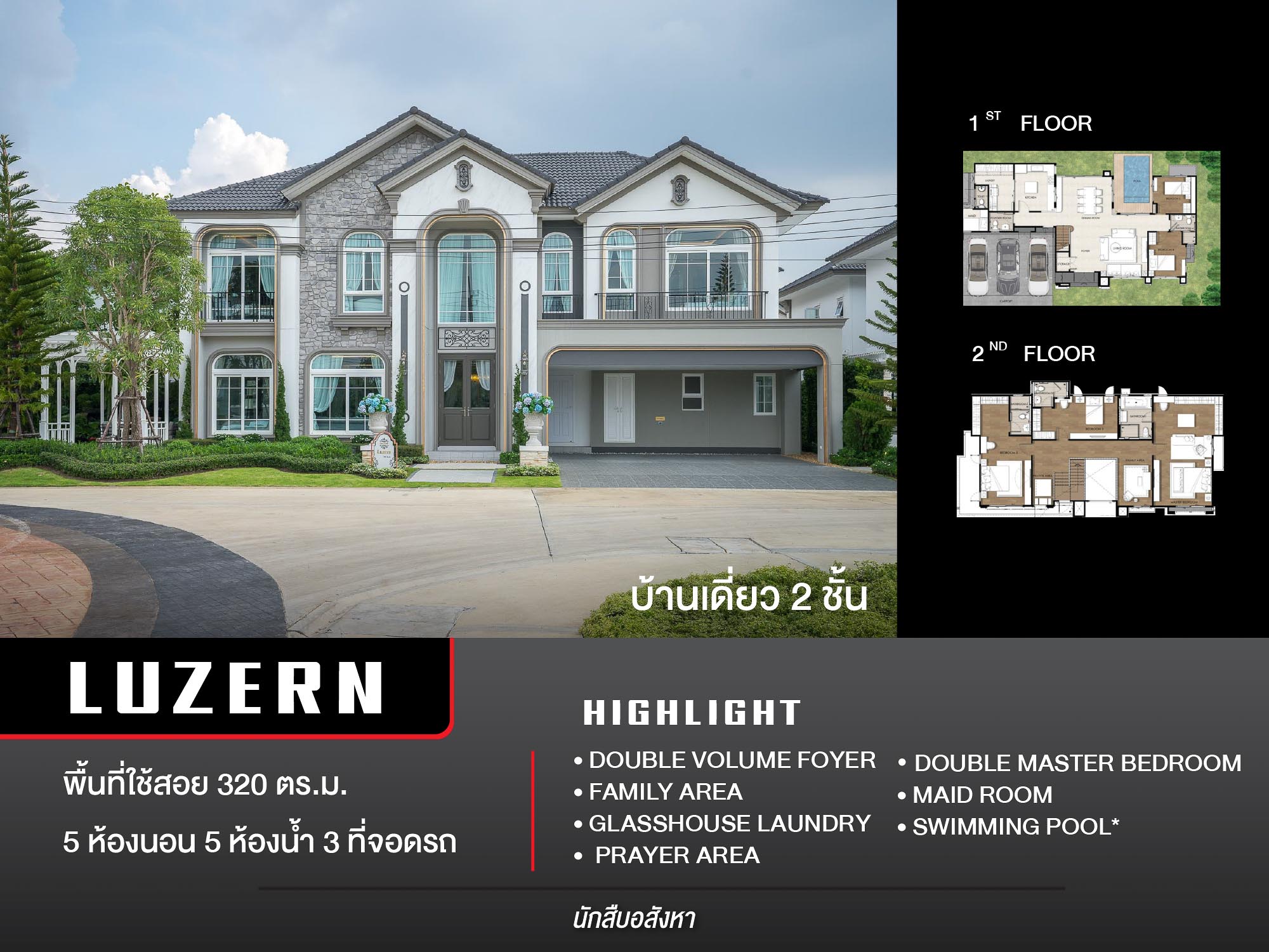∎ Luzern บ้านเดี่ยว 2 ชั้น พื้นที่ใช้สอย 320 ตร.ม. 5 ห้องนอน 5 ห้องน้ำ 3 ที่จอดรถ