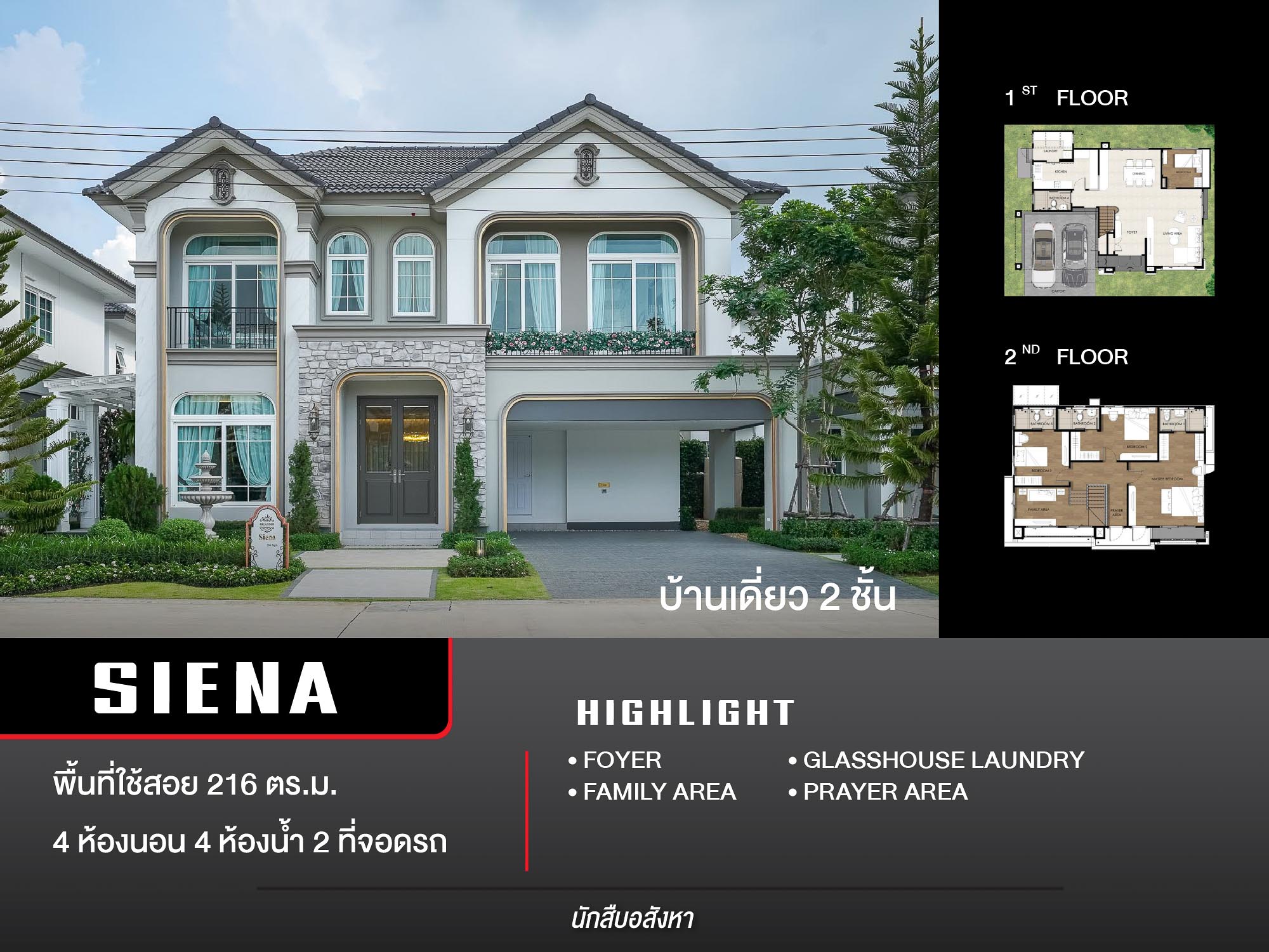 ∎ Siena บ้านเดี่ยว 2 ชั้น พื้นที่ใช้สอย 216 ตร.ม. 4 ห้องนอน 4 ห้องน้ำ 2 ที่จอดรถ