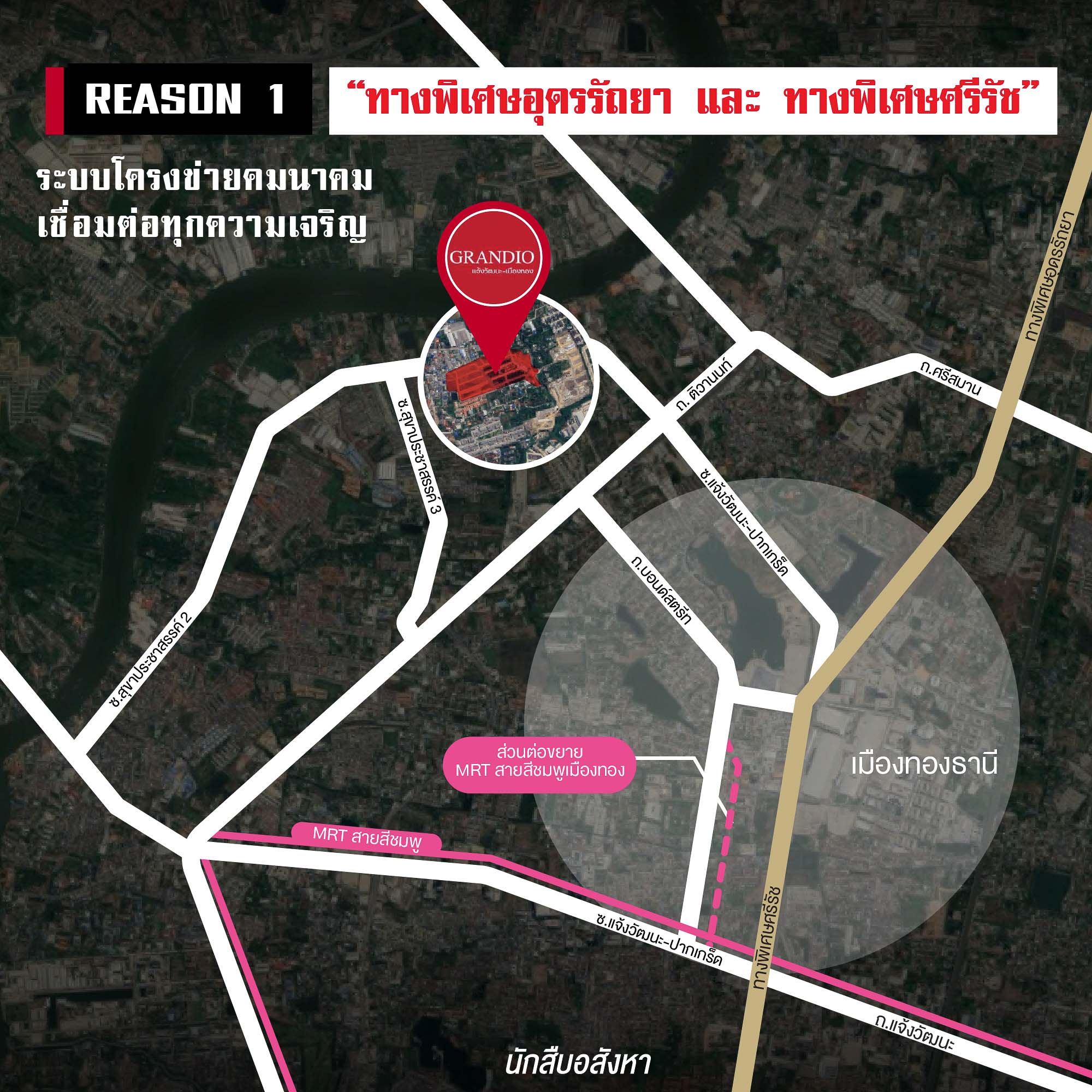 ส่วนโครงการ “Grandio แจ้งวัฒนะ – เมืองทอง” ตั้งอยู่บนถ.ติวานนท์ สามารถเข้าออกได้ถึง 2 เส้นทาง จากฝั่งถนนหลักคือ ถนนติวานนท์ และทางด้านหลัง ซ.สุขาประชาสรรค์ 2 ซึ่งก็ถือว่าสะดวกเช่นกันครับ