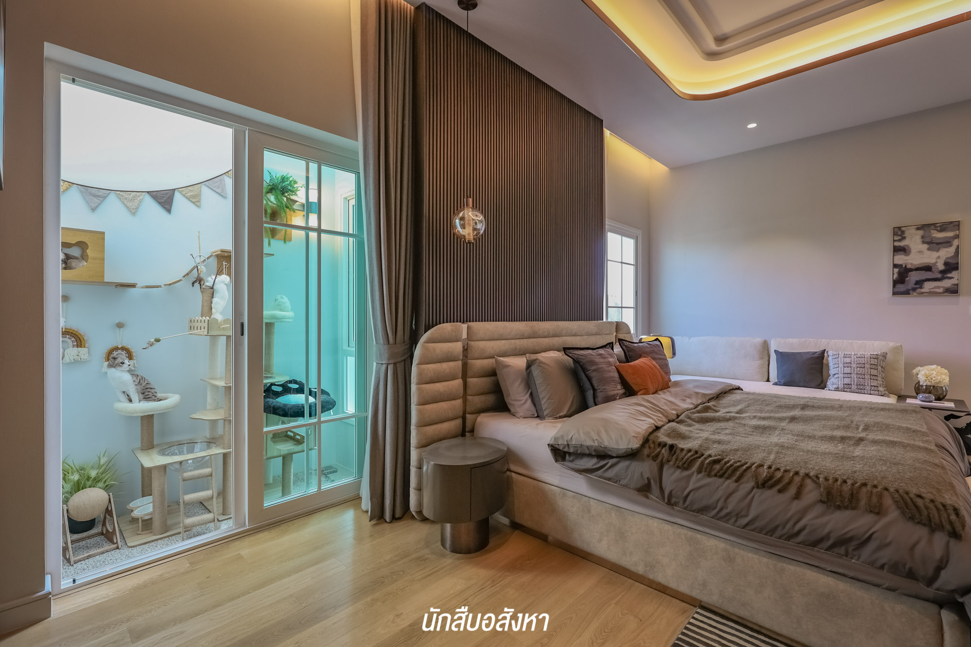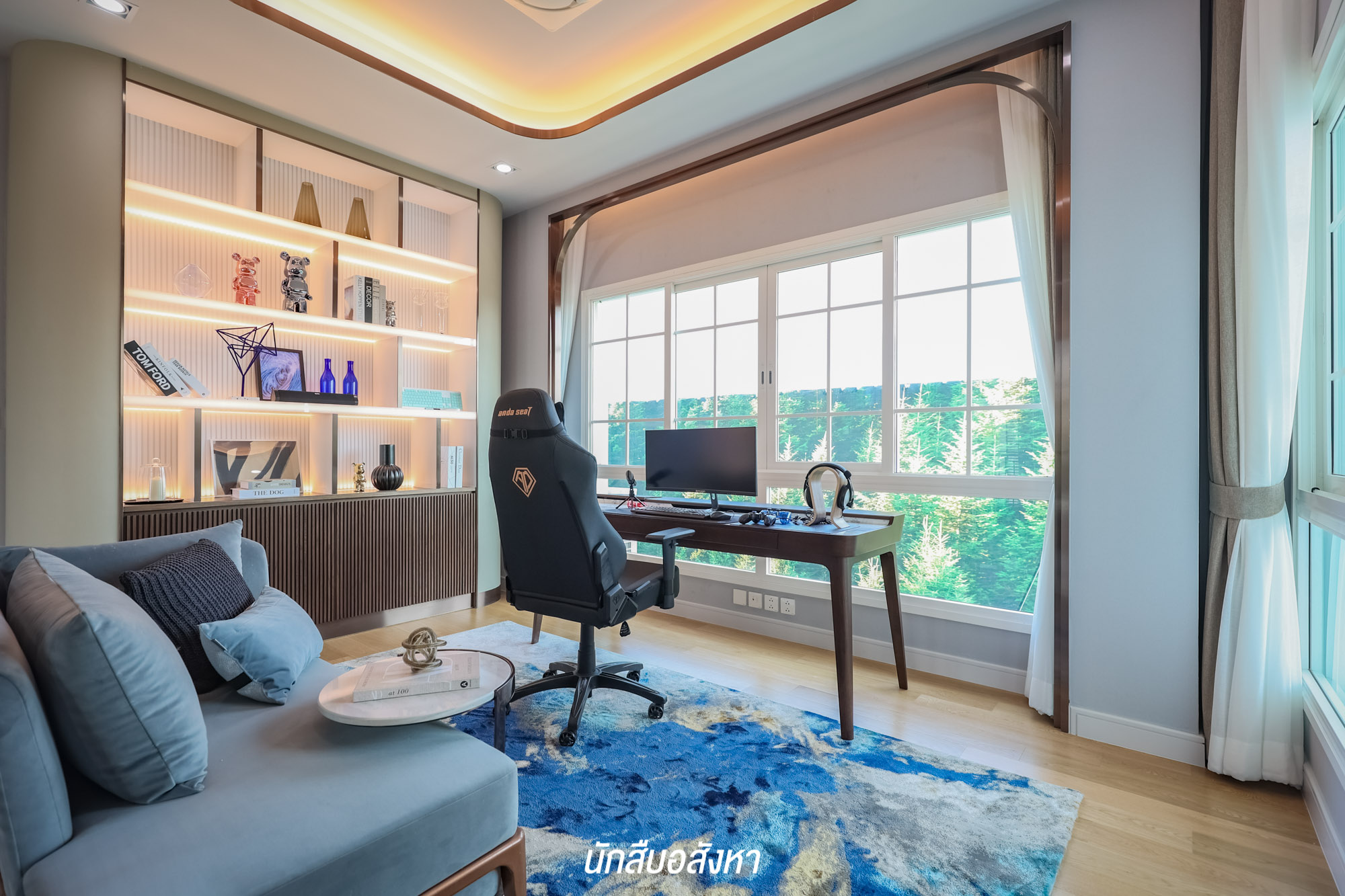 นอกจากนี้ภายในบ้านยังมีระบบสัญญาณกันขโมยแบบระบบ Magnetic ทั้งชั้น 1 และ 2 ควบคุมผ่าน Application และมีการติดตั้ง EV Charger รองรับการใช้งานรถยนต์ไฟฟ้า พร้อมติดตั้ง Silar Cell ช่วยประหยัดไฟ