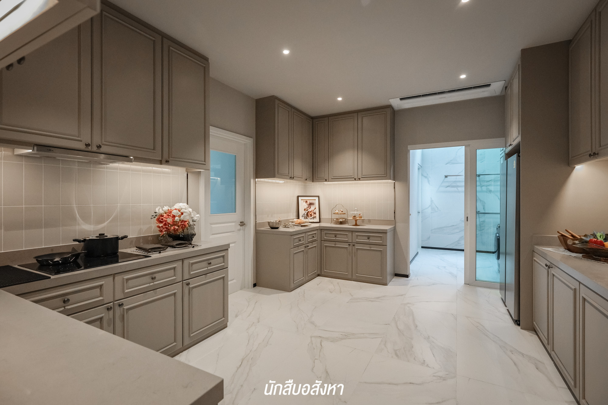 Dining & Pantry มีพื้นที่เชื่อมต่อ ออกแบบ Open Space สามารถดีไซน์พื้นที่รับประทานอาหารได้อย่างอิสระ และมีการวางพื้นที่ให้เชื่อมต่อกับครัวปิด ทำให้แม่บ้านทำงานสะดวกมากขึ้น