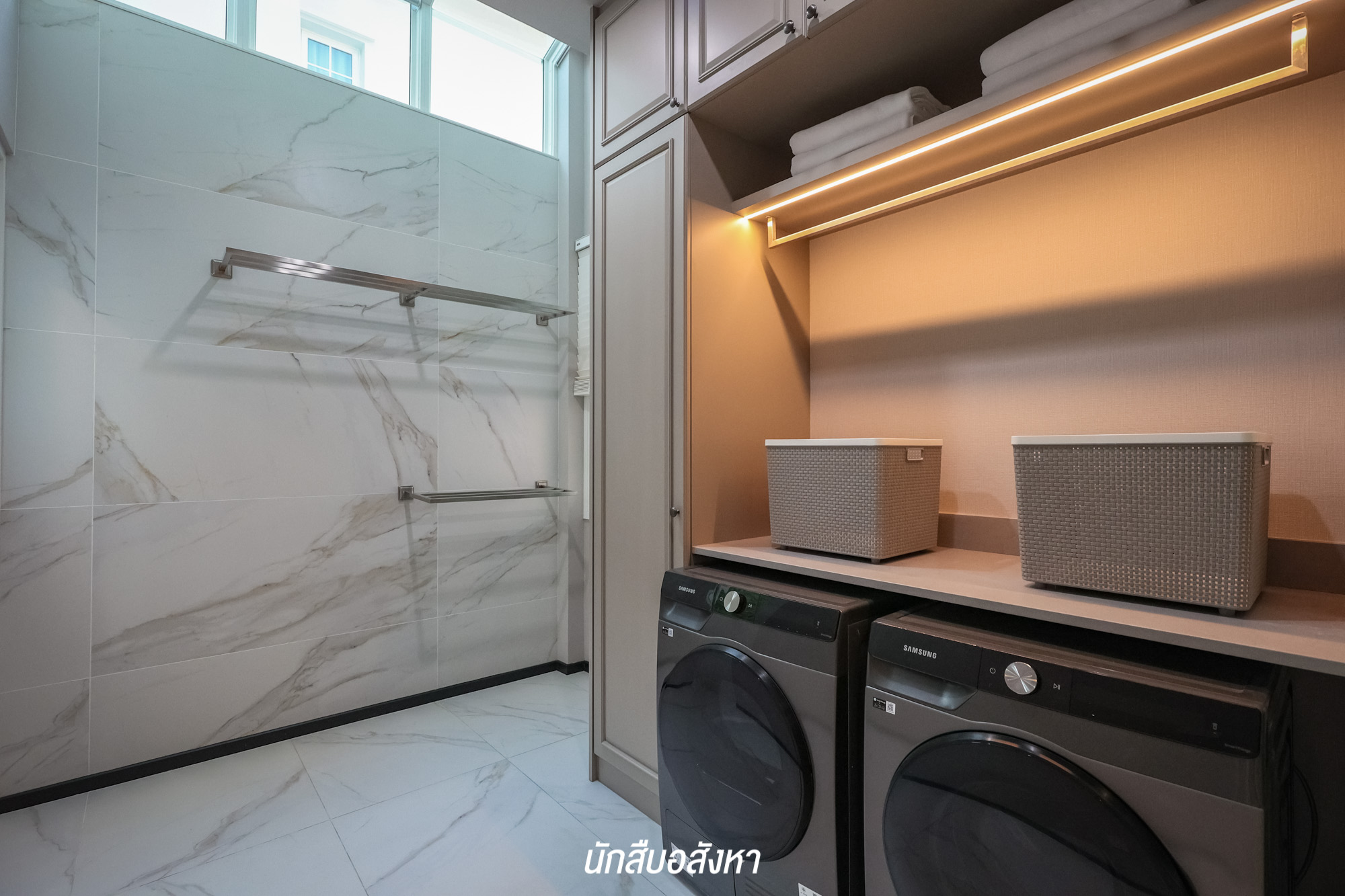 ห้องซักตากรีด เป็นฟังก์ชันเด่นของ เฟรเซอร์ส ก็ว่าได้ แบบบ้านในทุกโครงการระดับ MAIN CLASS ขึ้นไปของ เฟรเซอร์ส พร็อพเพอร์ตี้ จะมีฟังก์นี้อยู่ สำหรับจุดเด่นของหลังนี้คือพื้นที่ที่กว้างกว่า และเพดานสูงโปร่ง อยู่เชื่อมต่อกับห้องแม่บ้าน ทำให้แม่บ้านทำงานง่าย เชื่อมต่อกับห้องพักได้เลย