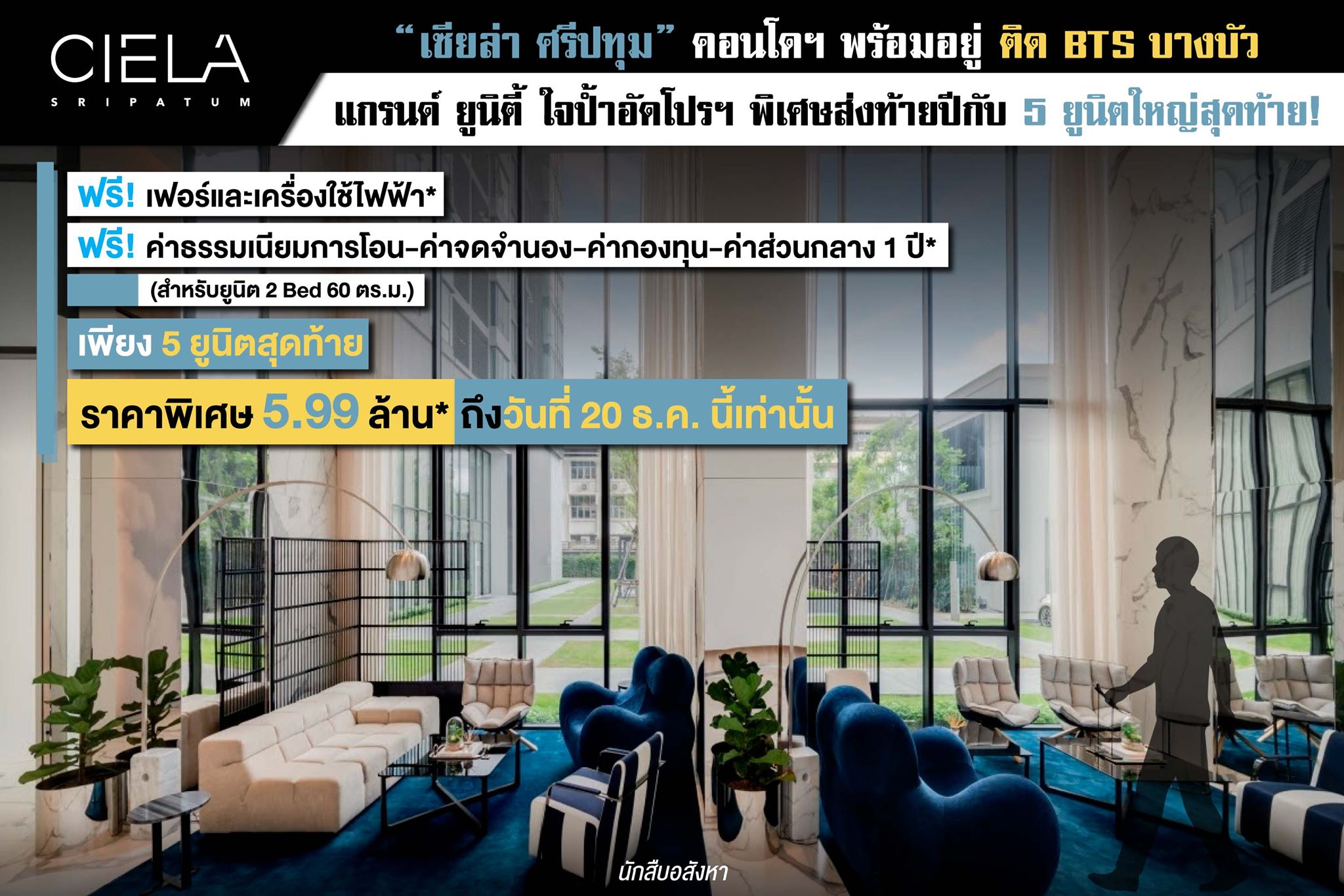 เพียง 5 ยูนิตสุดท้าย ราคาพิเศษ 5.99 ล้าน* ถึงวันที่ 20 ธ.ค. นี้เท่านั้น