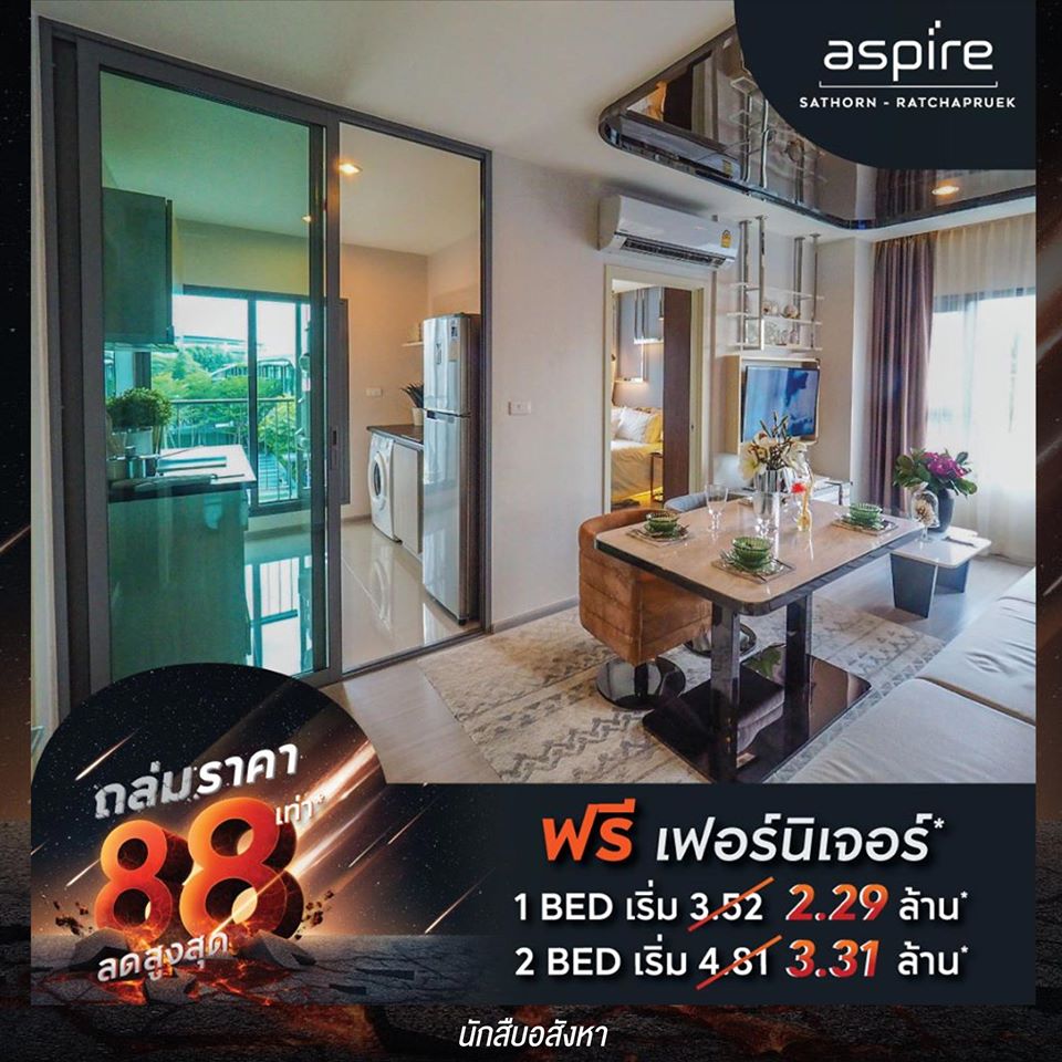 ◼️ ASPIRE สาทร-ราชพฤกษ์ l ฟรีโอน + เฟอร์นิเจอร์ 1 ห้องนอน เริ่ม 2.29 ล้าน* และ 2 ห้องนอน เริ่ม 3.31 ล้าน*