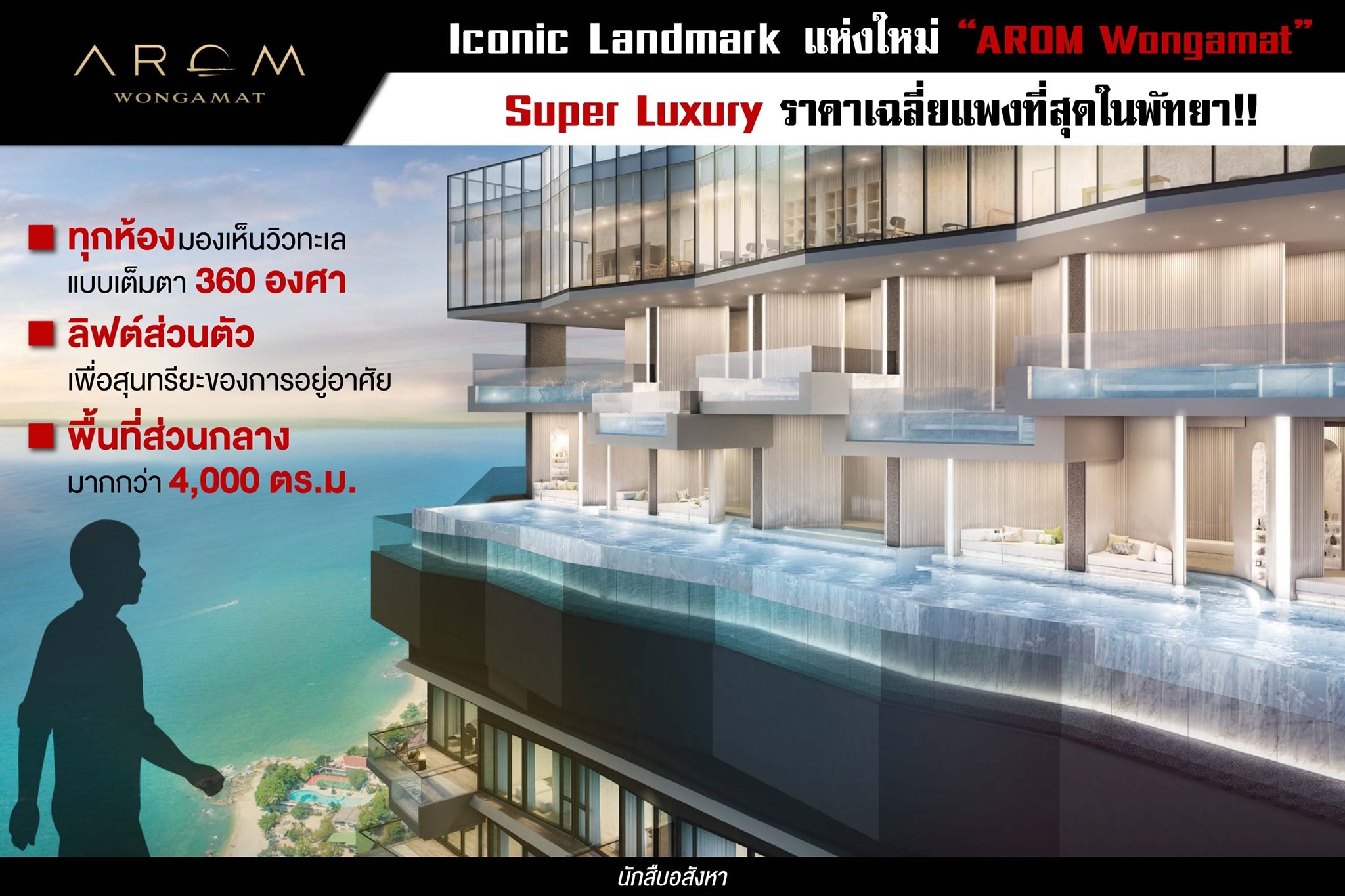 งานนี้เรียกได้ว่าน่าจับตามองมากครับสำหรับการเปิดตัวโครงการใหม่อย่าง “AROM Wongamat” ที่เรียกได้ว่าเป็น Super Luxury ระดับ Limited Rare Item ที่ราคาเฉลี่ยแพงที่สุดในพัทยาก็ว่าได้ครับ เพราะตัวโครงการตั้งอยู่บนทำเลที่เรียกได้ว่าเป็น Rare Item ผืนสุดท้ายบนโค้งหาดวงศ์อมาตย์ พัทยา ซึ่งเป็นที่ดินติดชายหาดโซนที่มีราคาแพงและหายากที่สุด โดยหาดวงศ์อมาตย์จัดว่าเป็นหาดที่มีราคาที่ดินแพงที่สุดในพัทยาและมีการปรับราคาขึ้นทุกปี