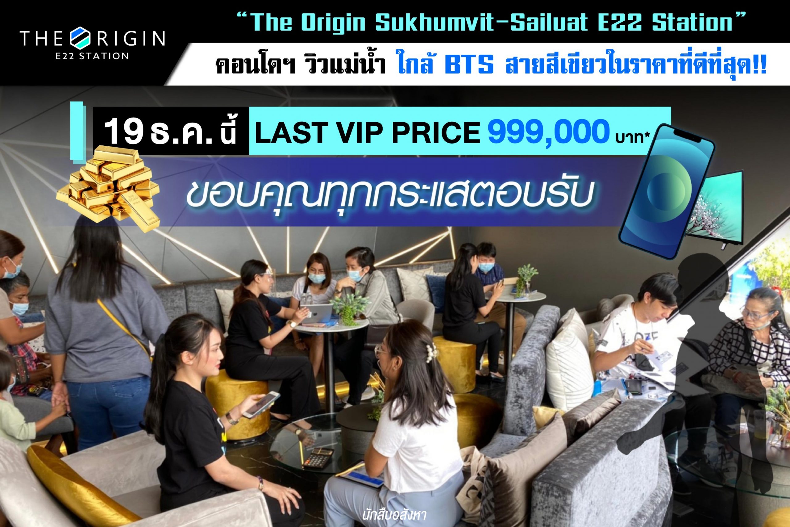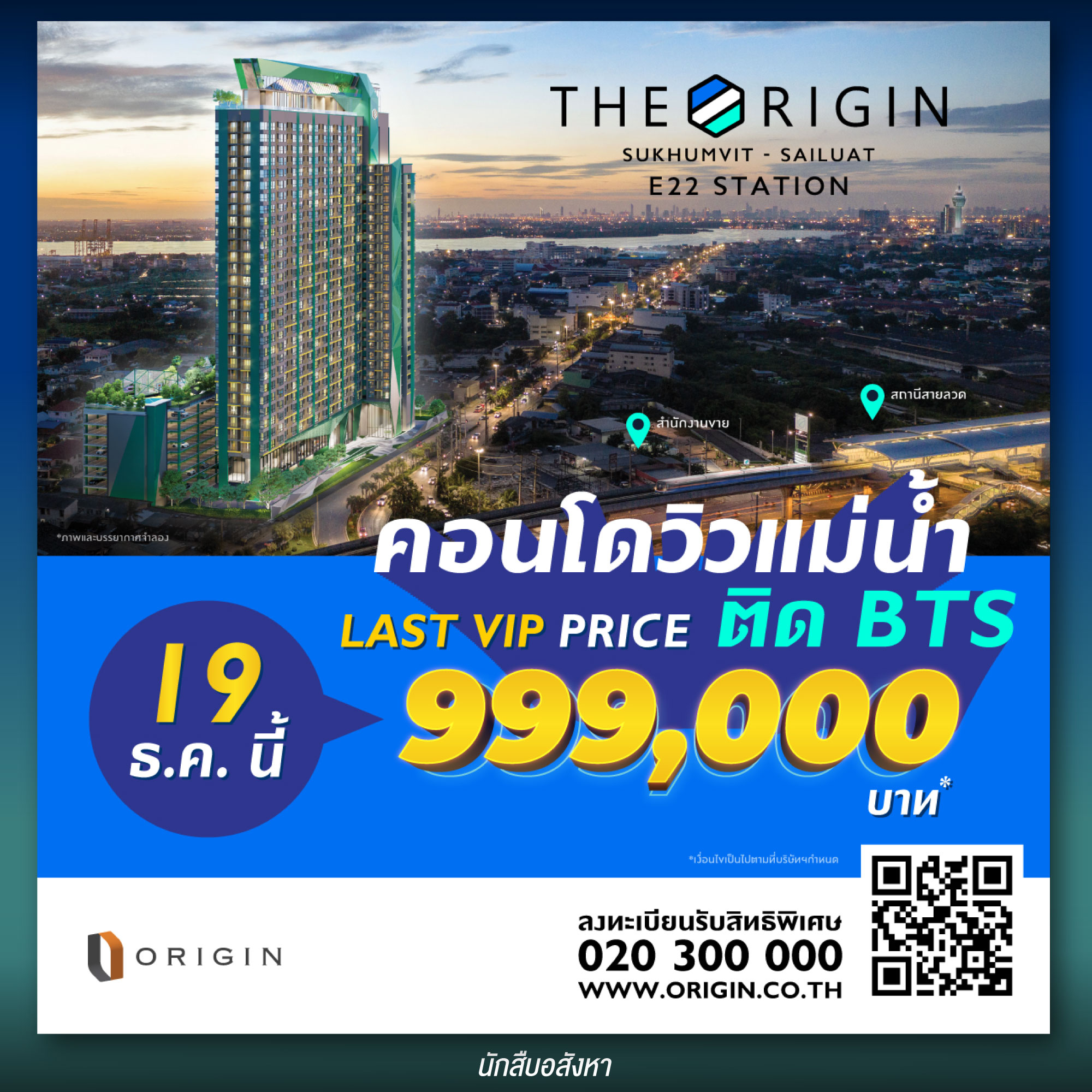 คลิก ก่อนหน้านี้หลายคนน่าจะเกิดคำถามว่า ทำไม? “The Origin Sukhumvit Sailuat E22 Station” ถึงเป็นโครงการที่ชาวสมุทรปราการต้องมี และทำไม? โครงการนี้ถึงเป็นโครงการที่น่าจับตามอง ซึ่งนอกจากเรื่องของศักยภาพทำเลที่ตอบโจทย์คนที่กำลังมองหา Passive Income ในอนาคตแล้ว ยังมีในเรื่องของฟังก์ชันภายในโครงการ ส่วนกลางที่จัดเต็ม ได้เทควิวสวยที่สุดทั้งแม่น้ำ ทะเล และภูเขาได้แบบจัดเต็ม และที่สำคัญก็คือราคาที่เรียกได้ว่าคุ้มค่าที่สุด ซึ่งการเปิดจองเมื่อรอบที่ผ่านมานั้น เรียกได้ว่ากระแสตอบรับดีจนทาง Origin เตรียม LAST VIP PRICE ในราคาที่คุ้มสุดๆ 999,000 บาท* ในวันที่ 19 ธ.ค. นี้