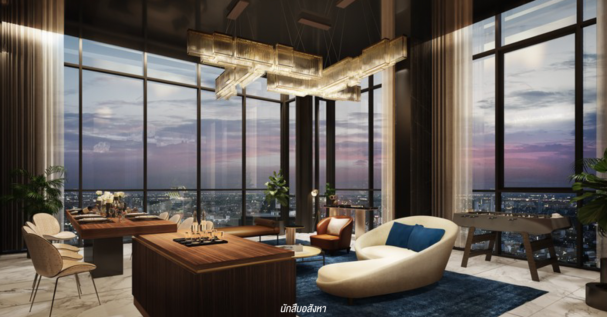 Party Room : และในส่วนของห้องนี้จะเป็นพื้นที่ไว้ให้ลูกบ้านที่ชอบปาร์ตี้ไว้สังสรรค์กับเพื่อนๆ ครับ รอบห้องจะเป็นกระจกทรงสูงแบบเทควิวเมืองได้เช่นกัน และมีมุมนั่งแต่ละมุมรองรับหลายที่เลยครับ