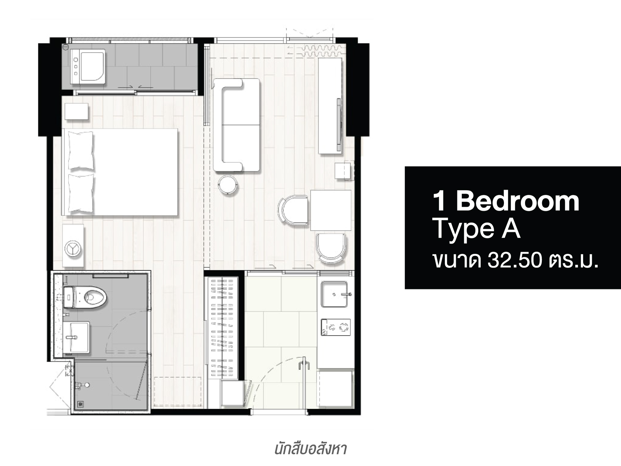 1 Bedroom Type A ขนาด 32.50 ตร.ม.