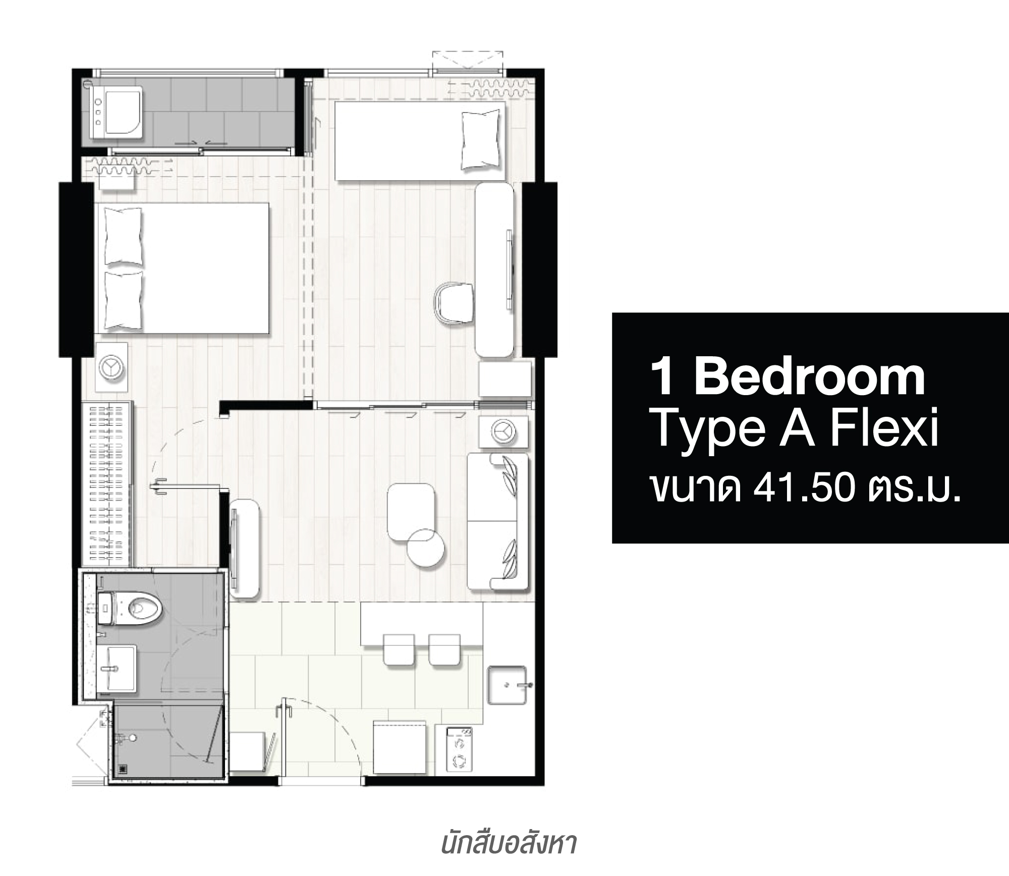 ◼️ 1 Bedroom Flexi Type A ขนาด 41.50 ตร.ม.