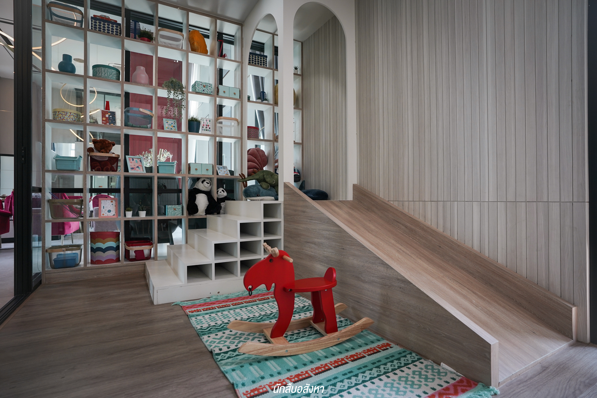 อีกฝั่งจะเป็น Kid’s Room ที่ตกแต่งด้วยโทนสีสดใส พร้อมอุปกรณ์เรียนรู้สำหรับเด็กๆ ครับ