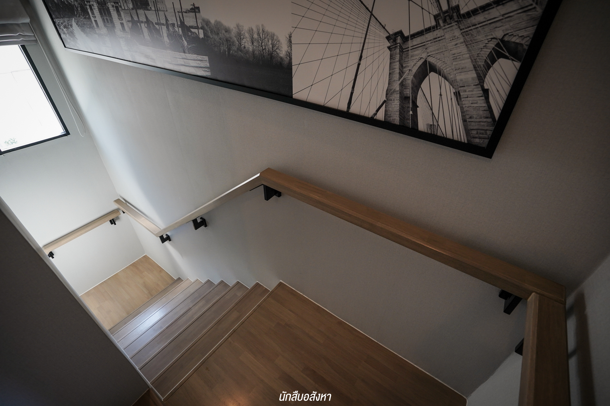 ขึ้นมายังบริเวณชั้น 2 ของบ้าน โดยบันไดเป็นโครงสร้างคอนกรีตเสริมเหล็ก แข็งแรง ทนทาน ลูกนอนบันไดเซาะร่องจมูกบันได ช่วยลดการเกิดอุบัติเหตุได้ครับ และบริเวณโถงบันได ยังมีช่องแสง เพิ่มความสว่างอีกด้วครับ
