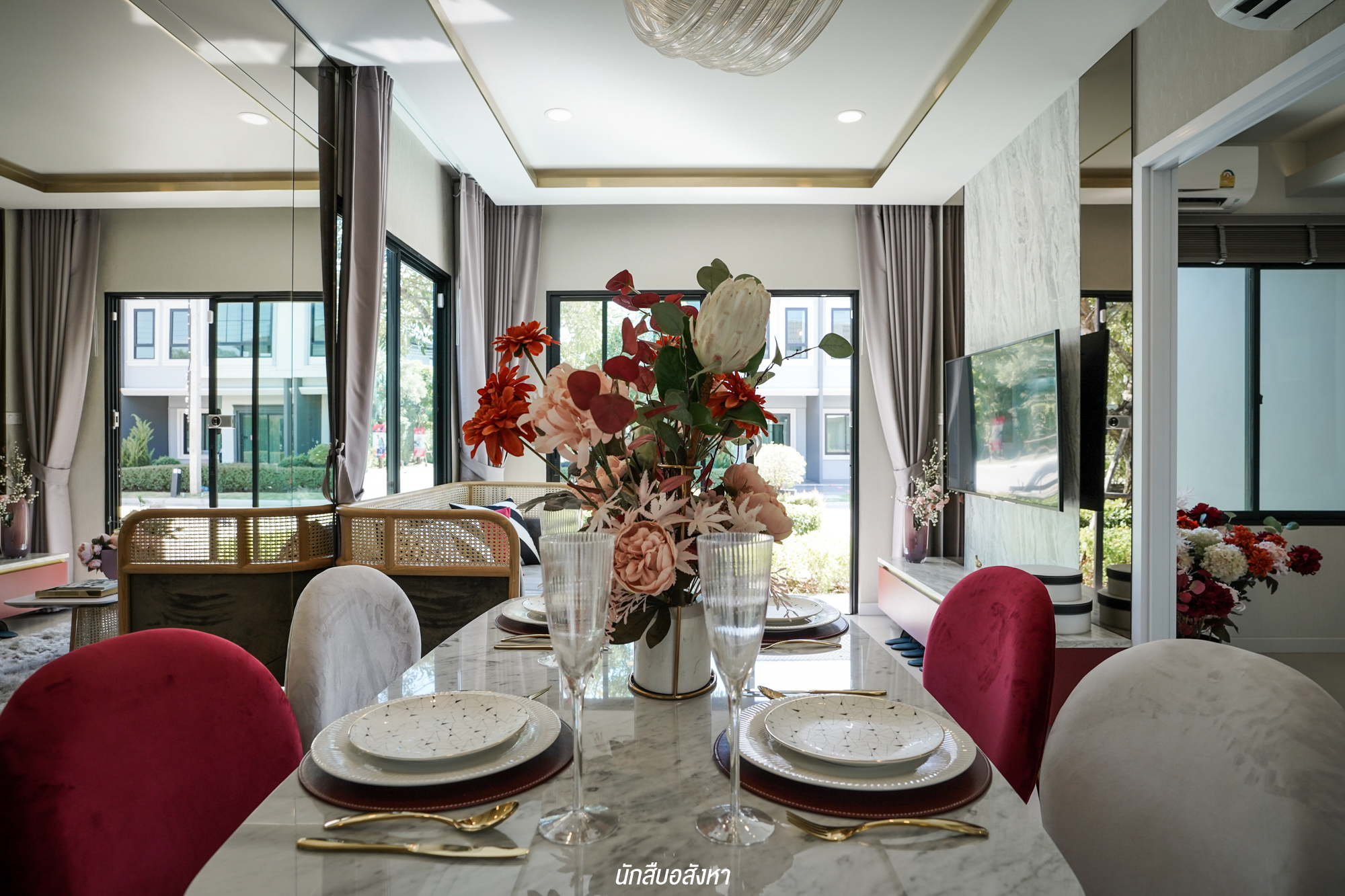 เข้ามาภายในบ้านพบกับ Common Arae โดยจัดสรรพื้นที่เป็น Living Area และ Dining Area พร้อมเพดานสูง 2.6 เมตร