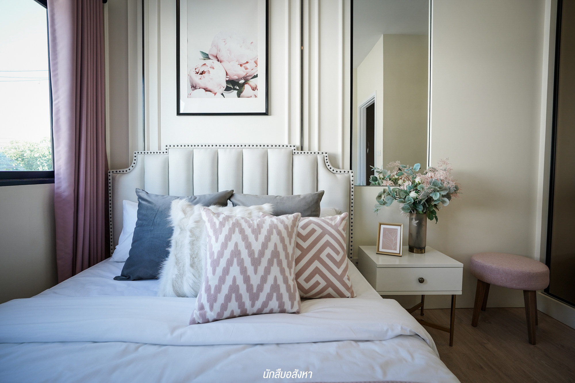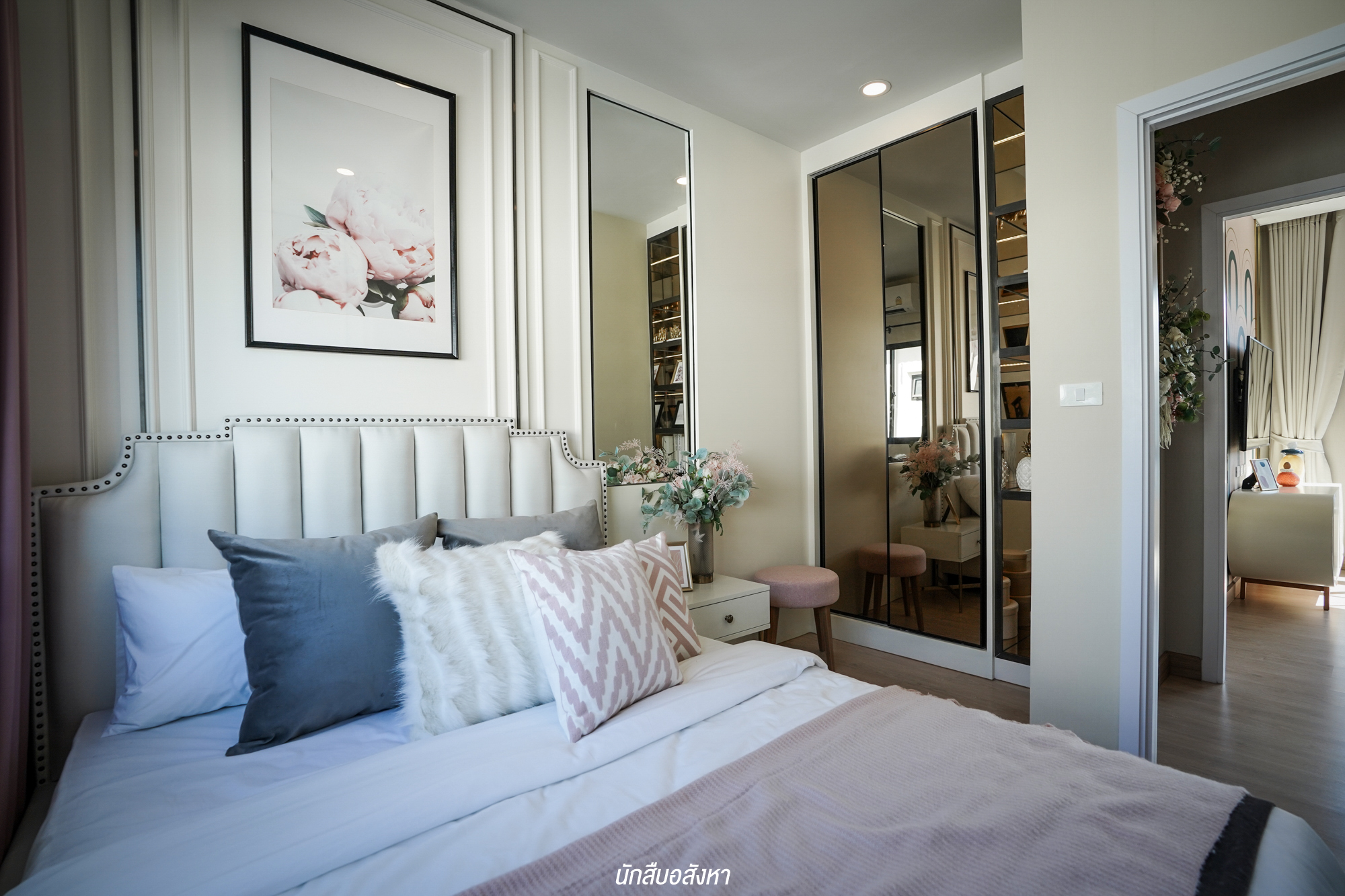 Master Bedroom พร้อมห้องน้ำในตัว โดยภายในห้องนอนกว้าง รองรับเตียงนอนไซส์ใหญ่ 5 ฟุต และเหลือพื้นที่สำหรับวางเฟอร์นิเจอร์ ซึ่งห้องนี้ Floor to Ceiling 2.9 เมตร พร้อมกระจกบานใหญ่เปิดรับบรรยากาศภายนอกได้เต็มที่ และเพิ่มความโปร่ง โล่ง สบาย อีกด้วยครับ