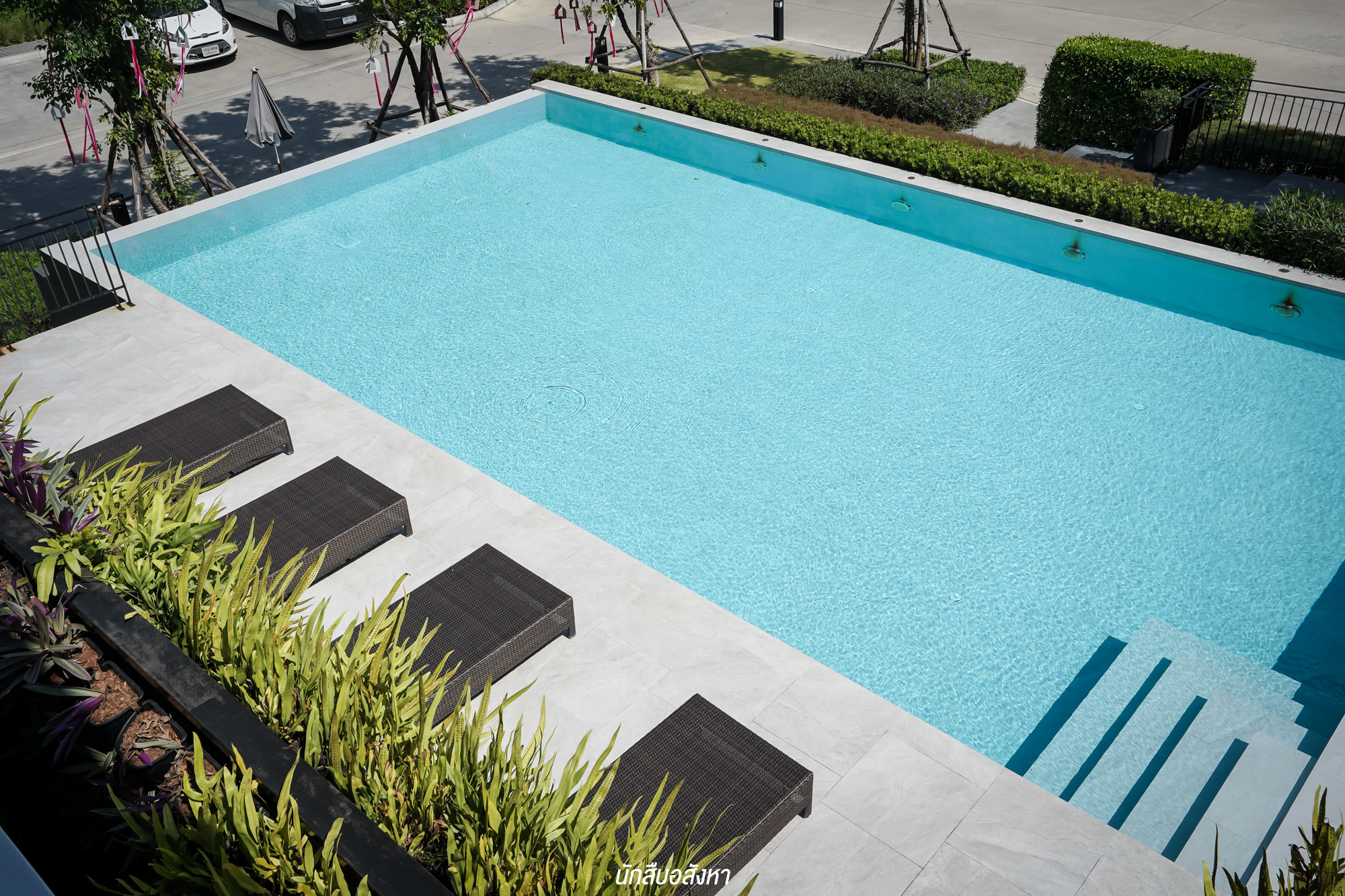 สระว่ายน้ำระบบเกลือ Lap Pool ความยาวได้มาตรฐาน รอบๆ สระ ตกแต่งด้วยไม้พันธุ์ใหญ่ และ Vertical Garden เพิ่มความร่มรื่น อีกทั้งบริเวณริมสระ มี Sunbed สำหรับการนั่งพักผ่อน