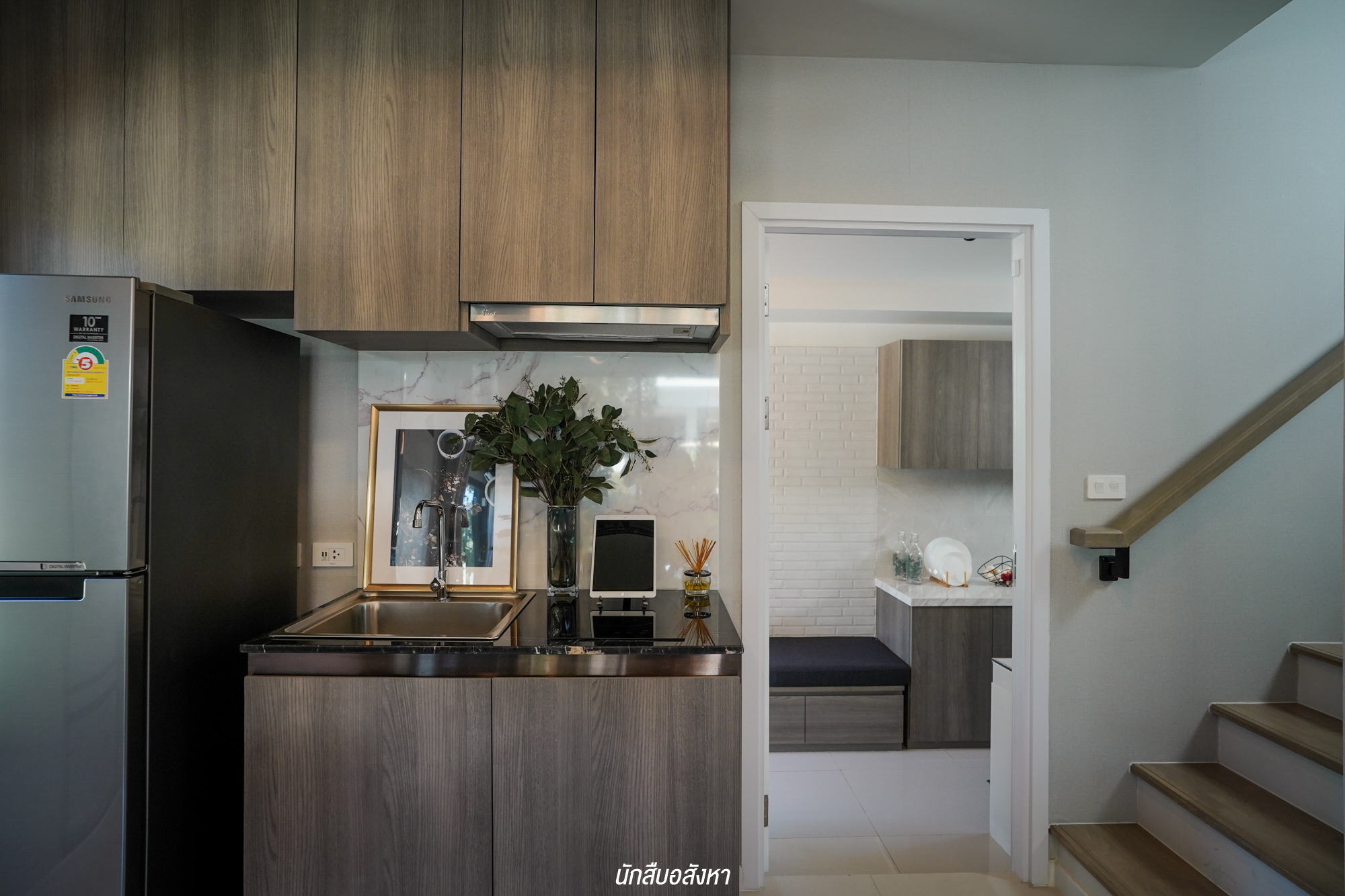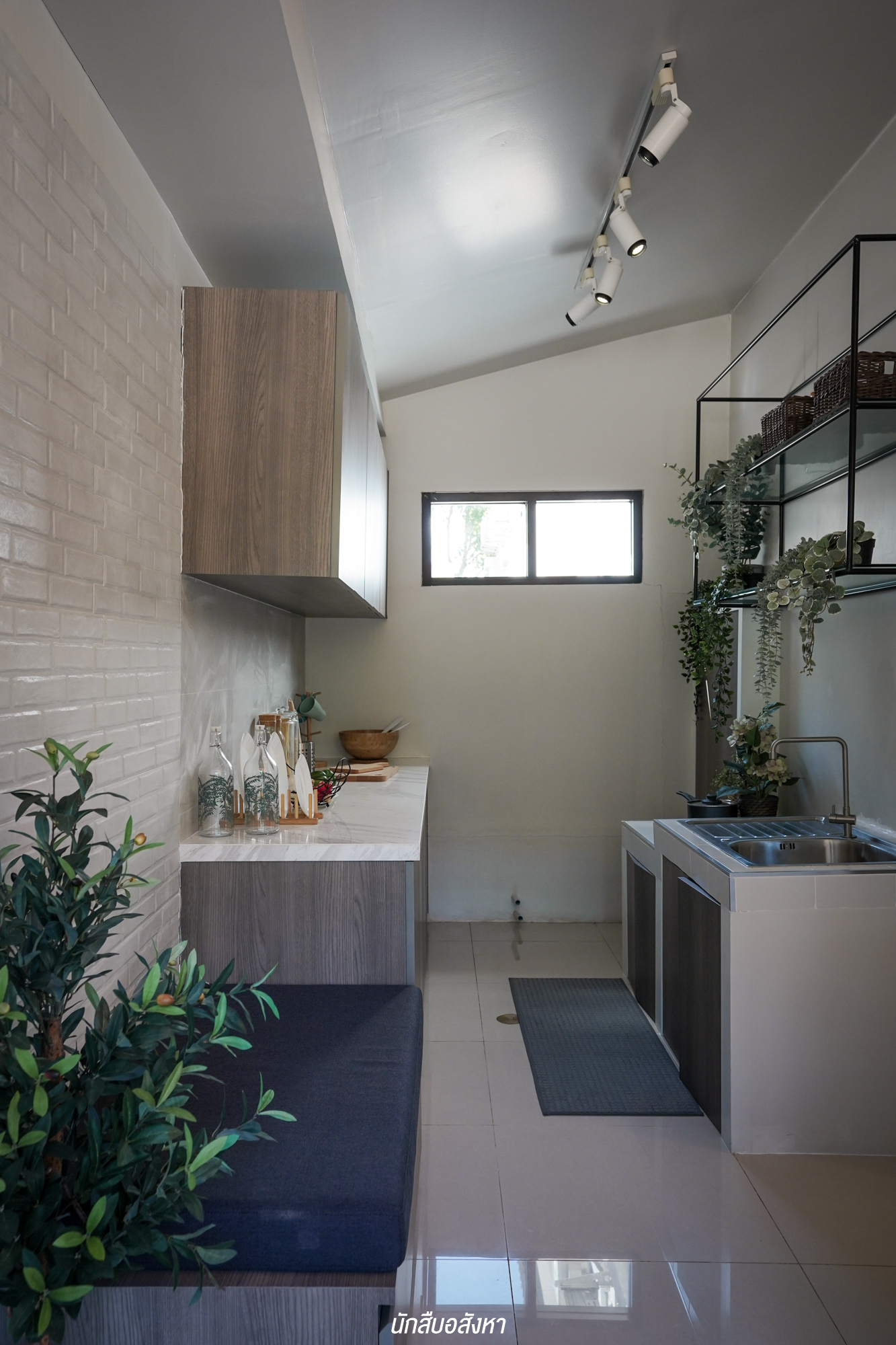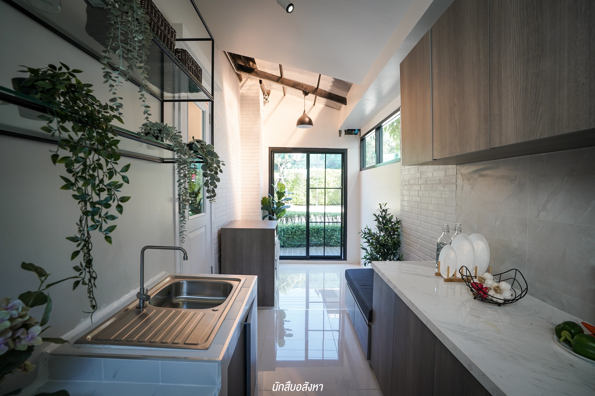 บริเวณหลังบ้าน โครงการจะลงเสาเข็มไว้ให้ พร้อมก่อเคาน์เตอร์ปูน และซิงก์ล้างจานมาให้ สามารถต่อเติมเป็นห้องครัว เหมาะสำหรับผู้ทีชื่นชอบการทำอาหาร โดยแยกอออกมาอย่างเป็นสัดส่วน สามารถผัด แกง ทอด ได้อย่างเต็มที่