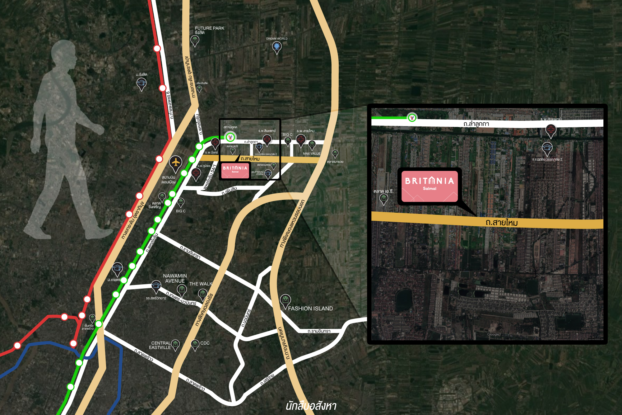 โครงการ “บริทาเนีย สายไหม-คูคต สเตชั่น” ตั้งอยู่ตั้งอยู่ที่ถนนสายไหม การเดินทางสะดวกสบาย เชื่อมต่อถนนสายไหม ลำลูกกา พหลโยธิน ซึ่งศักยภาพของการเลือกทำเลตรงนี้ถือว่าน่าสนใจเลยทีเดียวครับ ไม่ว่าจะเป็นการเดินทางที่สะดวกสบาย เข้า-ออก เมืองได้ง่าย และแวดล้อมด้วยสิ่งอำนวยความสะดวก ไม่ว่าจะเป็น…