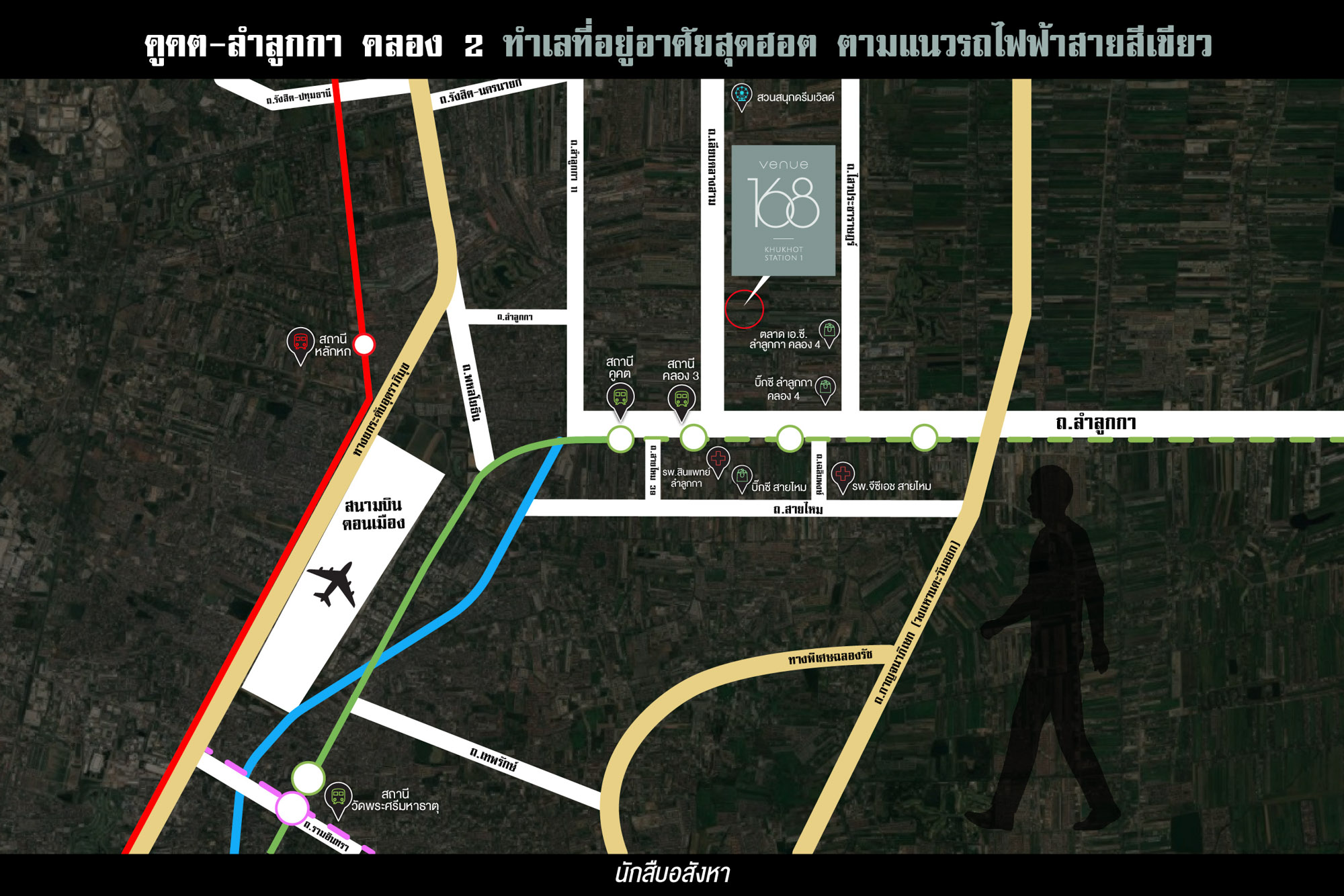 1.ทำเล : ต้องบอกเลยว่าโครงการภายใต้แบรนด์ Venue168 ที่เปิดตัวมาในปี 2565 นี้ ล้วนเป็นบ้านที่ตั้งอยู่บนทำเลเด็ดๆ ซึ่งที่นี่ก็เป็นอีกที่หนึ่งโครงการที่อยู่ในทำเลศักยภาพ ใกล้รถไฟฟ้าสายสีเขียว ในอนาคตเมื่อรถไฟฟ้าสายสีเขียวมีการขยายจากสถานีคูคต มาถึงสถานีวงแหวนรอบนอกตะวันออก ก็จะทำให้โครงการเชื่อมต่อรถไฟฟ้าได้เร็วขึ้นอีก