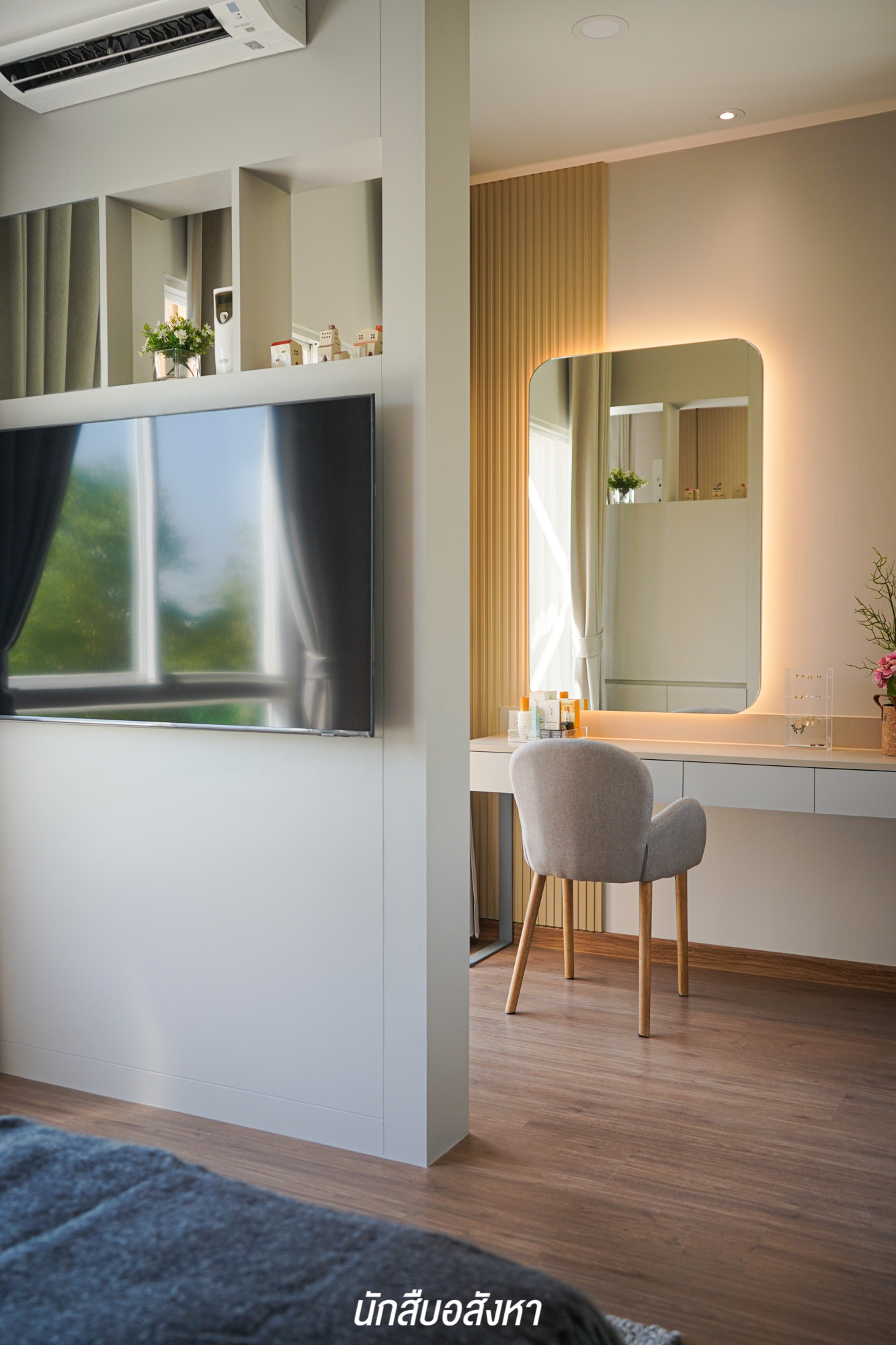 ส่วนปลายกั้นเป็น Walk in Closet ก็ลงตัว ซึ่งจะกั้นโซนแบบบ้านตัวอย่างหรือไม่ก็ได้เพราะว่าทางโครงการได้ดีไซน์ห้องนี้เป็นห้องโล่งๆที่สามารถจะปรับเปลี่ยนฟังก์ชันหรือสไตล์การแต่งห้องของผู้อยู่อาศัย