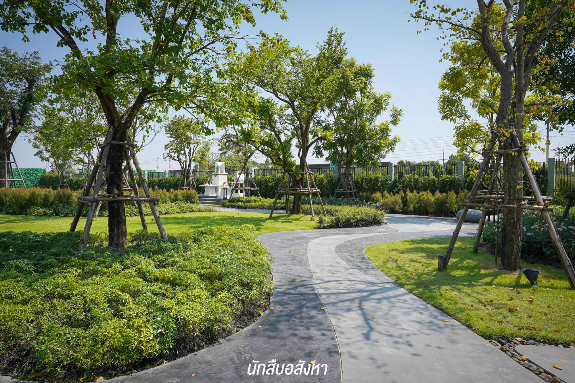 ถัดมาดูในส่วนของสวนส่วนกลางกันบ้าง Venue168 มีการจัด Landscape ที่ให้อารมณ์แตกต่างกันออกไป ไม่เหมือนกันสักโครงการครับ อย่างสวนที่นี่จะนำเอาเส้นสายของสายน้ำในลำคลองย่านคูคต-ลำลูกกา มาเป็นแรงบันดาลใจออกแบบให้ลู่วิ่งและทางเดินมีรูปแบบที่คดเคี้ยวไปตามแมกไม้ และมีที่นั่งพักผ่อนภายในสวน
